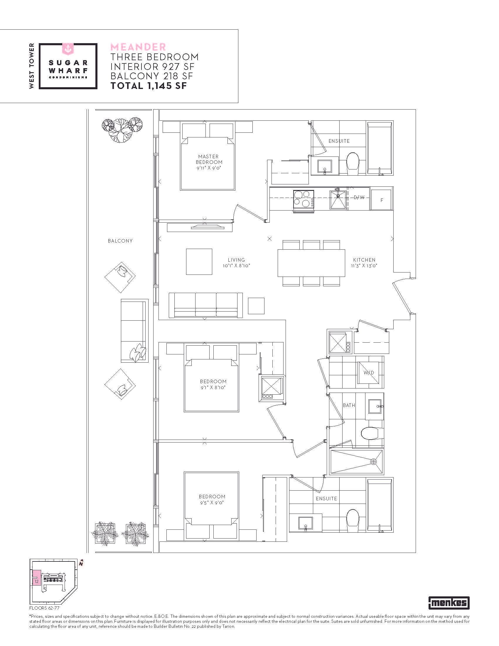 Brand New Sugar Wharf Condominiums By Menkes. Unique Unit With Clear West Exposure. 927 Interior Sqft Open Concept 3 Bedroom & 3 Full Bathrooms With 218 Sqft Balcony. Beautiful City Views Looking At CN Tower "Meander" Model. Steps Away From Sugar Beach, Employment, Shops & Restaurants. Farm Boy, Loblaws, Lcbo, Direct Access To To Future Path & School. Live In The The Best And The Largest Toronto Waterfront Community. Spacious South/ West Exposure. The Lake. The Life. The City