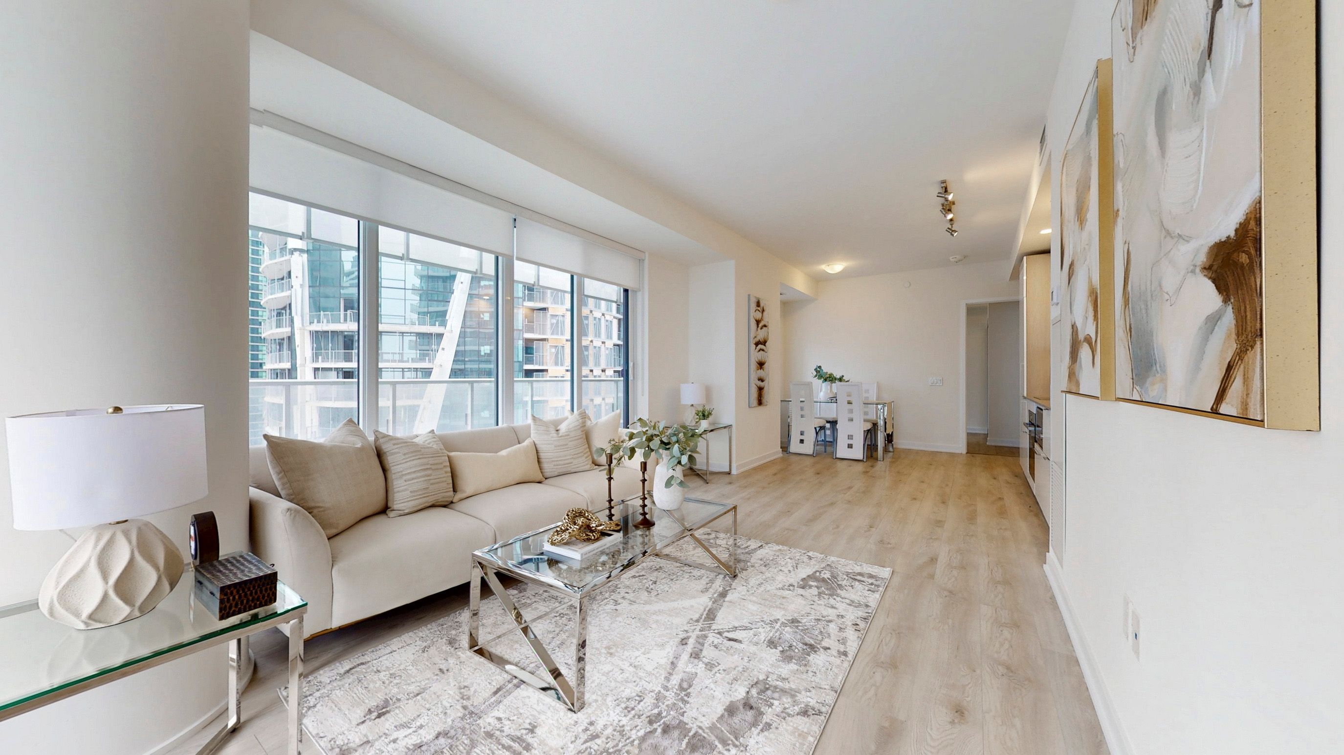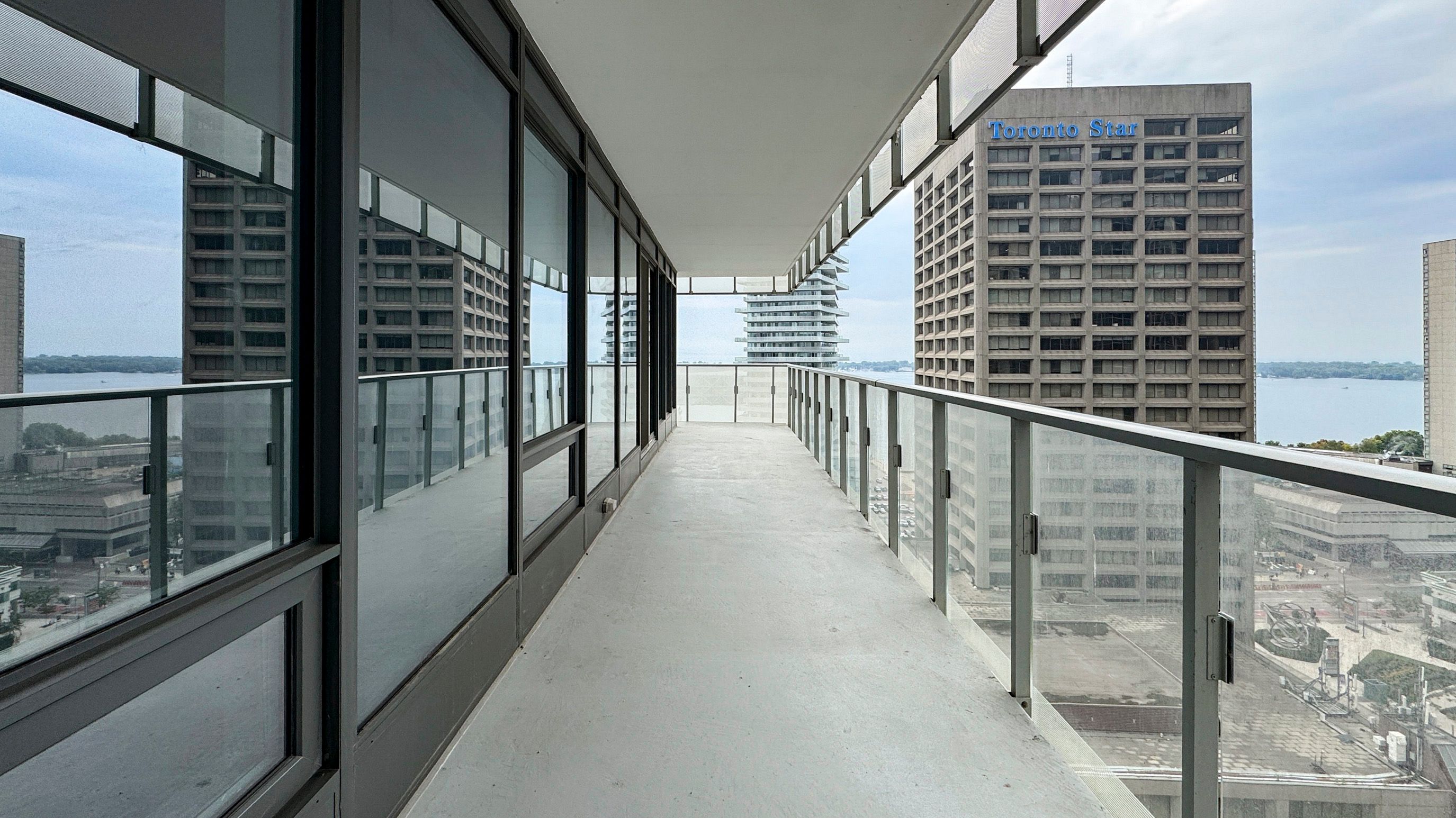 Stunning Lake & City Views! Welcome to this luxurious 2+1 bedroom condo in Toronto's highly sought-after waterfront community. Perched on a high floor with unobstructed southwest views, this 881 sq. ft. elegant unit offers a spectacular wrap-around balcony where you can enjoy breathtaking sunsets, sparkling city lights, and views of Lake Ontario and the Toronto Islands right from your bedroom. Inside, floor-to-ceiling windows, smooth 9' ceilings, and laminate flooring create a bright, modern atmosphere. The gourmet kitchen boasts stainless steel appliances, quartz countertops, and island seating, perfect for both entertaining and everyday living. Enhanced with a programmable thermostat, this move-in-ready home has been thoughtfully upgraded for comfort and convenience. The building offers world-class amenities, including a24-hour concierge, gym, party/meeting rooms, business centre, sports lounge, outdoor lounge with BBQs, children's play area, and outdoor pool. One underground parking spot is included! Located at the foot of Yonge Street, you'll have direct access to Union Station, the P.A.T.H., Financial District, Scotiabank Arena, and Toronto's vibrant entertainment core. Just steps from the lake, transit, shopping, and dining - this is downtown living at its finest. Don't miss your chance to live your best life in this extraordinary home!