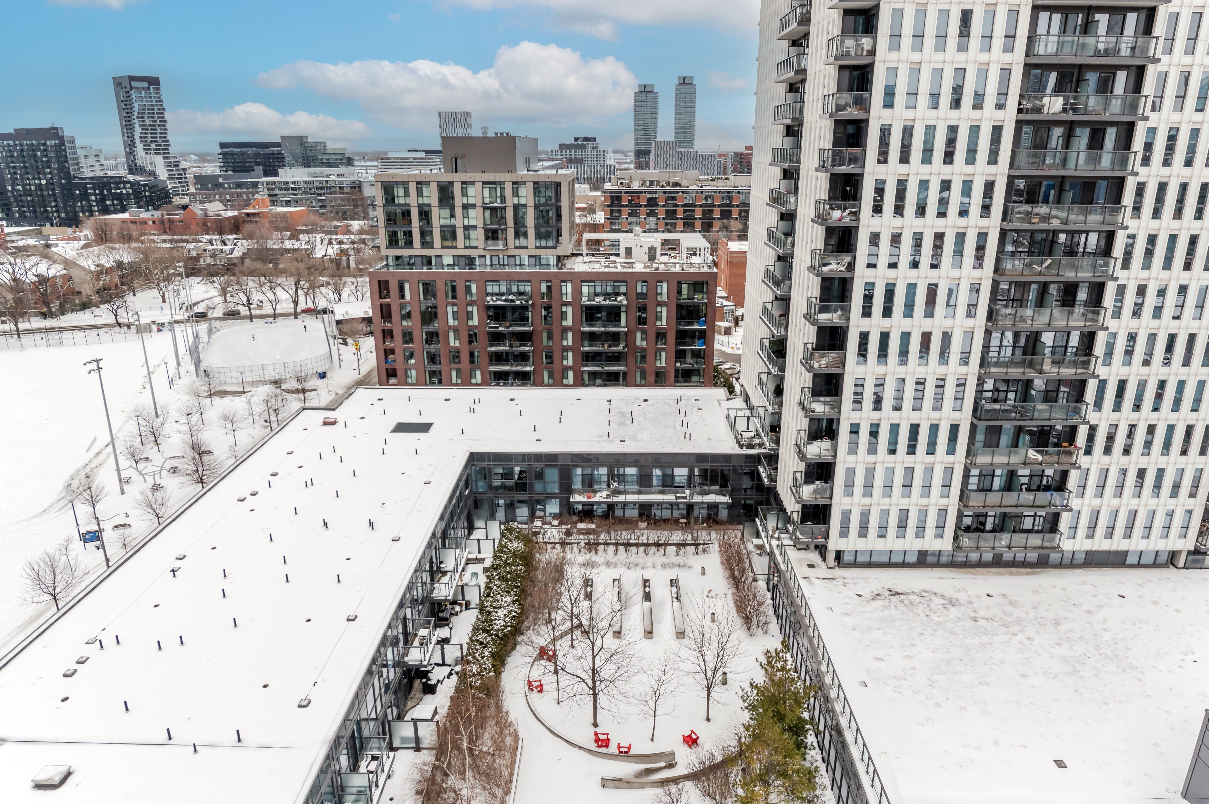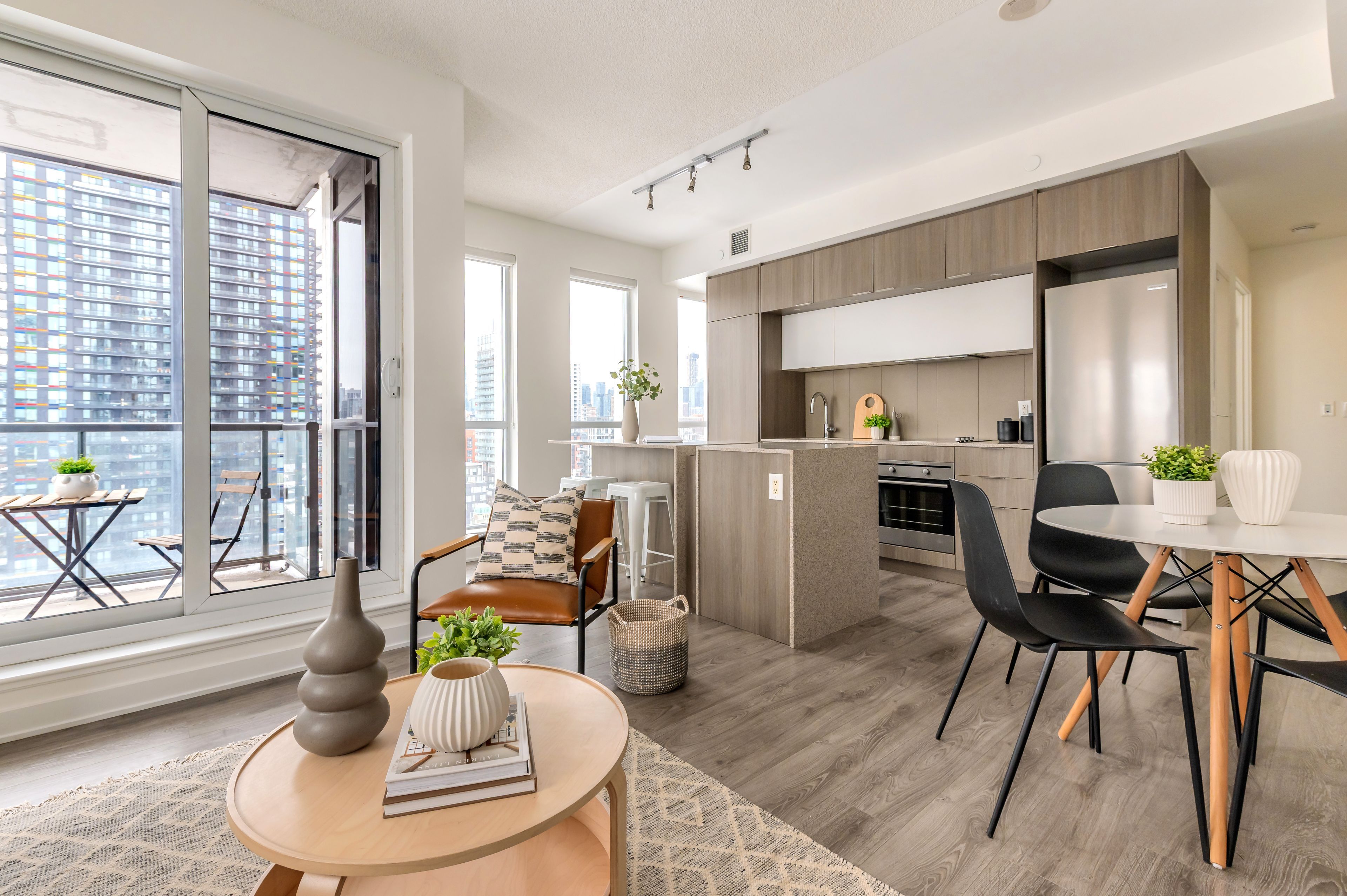 Bright corner suite on the 14th floor with south west exposure and open city views in the heart of Regent Park. This thoughtfully designed 1 bedroom, 1 bathroom home offers 691 sq ft plus a 59 sq ft balcony, with floor to ceiling windows that flood the space with natural light throughout the day.Functional open concept layout featuring a modern kitchen with island, granite countertops, stainless steel appliances, and engineered wood floors. The living and dining areas connect seamlessly, creating a comfortable space for everyday living and entertaining. Spacious bedroom, full bathroom, and a welcoming foyer with storage and coat closet add to the suite's practicality.Well maintained and move in ready with in suite stacked washer and dryer, window blinds, all existing light fixtures, one parking space, and one locker included.Located at One Park Place, residents enjoy exceptional amenities including a large fitness centre, yoga and pilates studio, squash courts, half court basketball gym, party room, billiards room, media room, rooftop terrace with BBQ areas and gardening plots, guest suites, visitor parking, bike storage, 24 hour concierge, and security.Prime Regent Park location steps to parks, cafés, community spaces, groceries, TTC, and easy access to downtown. Ideal opportunity for first time buyers, investors, or anyone seeking a bright, efficient condo in a vibrant and connected neighbourhood.Maintenance fees include water, gas for heating, building insurance, and common elements.