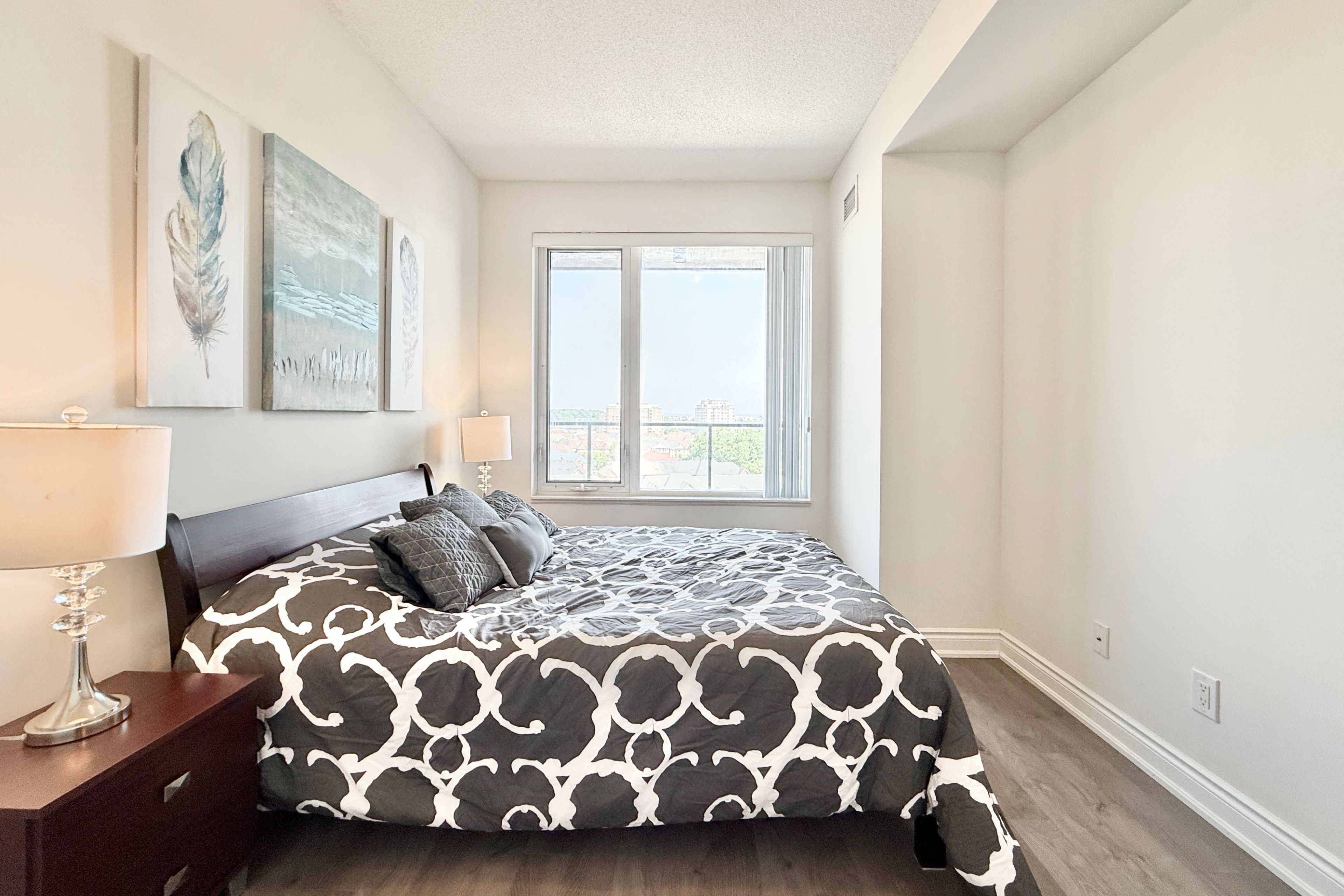 Luxurious 1-Bedroom + Den At Eden Park Towers! Spacious And Bright. This Is The Largest 1+Den Layout In The Building. Featuring 738 Sqft + 50 Sqft Balcony With 9-Ft Ceilings, Unobstructed North Views, And Premium Laminate Flooring Throughout. The Modern Kitchen Boasts Granite Countertops, A Stylish Backsplash, And A Moveable Centre Island. Primary Bedroom Features With A Large Walk-in Closet, While The Den With A French Door Offers A Flexibility of A Second Bedroom, A Productive Home Office Or A Creative Entertainment Room. Sleek Finishes Make This Unit Truly Move-In Ready! Enjoy 24/7 Concierge Service And Access To State-Of-The-Art Clubhouse Amenities: Indoor Swimming Pool, Sauna, Gym & Exercise Room, Billard Room, Theatre Room & Party Room. Prime Location, Just Steps To A Huge Park With Water Splash, Tennis Courts, Basketball Court & Soccer Field. Offices, Supermarkets, Banks, And Restaurants. Conveniently Close To Hwy 404/407, Langstaff GO Station, And YRT/Viva Transit. Top Ranking Schools Nearby Include Ontario #1 High School - St. Robert Catholic High School, Ontario #20 - Thornlea SS, Seneca College & York University. Dont Miss This Opportunity. Book Your Private Showing Today!