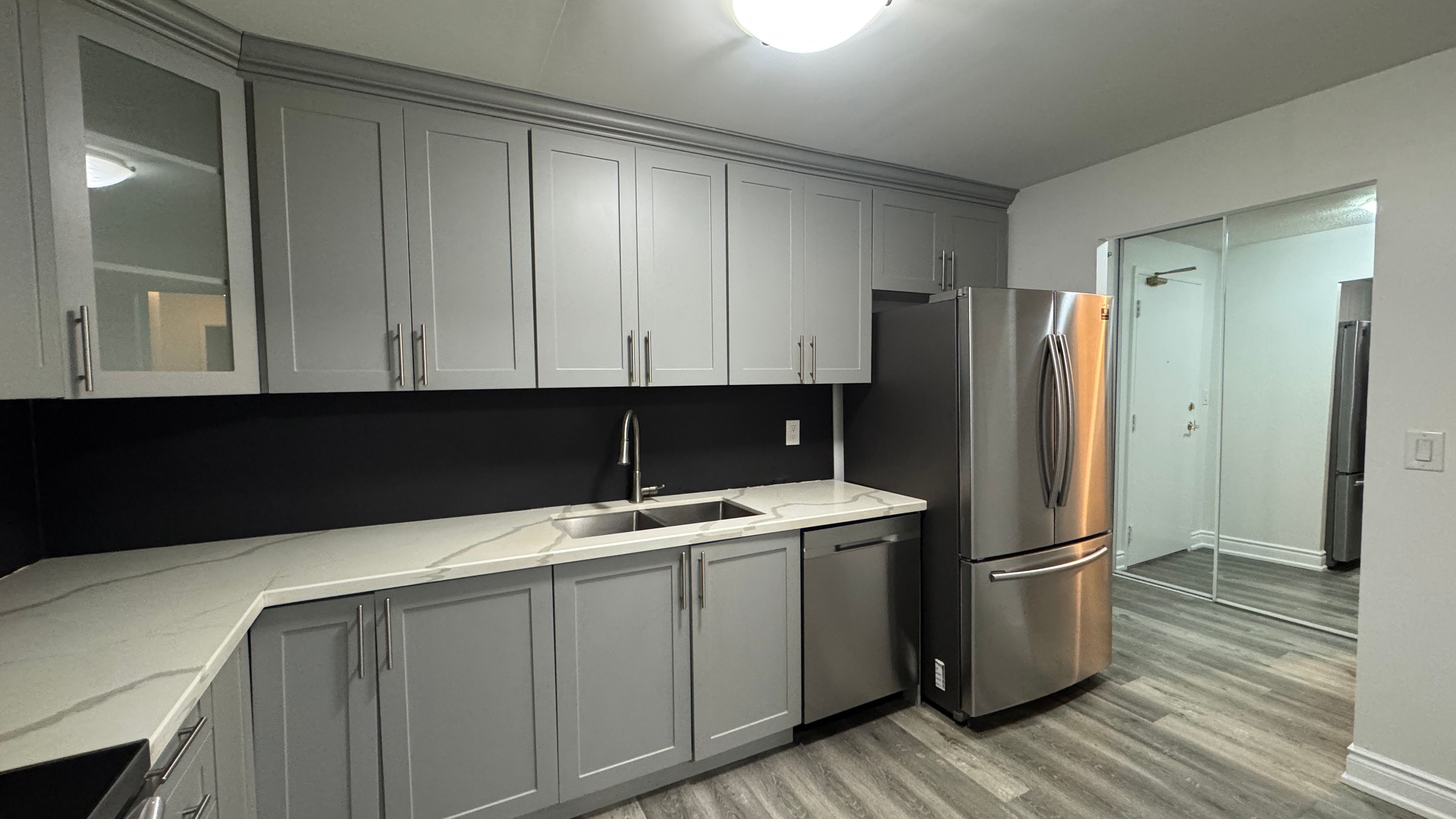 Welcome to Unit 702, a well laid out 2-bedroom plus solarium condo offering approximately 900 sq. ft. of bright, functional living space in Mississauga's highly connected Cooksville community. Featuring a desirable exposure, this unit is filled with natural light throughout the day and offers a comfortable, open layout ideal for homeowners or investors alike.The updated kitchen is equipped with stainless steel appliances, quartz countertops, laminate flooring, and ample cabinetry flowing seamlessly into the expansive living area. The enclosed solarium provides versatile additional space, perfect for a home office, dining area, or reading nook. The generously sized primary bedroom features a large built-in closet and is complemented by a modern 4-piece bathroom with double sinks and quartz counters across the hall. Additional conveniences include in-suite laundry and 1 underground parking. Ideally situated just minutes from Square One Shopping Centre, Cooksville GO Station, major transit routes, and quick access to Highways 403, 401, and QEW, this location offers unbeatable connectivity. Nearby parks, schools, restaurants, and everyday amenities make this a highly walkable and desirable neighbourhood for commuters and families alike. Power of Sale, being sold "where is, as is". The unit is vacant, presenting an excellent opportunity to secure a well located condo with strong long term potential.