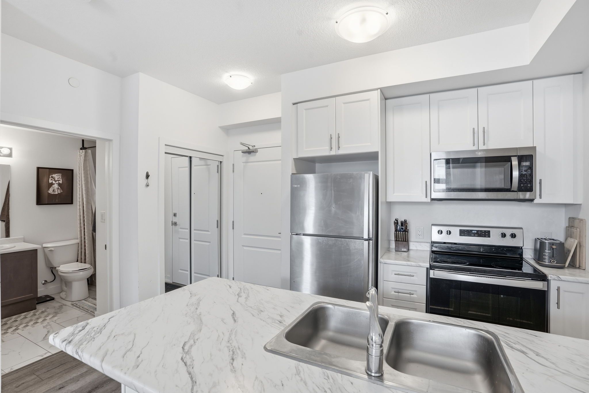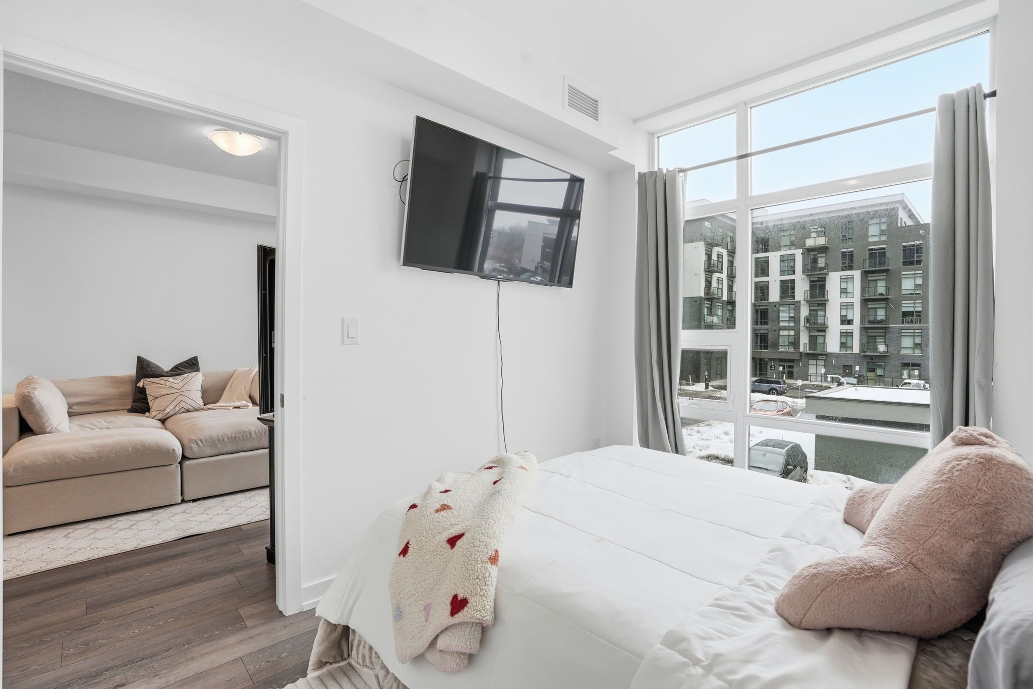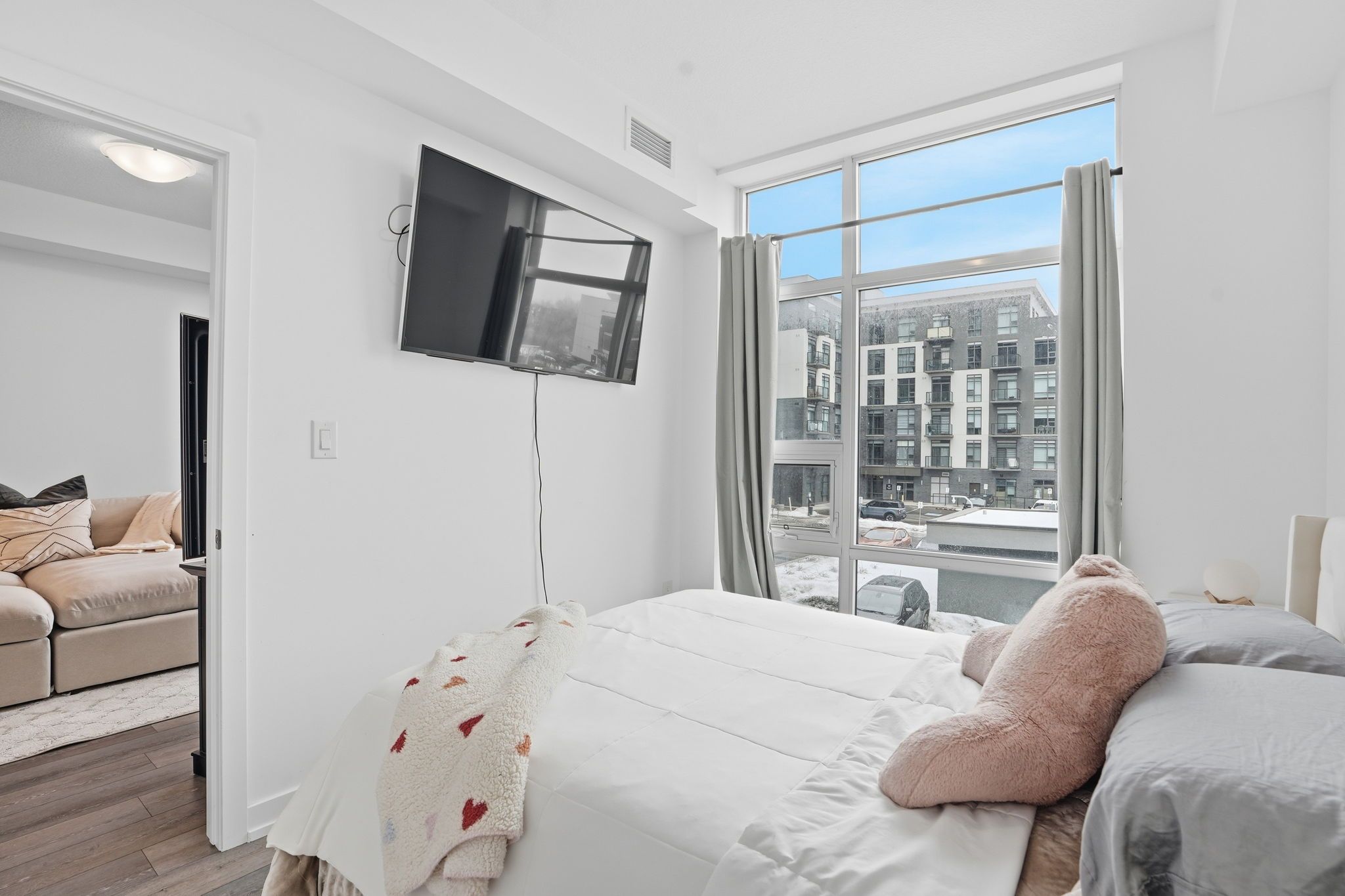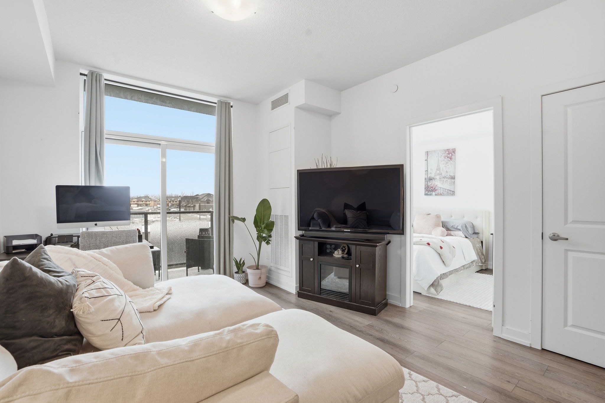Step into modern comfort with this stylish second-floor 1-bedroom condo located in the desirable Trend community of Waterdown. This thoughtfully designed unit offers a seamless open layout, maximizing space and natural light throughout. The contemporary kitchen features sleek quartz countertops, stainless steel appliances, and an elegant breakfast bar that flows effortlessly into the living and dining area, creating the perfect setting for everyday living and entertaining. Enjoy walkout access to a private balcony, ideal for morning coffee or unwinding at the end of the day.The spacious bedroom is complemented by a well-appointed 4-piece bathroom and the convenience of in-suite laundry. One owned surface parking space and a private storage locker provide added practicality.Residents of Trend enjoy access to premium building amenities, including a fully equipped fitness centre, stylish party and social rooms, rooftop terraces, and secure bicycle storage. Located in the vibrant heart of Waterdown, you are just moments from charming shops, excellent restaurants, parks, schools, and all essential amenities, with convenient access to major routes.This property is being sold under power of sale and presents a fantastic opportunity for first-time buyers, downsizers, or investors looking to secure a home in a thriving community.