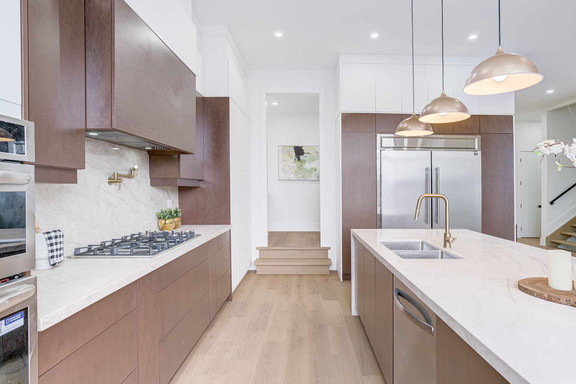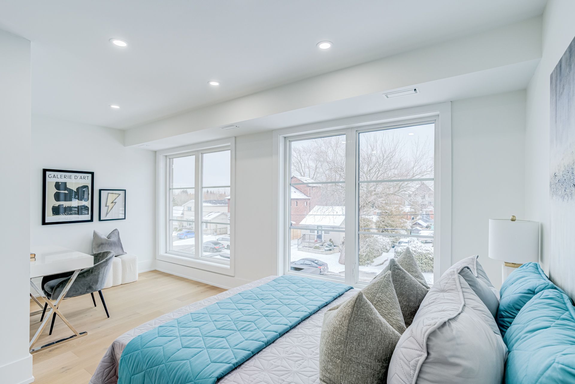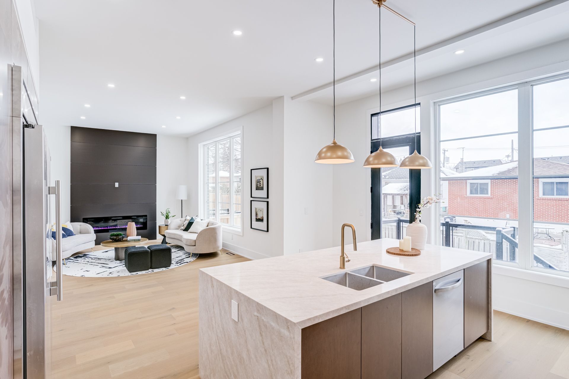 Welcome to 642 Annland Street, an exceptional custom-built residence in one of Pickering's most sought-after waterfront communities, just steps to Lake Ontario, Frenchman's Bay, scenic trails, marinas, and the Pickering GO Station, offering an unmatched blend of luxury and convenience. This newly constructed three-storey home offers approximately 4600 square feet above grade plus an additional 1650 square feet in the basement, thoughtfully designed for extended families, multi-generational living, or income potential with a fully self-contained legal one-bedroom apartment. Showcasing premium finishes throughout, the main level features 10-foot ceilings, hardwood flooring, custom cabinetry, and a bright open-concept layout, highlighted by a designer chef's kitchen with integrated high-end appliances, an oversized island, and a separate prep kitchen, flowing into a spacious family room with an elegant electric fireplace, large windows, and a walkout to the backyard deck, while a formal dining room with a picture window, a versatile office or library, and a stylish powder room complete the space. The upper levels offer five generously sized bedrooms and four beautifully finished bathrooms, all with hardwood floors, pot lights, and ample closet space, including a stunning primary retreat with a spa-inspired ensuite and an expansive walk-in closet, along with a rare and highly desirable upper-level family lounge providing additional space for relaxation. The basement provides additional living space with a large recreation area and full washroom, along with a private apartment featuring its own entrance, open-concept kitchen and living area, laundry, and large windows. The exterior is equally impressive with a detached two-car garage, concrete double driveway, professional landscaping, and a fully fenced backyard, making 642 Annland Street a rare opportunity to own a luxury home that blends modern design and waterfront charm.