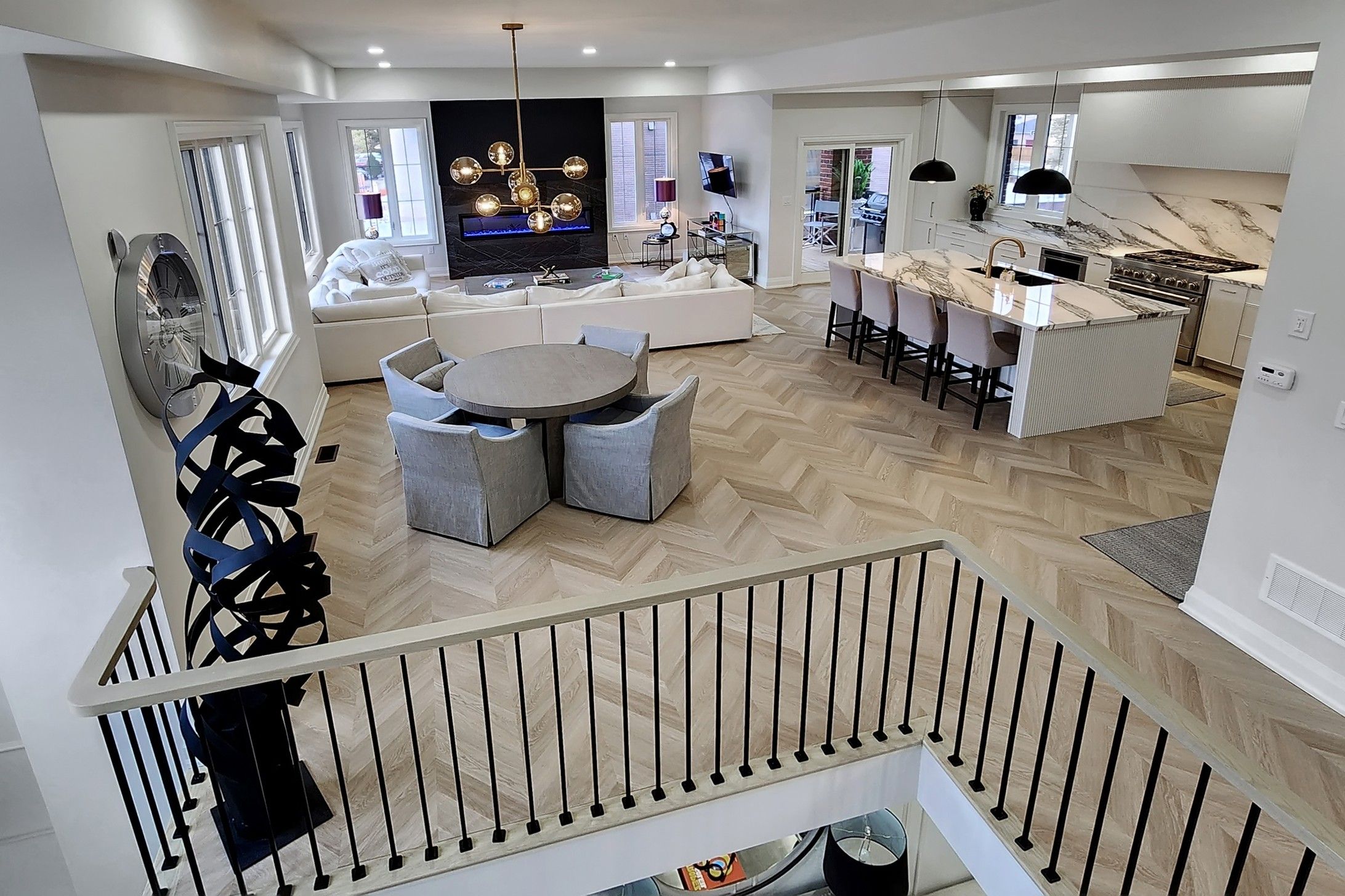 Welcome to this Italian builder custom-built masterpiece (2025), offering exceptional craftsmanship, timeless elegance, andmodern sophistication ** Rare private residential ELEVATOR servicing all 4 levels **SOUTH exposure W/abundant natural light, and soaring 9-10-9 ftceilings throughout 3 levels **Located in Top Ranked School Zone: St. Teresa of Lisieux Catholic High School (Ontario's No.1-ranked high schoolwith a perfect 10.0 rating) and Richmond Hill High School *Offering 3-car garage, 4,579 SF of luxurious above-ground 3 levels living space, 4spacious bedrooms, 5 elegant washrooms *The grand foyer impresses with a 20ft ceiling, refined wainscoting, and architectural detailing *Amain-floor office W/fireplace provides an ideal work-from-home office *The open-concept 2nd level is designed for both entertaining andeveryday living,highlighted by an extended linear electric fireplace that anchors the living area, MillWork Modern Slat Fluted Acoustic Wood WallPanel from Italy CHEVRON BRUSH FLOORING *The chef-inspired kitchen features a large central island, dual sinks, premium quartz countertops, built-in high-endappliances, MarbleSplash, cabinetry, and a walk-in pantry for added convenience *Walk out to a large elevated deck with gas BBQ line,overlooking a private backyard oasis *The upper level offers four generously sized bedrooms, along with convenient second-floor laundry**Unmatched in luxury,craftsmanship, and location-just steps to Yonge Street, Walking distance to Yonge St, VIVA transit. Close to the CommunityCenter W/Swimmingpool, gym, HWY 404 & 400, Costco, restaurants, T&T, shopping Mall, Library, Hospital. Surrounded by trails, ponds, friendlyand safe neighbourhoods. truly exceptional home and an absolute must see!