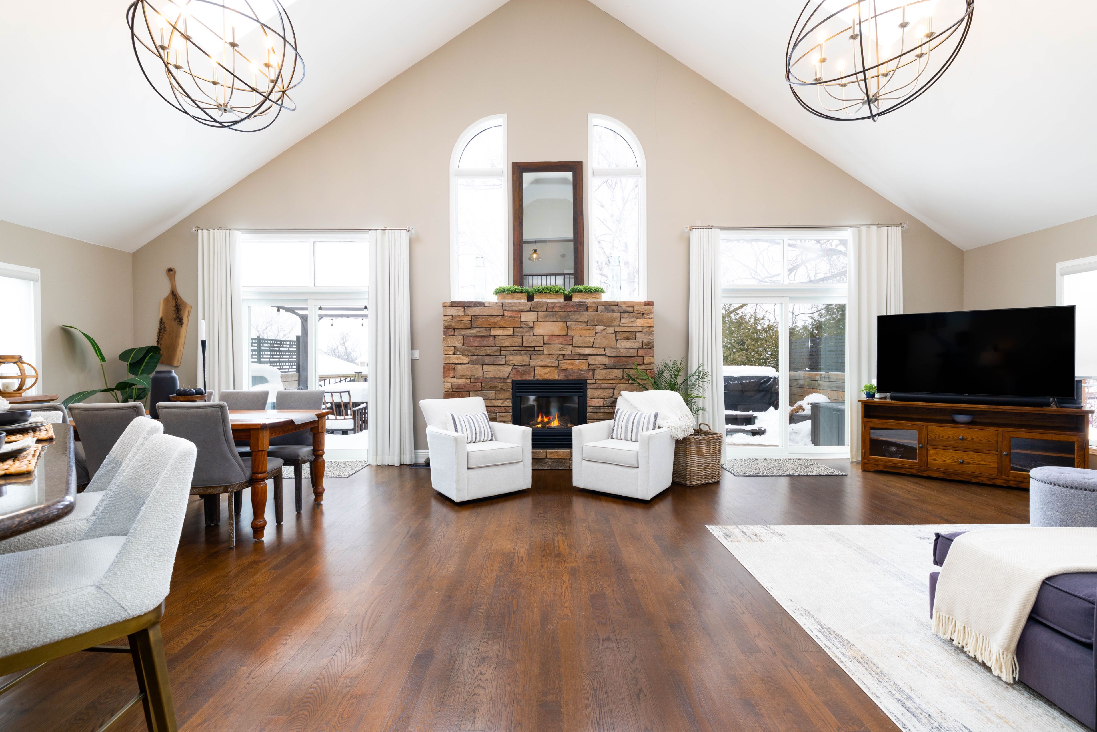Boater's Delight! This Stunning Open-Concept 3+1 Bedroom Bungaloft Offers The Rare Luxury Of Direct Lake Simcoe Access From Your Own Private Dock - An Unbeatable Lifestyle Opportunity. Step Inside To Soaring Cathedral Ceilings, Beautifully Refinished Hardwood Floors Throughout, Custom Window Coverings, And Two Walk-Outs That Lead To A Lakeside Deck And Dock. The Main-Floor Primary Suite Features A 3-Pc Ensuite, Creating A Perfect Retreat. The Fully-Finished Basement Adds Incredible Versatility With A Newly Renovated Bathroom And A Dedicated At-Home Gym. Cozy Up By The Impressive Stone Gas Fireplace Or Unwind In Sun-Filled Living Spaces Designed For Relaxation And Connection. Natural Gas Stove & BBQ Hookup. Outside, The Setting Is Pure Magic. Picture Yourself Soaking In Your Premium 2018 Arctic Spa ARC 42L 6-Seater Hot Tub While Watching Breathtaking West-Facing Sunsets Dance Across The Canal, Or Skating Down The Frozen Waterway In The Winter. Your Own Four-Season Playground Awaits! The Backyard Has Been Professionally Transformed (2022-2023) With A Stone Walkway, Fire Pit With Seating, And Lush Cedar Trees For Added Privacy. Additional Upgrades Include A Resurfaced Composite Front Porch And Stairs (2024) And Garden Shed. This Is Truly Turnkey Waterfront Living - Beautifully Finished, Thoughtfully Upgraded, And Designed To Elevate Your Lifestyle.