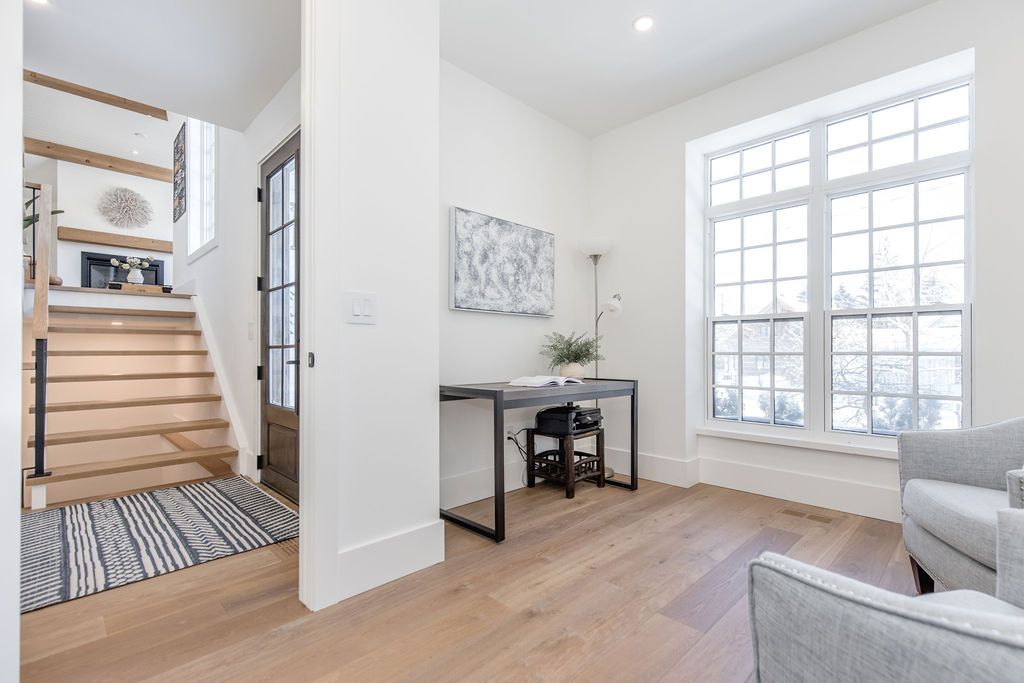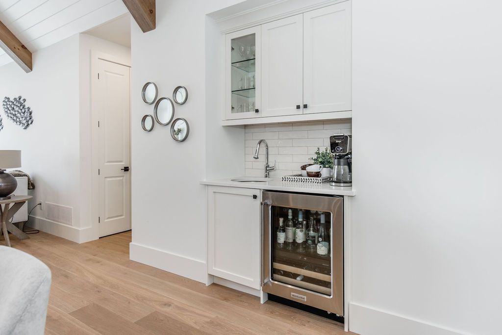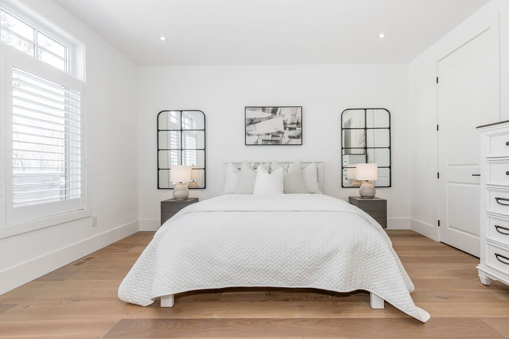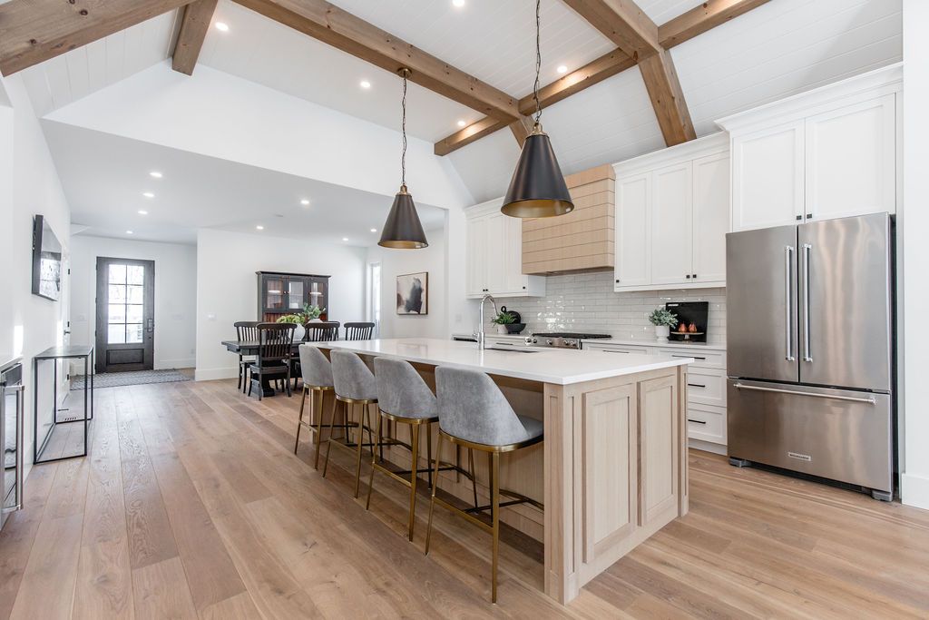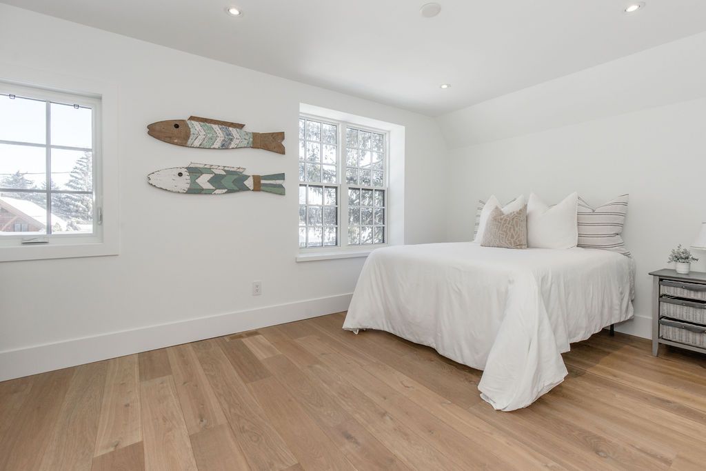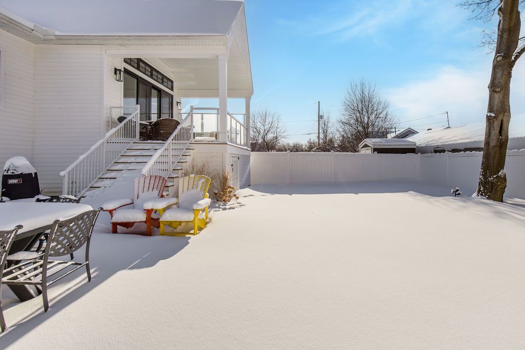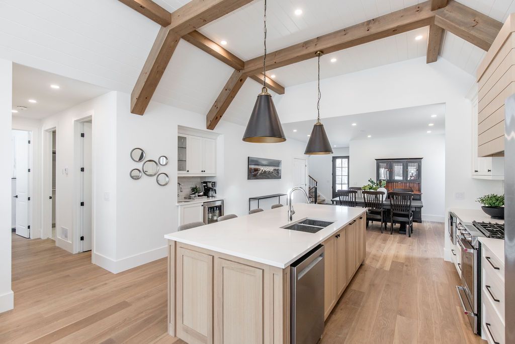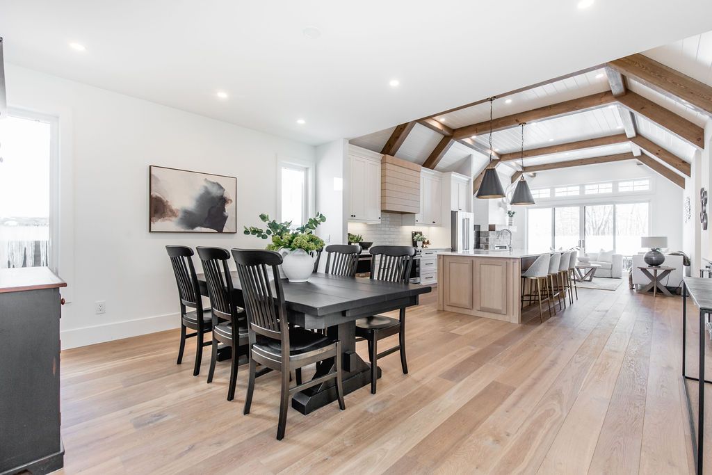 Fall in love with this spectacular custom-built Vandermeer home just steps from Georgian Bay at Sunset Point, one of the area's most sought-after waterfront neighbourhoods. Offering over 3,700 sq ft of luxury living space, this 3+2 bedroom, 4 bathroom residence blends timeless craftsmanship with elevated modern finishes.Designed with 9-ft interior doors, upgraded hardware, wide-plank white oak hardwood flooring, and soaring 12-ft beamed cathedral ceilings with shiplap and pot lights, the home delivers an airy, open-concept layout ideal for both everyday living and entertaining. The gourmet designer kitchen features a statement centre island, stainless steel appliances, and a wet bar, seamlessly flowing into the dining and family rooms.The main-floor primary suite is a true retreat with a spa-inspired 5-piece ensuite, floating soaker tub, glass shower, heated floors, double quartz vanity, and walk-in closet. A second main-floor bedroom or office adds flexibility for guests or remote work.The upper loft family room and finished lower-level recreation room, both with gas fireplaces, offer multiple living spaces for families or multigenerational living. The basement includes two additional bedrooms, a wet bar, and rough-in for heated floors, making it ideal for guests or extended family.Enjoy summer evenings on the covered back deck, a fenced yard, and direct access from the mudroom/ski locker with inside garage entry, perfect for four-season living near the bay. With three gas fireplaces, central air, central vacuum, and premium finishes throughout, this home offers luxury, comfort, and location in equal measure.