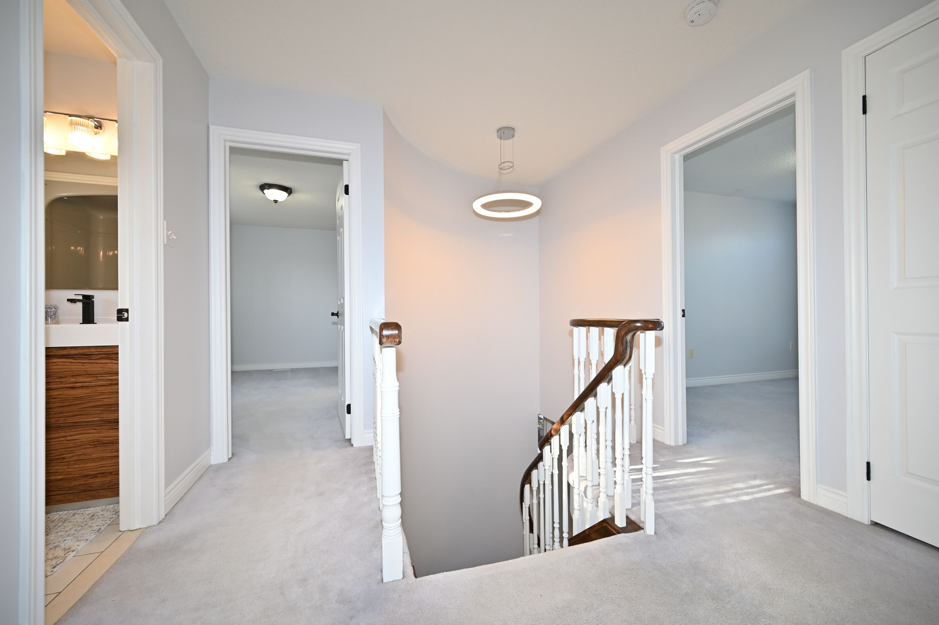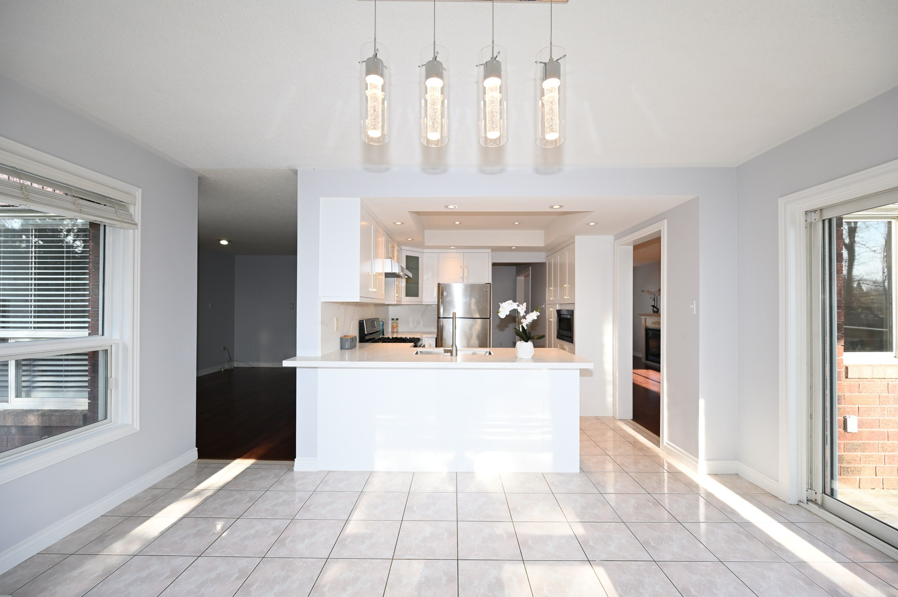 Nestled on a quiet cul-de-sac, this stunning brick family home sits on a spacious pie-shaped lot in the desirable Holly area. It's perfect for commuters and close to all amenities. Freshly painted, clean, and filled with natural light, the main level features a separate family room with a gas fireplace, a separate living room with an additional gas fireplace, and a formal dining room. The newly renovated, stylish kitchen is equipped with stainless steel appliances and modern finishes. Open concept kitchen overlooks a sun filled breakfast area, where a sliding door opens onto a generous deck-ideal for relaxing or entertaining. Enjoy peaceful views of the backyard, featuring mature trees that create a breathtaking display of color in the fall. Offering 4 bedrooms and 3 bathrooms, the home includes a primary suite with a double closet and private ensuite. The partially finished lower level boasts a recreation room and a gym space. Additional highlights include central air conditioning, a large deck for outdoor entertaining, garden shed, and a double garage with inside entry and automatic openers. No sidewalk at the front adds extra parking convenience. Recent updates include: kitchen cabinets (2026), dishwasher, microwave, and range hood (2026), select window blinds (2026), main bathroom cabinet (2026), washer (2025), basement carpets (2025), sump pump (2025), heat pump (2023), furnace and insulation (2019). Move-in ready with a flexible closing available! Don't miss this exceptional opportunity!