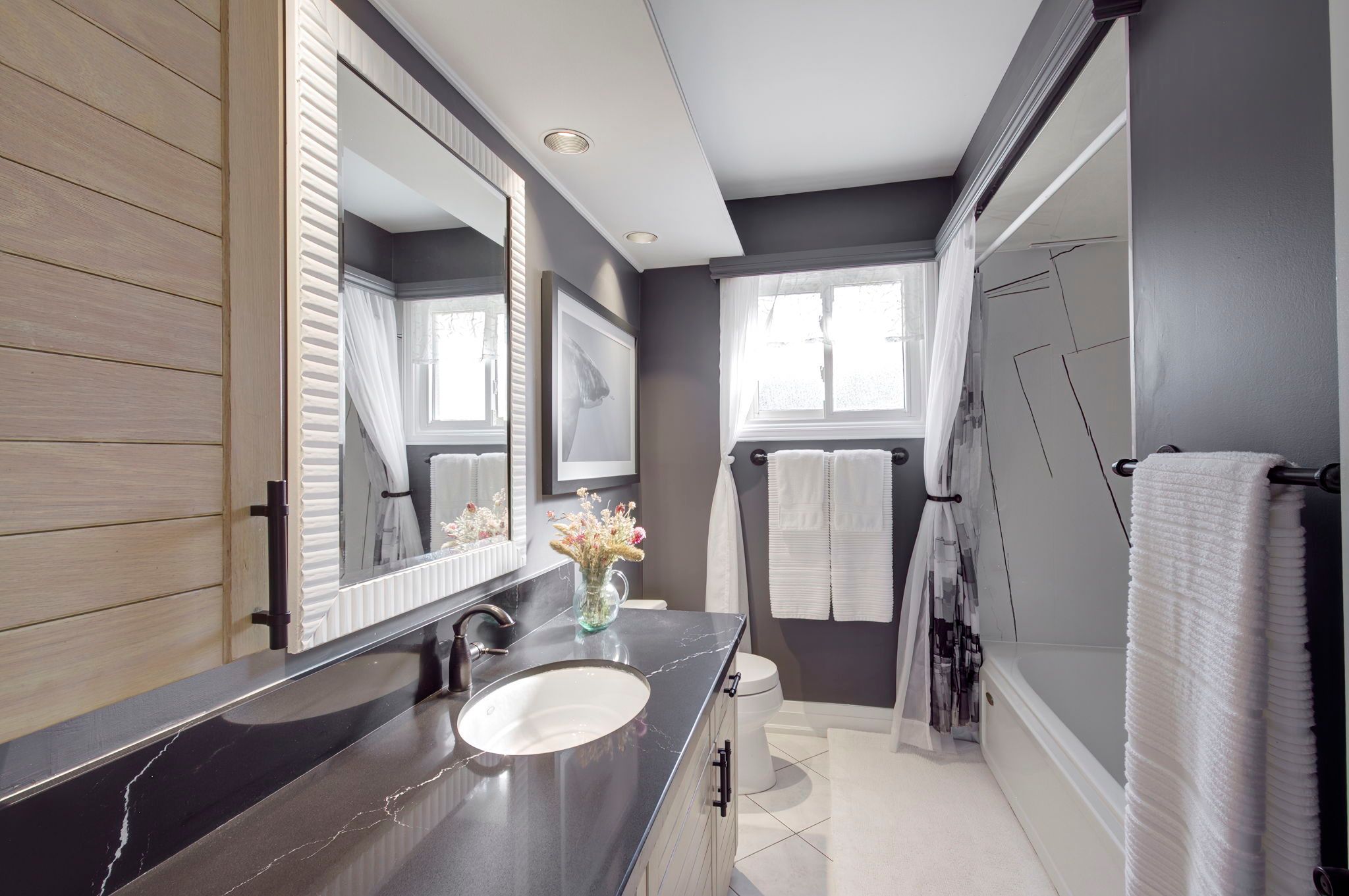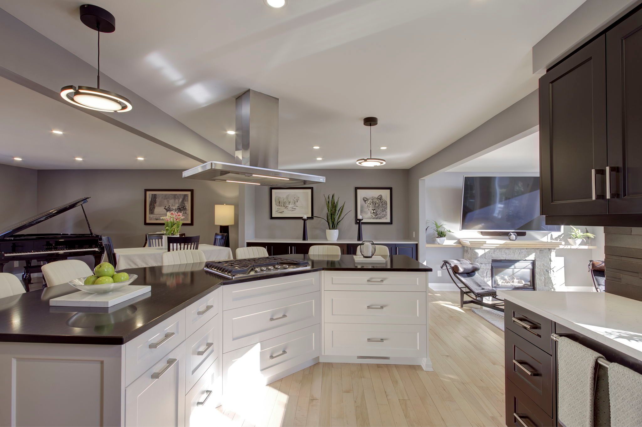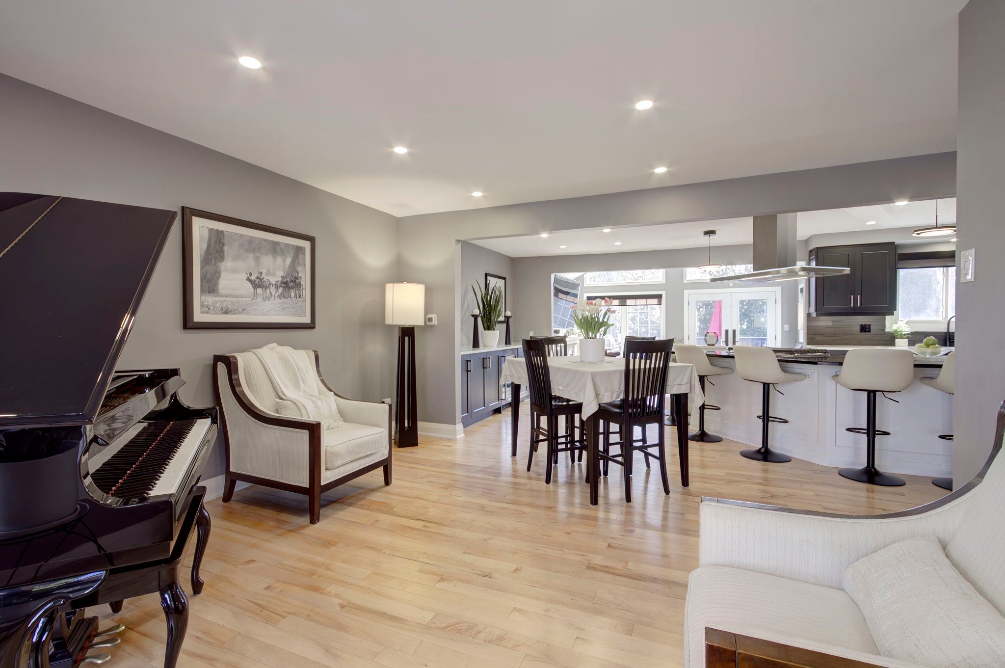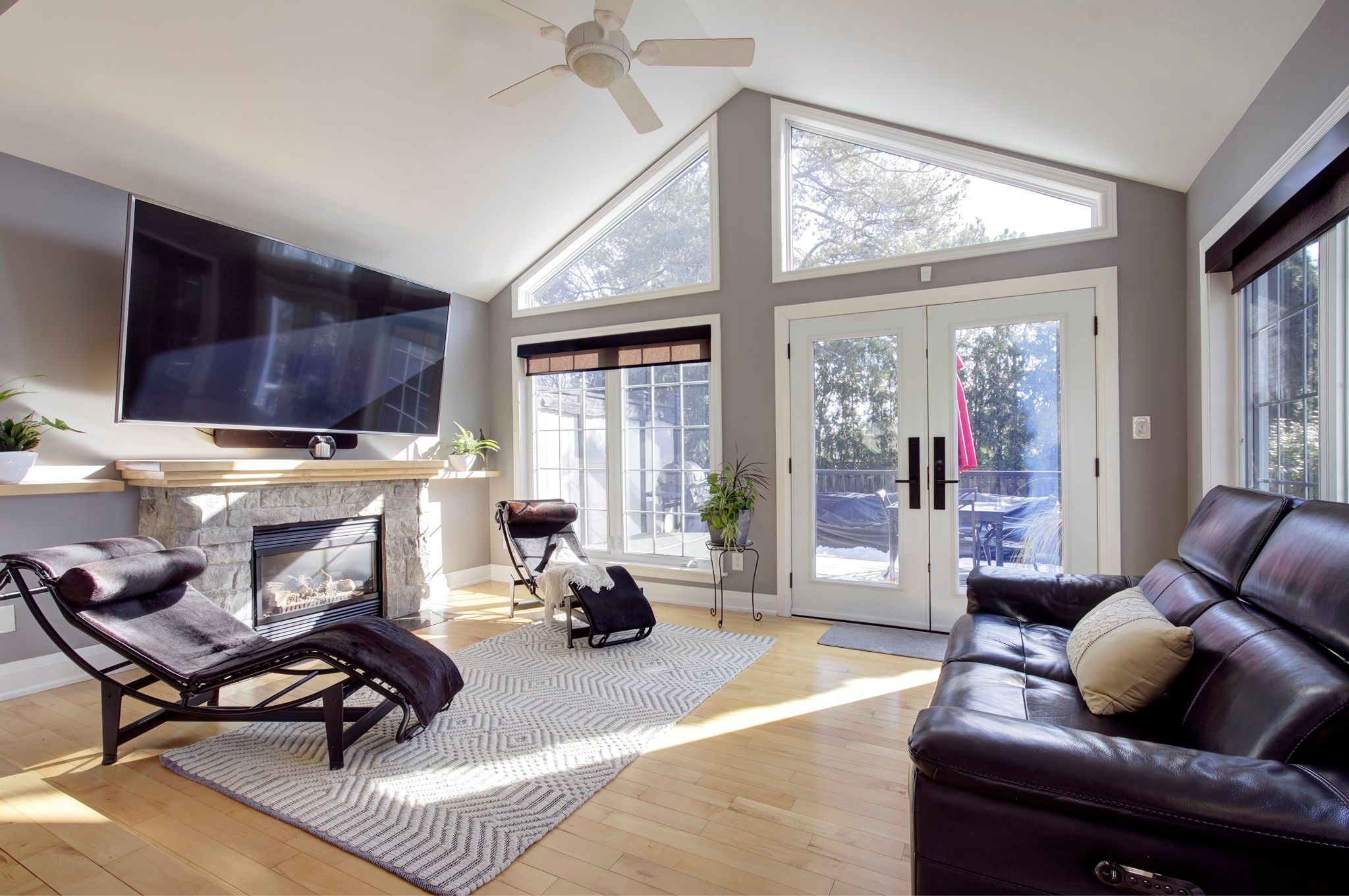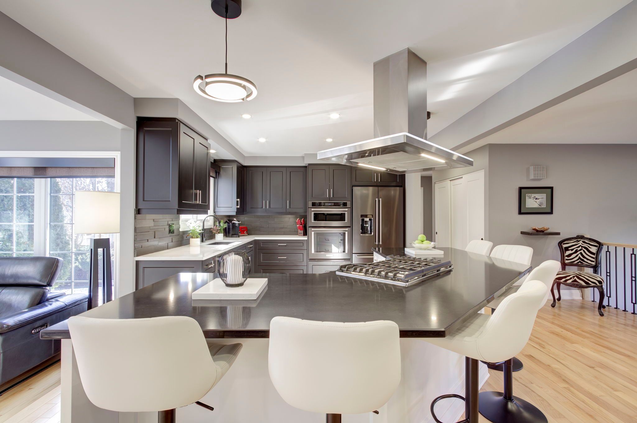 Featured on HGTV's "Top of the Block!" Prepare to be impressed by this meticulously renovated, sun-drenched raised bungalow in a prime Burlington neighbourhood. The main level (renovated 2020) features gleaming maple hardwood floors and a massive open-concept chef's kitchen boasting custom cabinetry, quartz countertops, a 6-seat island, and a built-in gas range. The formal living/dining area -complete with a grand piano included with the home- is perfect for entertaining. The true showstopper, however, is the sunken family room addition, featuring vaulted ceilings, a natural stone gas fireplace, 80 inch flat screen tv, and a walk-out to a private 2024 composite deck with a built-in hot tub. The bedroom wing of the main level is finished with equal attention to detail and offers 3 sizable rooms and an updated 4 p/c bathroom that will suit most buyers' needs. The modern finishes continue to the lower level (renovated 2025), offering a cozy recreation room with a soapstone-hearth fireplace, a den, laundry, a full 3pc bathroom, storage and a walk-out to an impressive double car garage. Hobbyists will love the epoxy flooring and separate heated workshop space! Recent Upgrades Include: AC (2023), Deck (2024), Furnace/HWT/Main Level Reno (2020), Lower Level Reno (2025), Washer/Dryer (2024) 200-amp breaker panel, front porch aggregate (2024). Outside the home you will find a sprawling yard with manicured gardens and plenty of evergreen trees, offering privacy year round! Walk to schools, parks, shops and restaurants, including a neighbourhood favourite Nostalia Games Cafe! This home has it all!