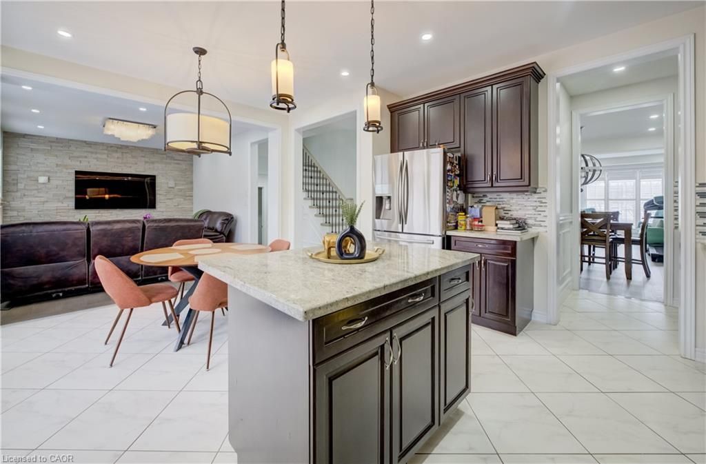 Welcome to 4612 Doug Wright Drive, a stunning family home nestled in Burlington's highly sought-after Alton Village. This meticulously maintained 2-storey detached residence offers the perfect blend of luxury, comfort, and functionality, with approximately 3,000 sq ft of beautifully finished above-grade living space. Designed with modern family living in mind, this spacious home features 4 generously sized bedrooms and 5 well-appointed bathrooms, ideal for growing families or those who love to host. Soaring 9-foot ceilings on both floors enhance the sense of openness, while a solid oak staircase with elegant iron spindles creates a striking architectural focal point. Upgraded light fixtures and pot lights throughout add a touch of sophistication to every room. At the heart of the home is a gourmet kitchen, complete with granite countertops, a central island, and sleek modern finishes, perfect for everyday living and entertaining alike. The professionally finished basement is a true showstopper, offering a luxurious retreat with a custom wine cellar, a stylish quartz bar, and an inviting entertainment area featuring a fireplace set against a stunning marble accent wall. Step outside to your own private backyard oasis, thoughtfully designed for entertaining. Enjoy a professional interlocking stonework, ambient mood lighting, and the convenience of a full irrigation system creating the perfect setting for gatherings year-round. Ideally located, this home is close to top-rated schools such as St. Anne Catholic Elementary School and Dr. Frank J. Hayden Secondary School. Commuters will appreciate easy access to major highways including the 407, 403, and QEW, along with the nearby Appleby GO Station. Enjoy the convenience of being just minutes from shopping, dining, parks, and all the amenities that make Alton Village one of Burlington's most desirable communities. This is a rare opportunity to own a truly exceptional home in a prime location-don't miss it!