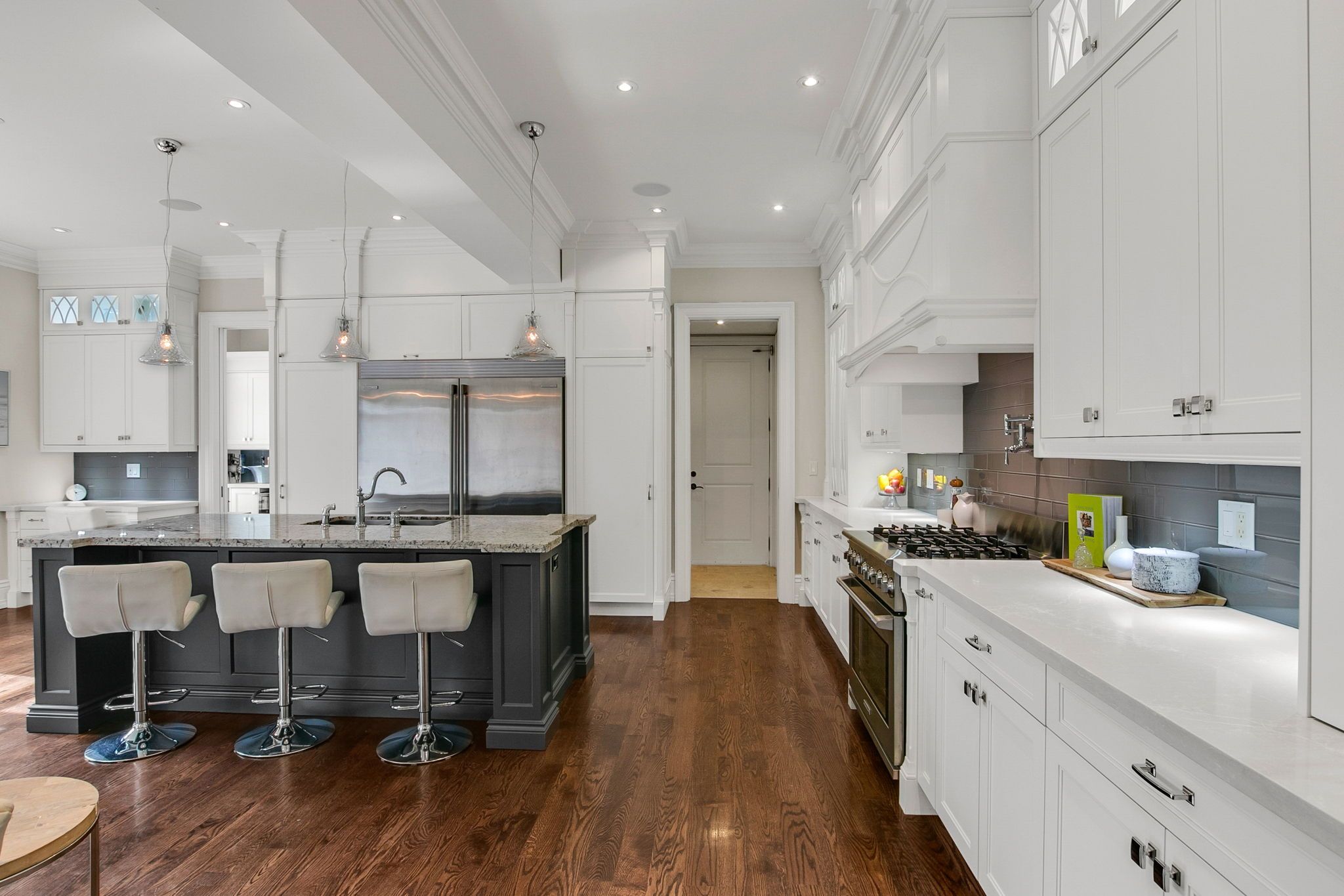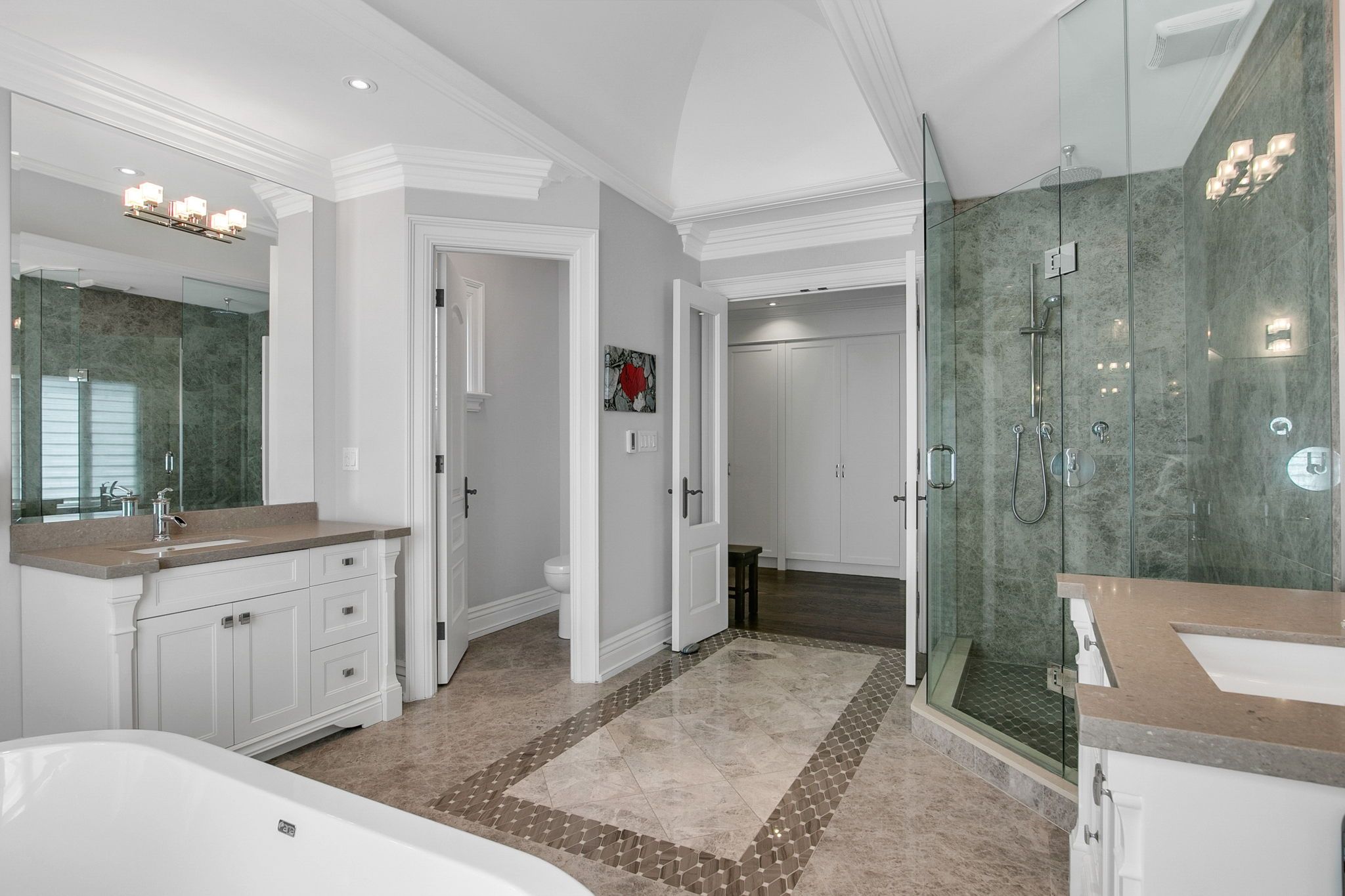 A home where privacy, nature, and thoughtful David Small design come together to create a living experience that feels both refined and deeply grounded. Siding onto Mary Fix Park and conservation forest with no rear neighbours, the setting offers a rare sense of quiet, where mornings begin with filtered light through the trees and evenings settle into complete calm. Inside, the home is designed to support both connection and retreat, with a natural flow through the main living spaces that makes everyday life feel effortless, whether gathering with family or hosting on a larger scale. The kitchen sits at the centre of it all, opening seamlessly to the surrounding spaces, offering a separate servery/prep area, when extra space is needed to enhance entertaining. The family room extends outward to a covered loggia, hot tub and beautifully landscaped south facing yard that invites time spent outside throughout the seasons. Upstairs, the primary suite offers a private escape with treetop views, impressive dressing room and a luxurious spa-like ensuite, while additional bedrooms with their own ensuite baths provide comfort and independence for family and guests. The lower level adds further flexibility, adapting easily to recreation, wellness, or extended living needs as they evolve. Set within Mineola West, one of Mississauga's most sought-after neighbourhoods known for its mature trees, larger lots, and established character, and just minutes from the Port Credit waterfront, top schools, transit, and major routes, this is a home that offers both a sense of retreat and everyday convenience in equal measure.