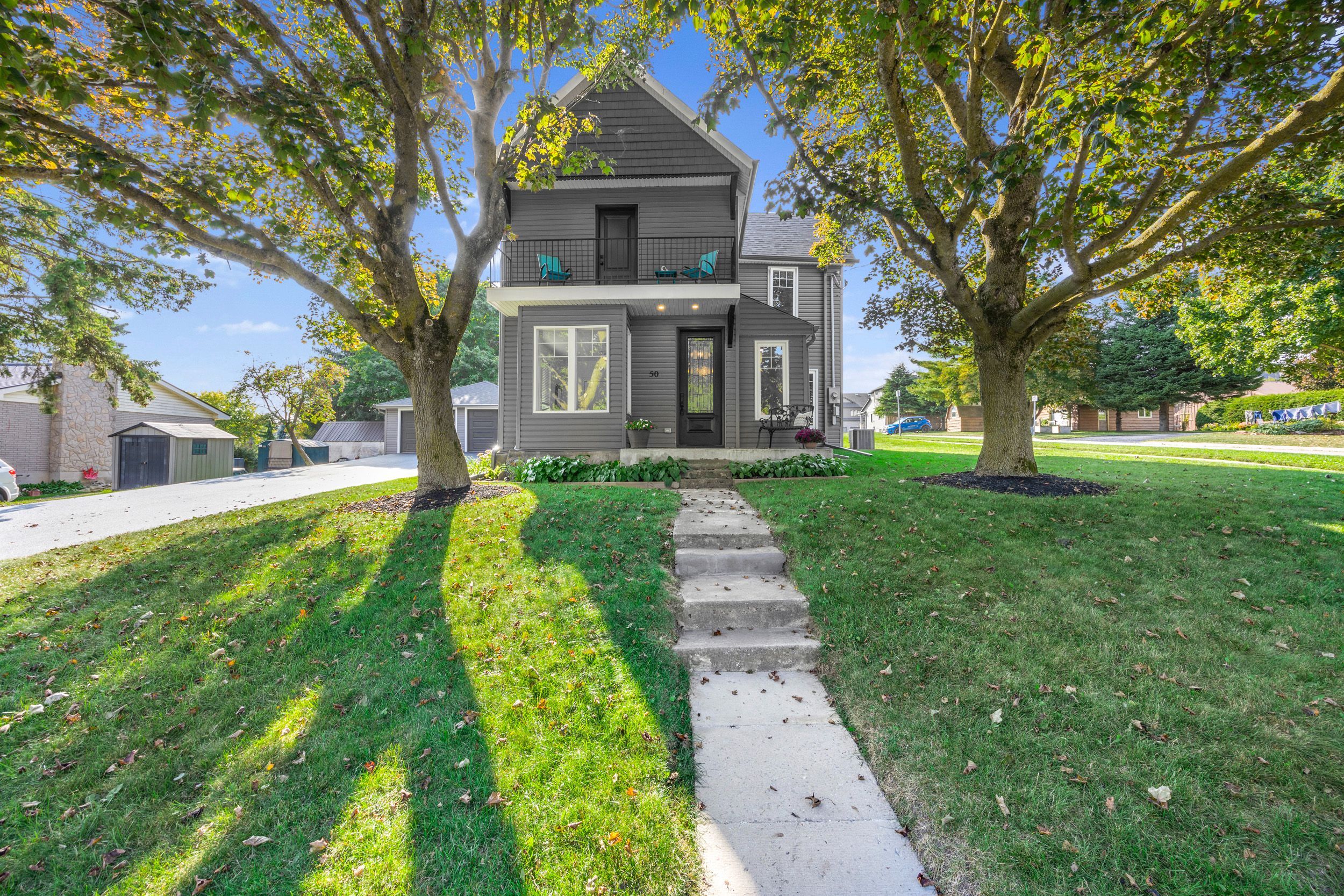 This lovingly restored Victorian (c.1880) in Grand Valley offers the perfect balance of history, comfort & practicality for families who value space & community. Sitting proudly on a 0.26-acre corner lot with mature trees, this 4 bed, 2.5 bath home combines solid craftsmanship with modern upgrades. It's 2948 sq ft of space is move-in ready, for years to come! The oversized 79 ft driveway with parking for 8, leads to a 24 ft x 28 ft detached garage with 2 extra-deep bays, ideal for vehicles, bikes, toys & projects too. Compared to some nearby lots, this property actually gives you the elbow room you've been looking for. Inside, the main floor includes a cozy living room with fireplace, a primary suite with ensuite, & a side entrance for easy everyday access. The kitchen is the heart of the home, featuring a very large quartz island, tons of smart cupboard storage including hidden double drawers & a lazy Susan. You'll also find stainless appliances that were new in 2023, & a spacious nook that can fit a big dining table for family gatherings. A walkout from the kitchen leads to the first of two patios, where you can enjoy summer BBQs, gardening & the peace of your own backyard. Upstairs, find 3 roomy bedrooms (one which rivals the primary bedroom...with its own balcony!), generous closet spaces & a full 5-pc bath. The lower level offers a rec room for hobbies, games or movie nights...along with a dedicated laundry room with front loaders & an elevated sink. Upgrades include: 200A main panel & 100A sub panel in laundry room(2020), siding, windows, doors, 2nd furnace & 2 A/Cs (2021), tankless hot water (2022), flooring (2023/24), water softener (2024), plus custom railings & modern lighting. This is a home built for family, friends & everyday living with the added bonus of building lot severance potential (buyer to do due diligence on future uses). A rare chance to own a spacious property with deep roots & modern reliability all in one. Come & see 50 Leeson St. S!