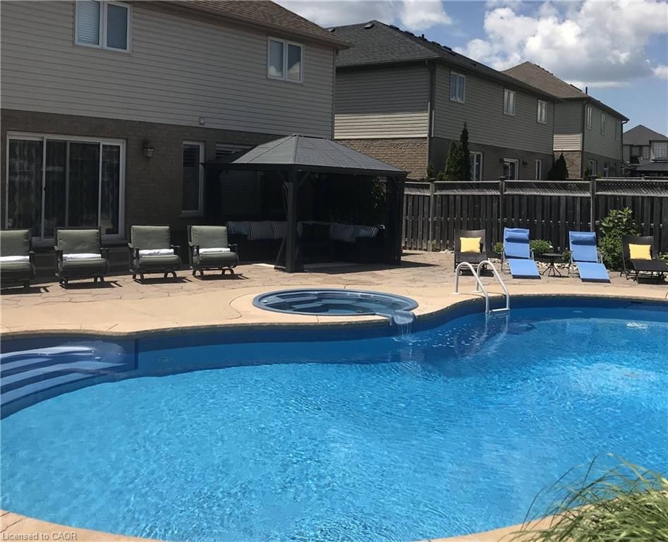Great for a large or multi generational family, this 4 bedroom home has plenty of living space! Soaring entryway and living room opens on a grand staircase. Expansive dining room allows for large family gatherings. The kitchen has new gleaming white granite countertops and ample space for storage and room for 2 chefs in the kitchen. Main floor family room is visible from the kitchen and the dinette has a slider to fenced back yard oasis with salt water in-ground pool with overflow hot tub for summer entertaining. Fully finished basement has oodles of more space, a bathroom, huge rec room and another large space. Upstairs features a large primary suite with a walk in closet and an ensuite with separate shower and soaker tub, plus 3 additional bedrooms, main bath and an airy sitting area or office space. Be sure to book your private showing. New furnace and AC in 2022.