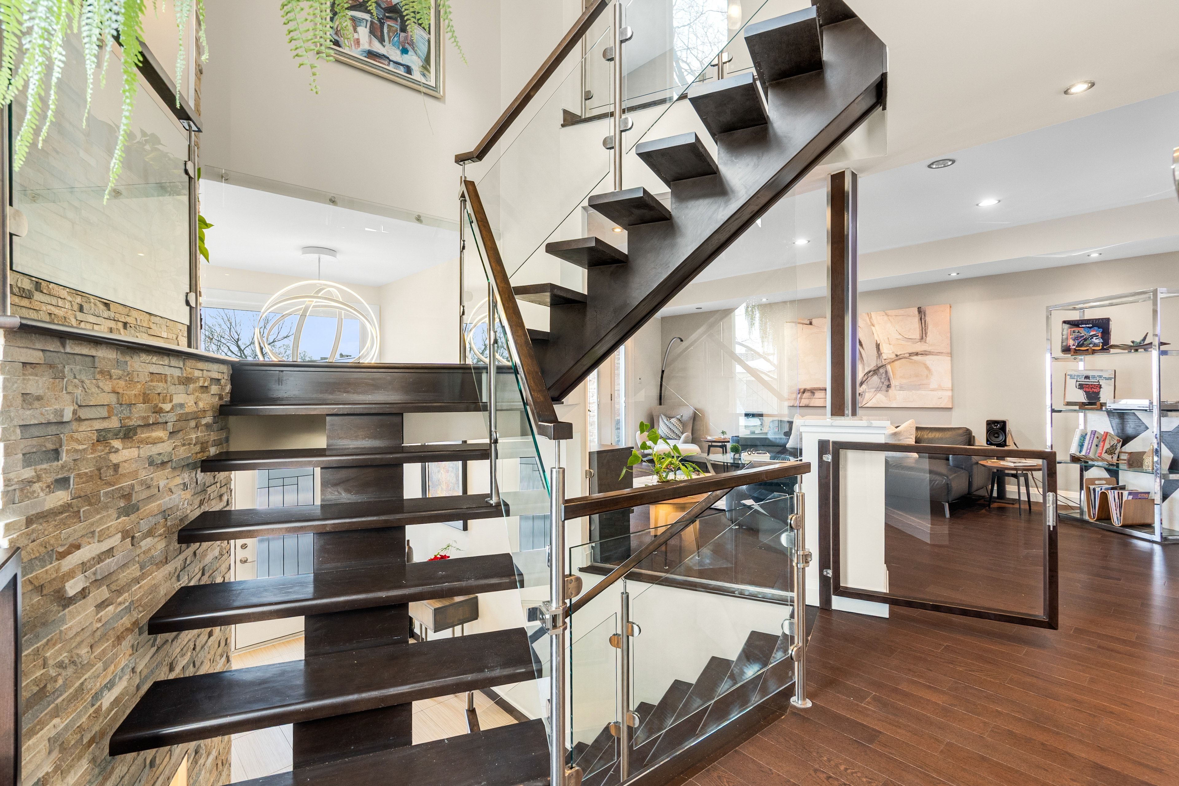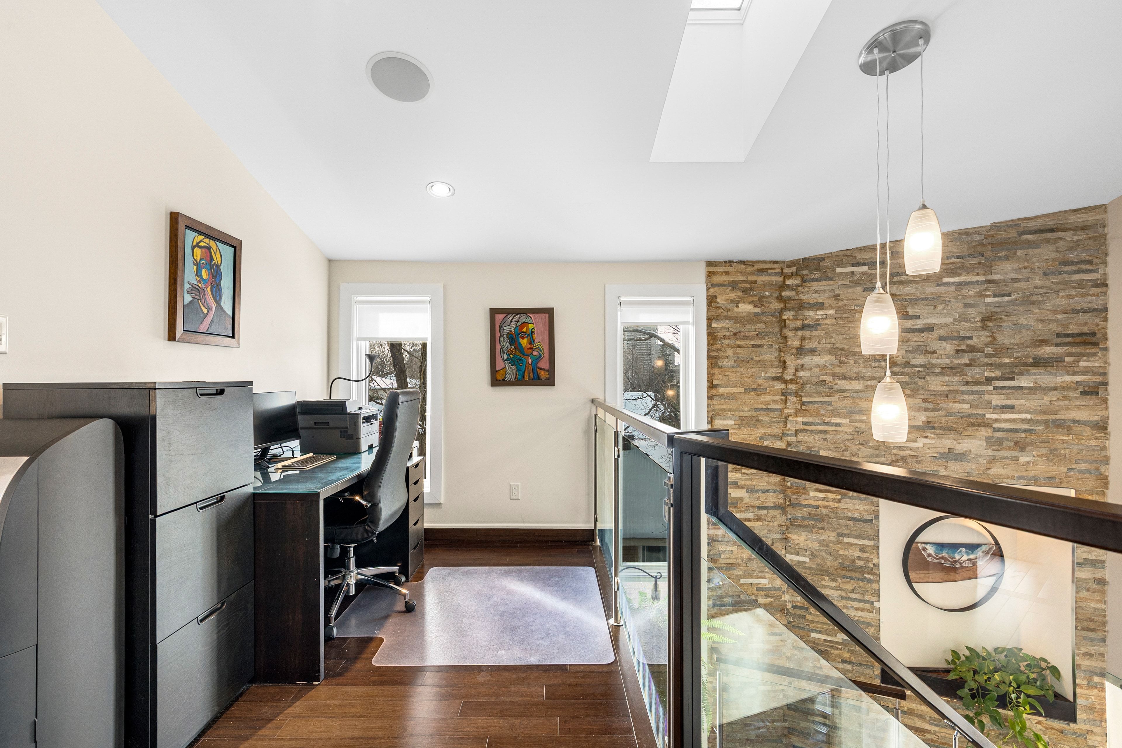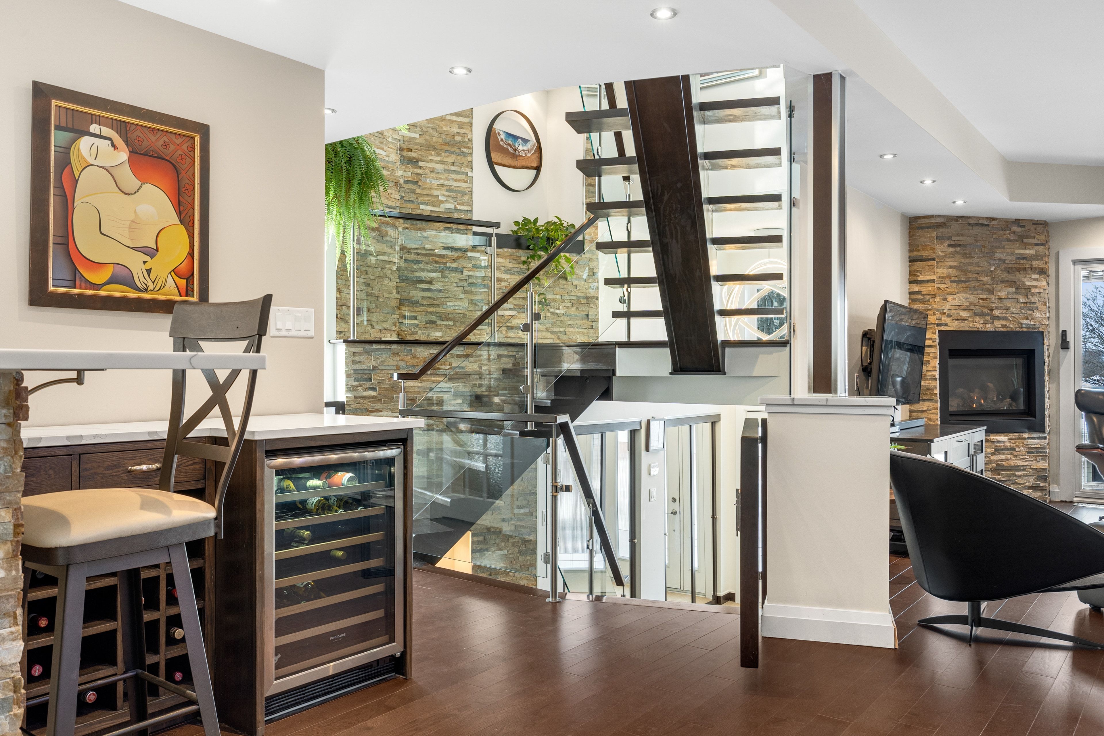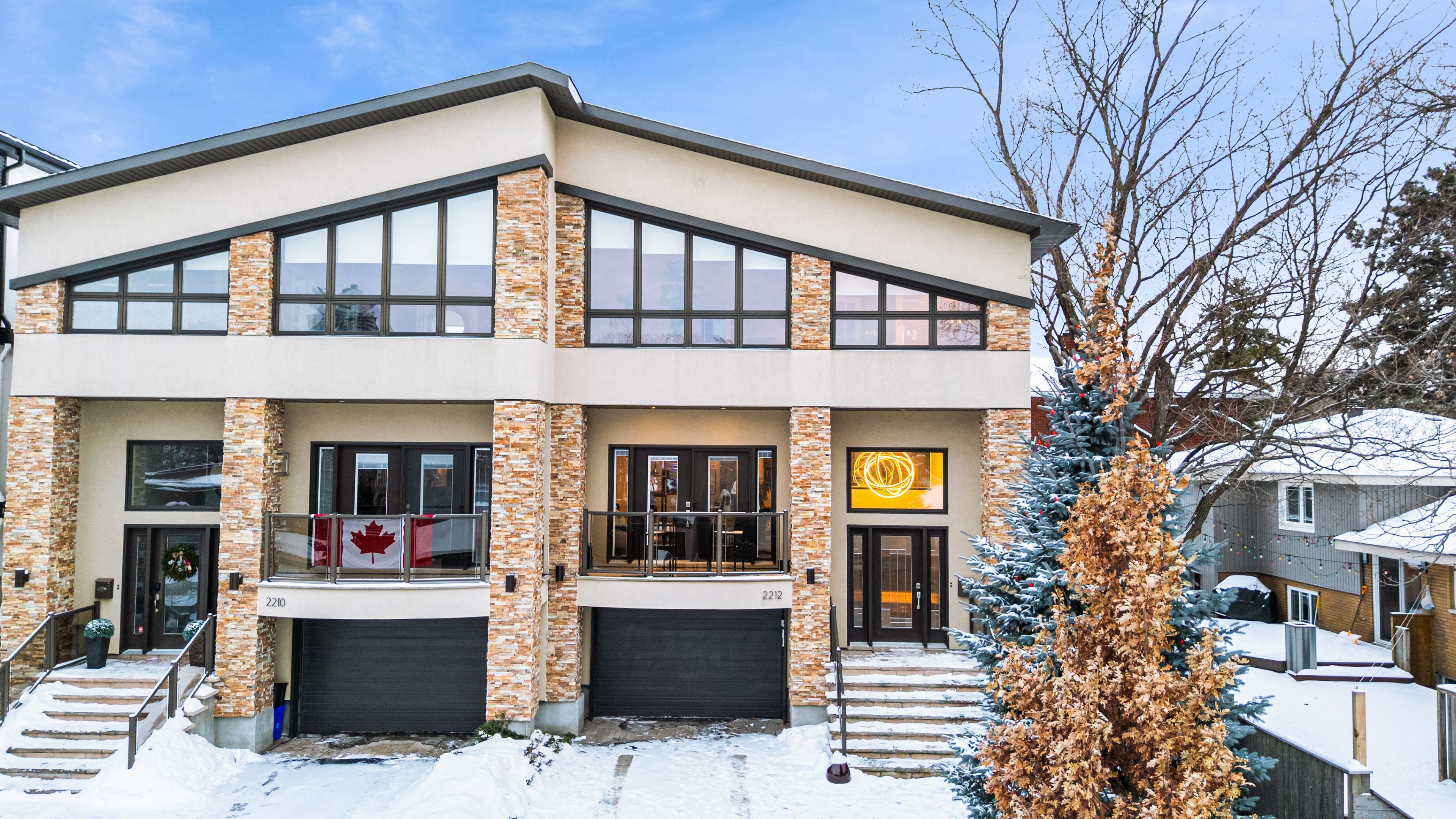 Welcome to 2212 Joanne Ave, in the heart of Woodpark, just around the corner from everything Westboro has to offer. Sophisticated design meets a distinctly modern sensibility in this beautifully appointed home. A striking entry sets the tone, anchored by a dramatic staircase and statement stone feature wall. The elegant living room is warm and inviting, featuring a gas fireplace and direct access to the balcony, and flows seamlessly into the dining area and a beautiful modern kitchen with sleek finishes and generous counter space ideal for refined entertaining. The primary suite is a true showpiece, offering a walk-in closet, soaring vaulted ceilings, and a stunning wall of windows that flood the space with natural light. The spa-inspired ensuite is equally impressive, complete with a luxurious soaker tub, double vanity, and an expansive glass shower, all bathed in sunlight. Secondary bedrooms are equally spacious and thoughtfully designed, complemented by an open loft space, perfect for an office nook or reading retreat overlooking the levels below. The lower level offers a bright and inviting family room with oversized windows and elegant pot lighting, plus a second gas fireplace, creating a versatile space for relaxing, hosting, or unwinding at the end of the day. Step outside and discover a backyard that truly feels like an extension of your living space, an incredible patio and pergola create the perfect setting for entertaining, dining outdoors, or simply enjoying your own private escape in the middle of the city. Set on a quiet side street and conveniently located near schools, the public library, and shopping, this home also offers the added convenience of a Level 2 EV charger and exceptional access to Ottawa River pathways, an ideal setting for an active, elevated lifestyle.