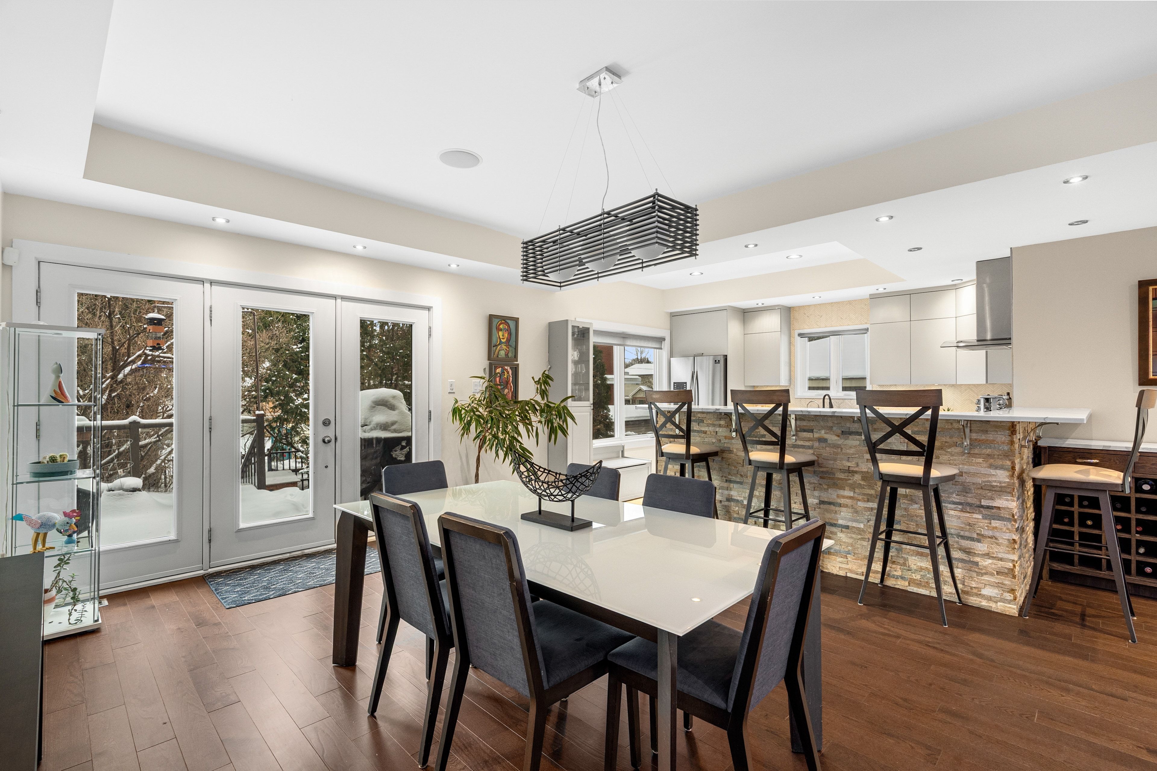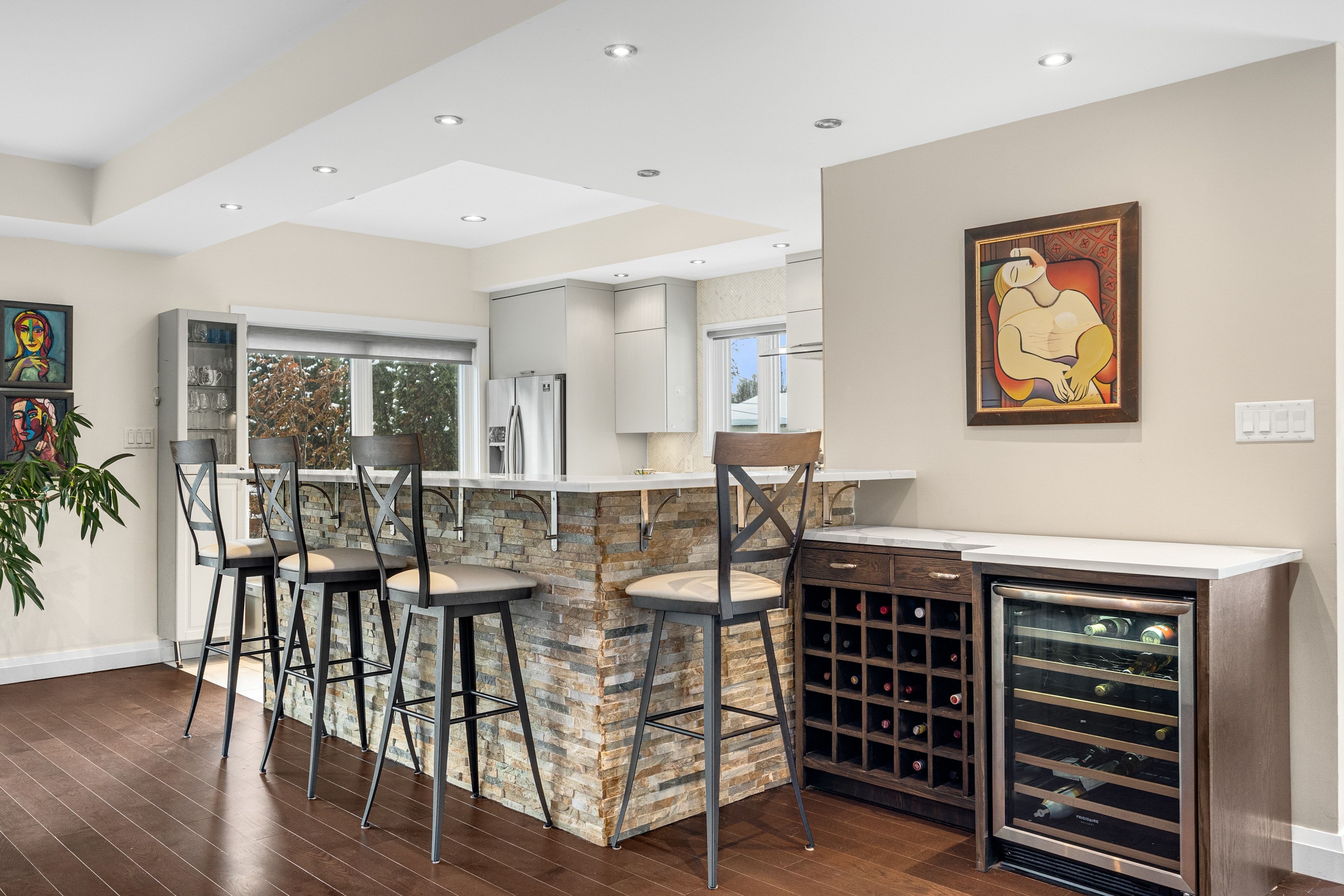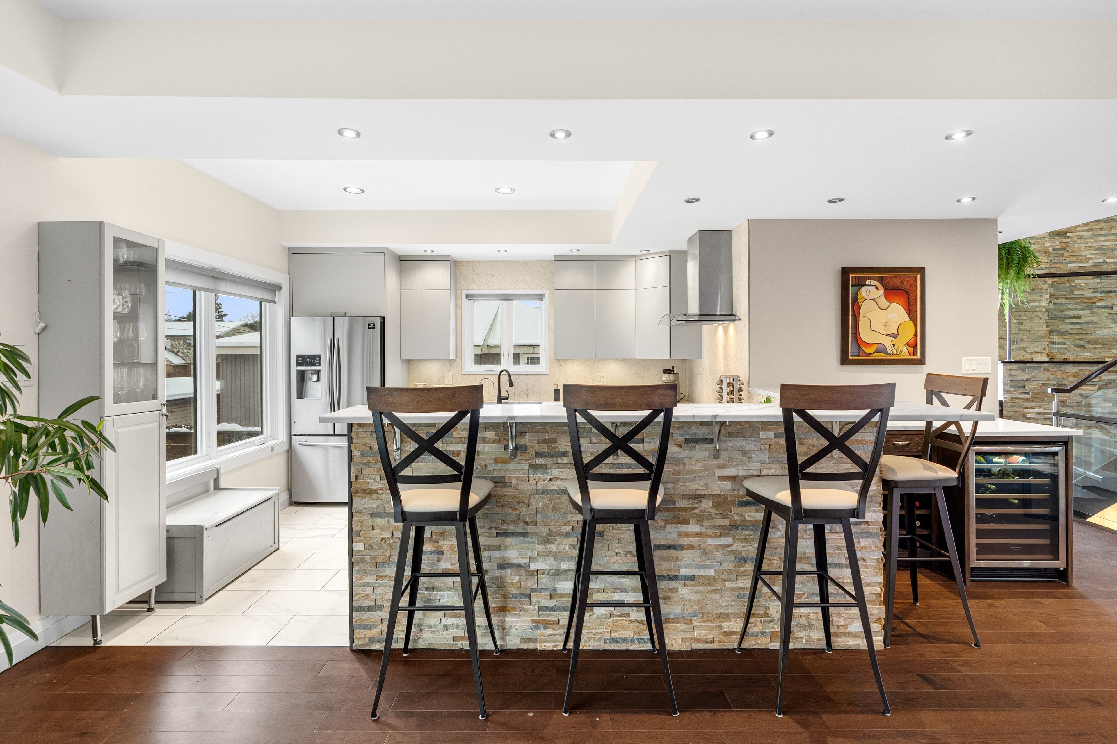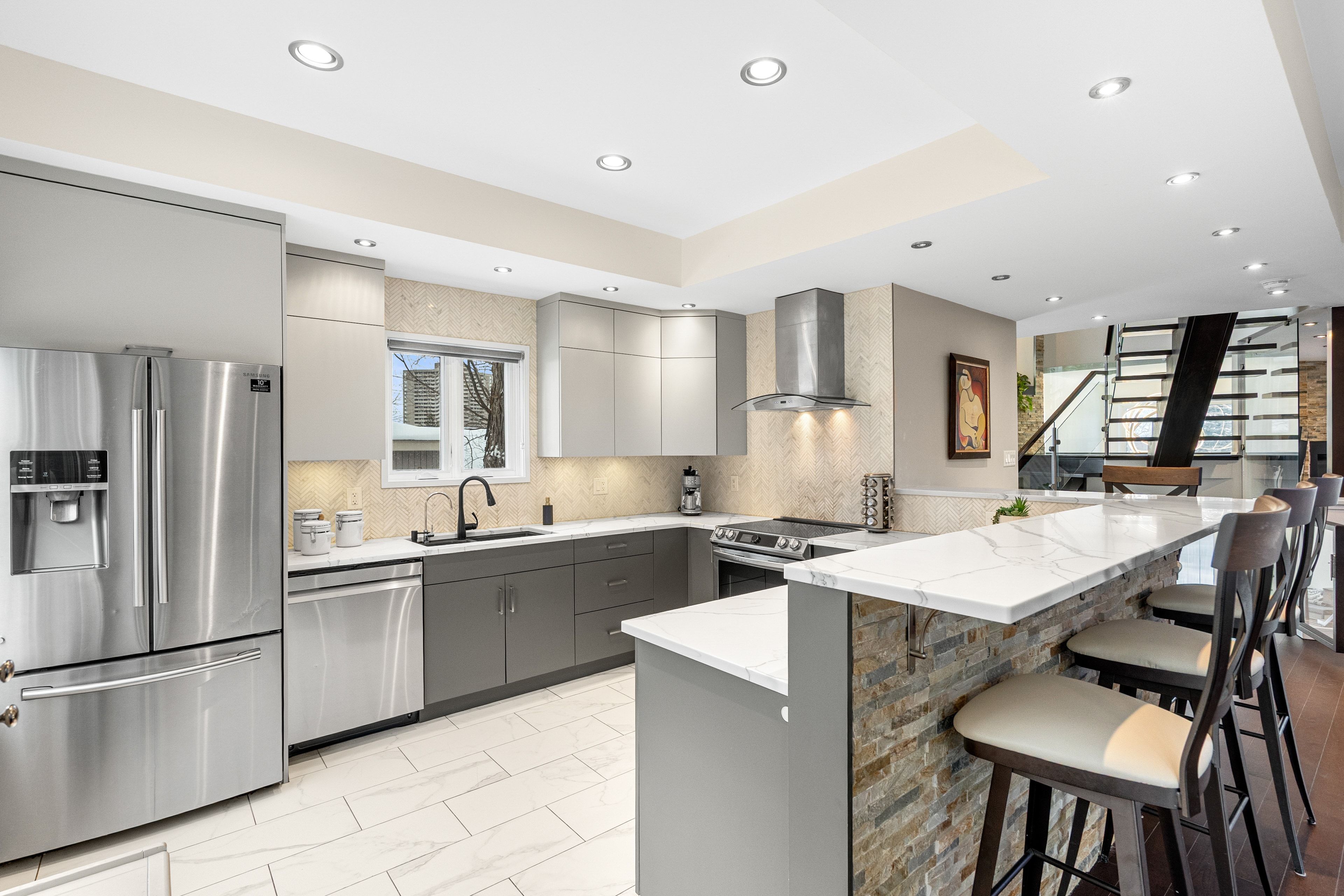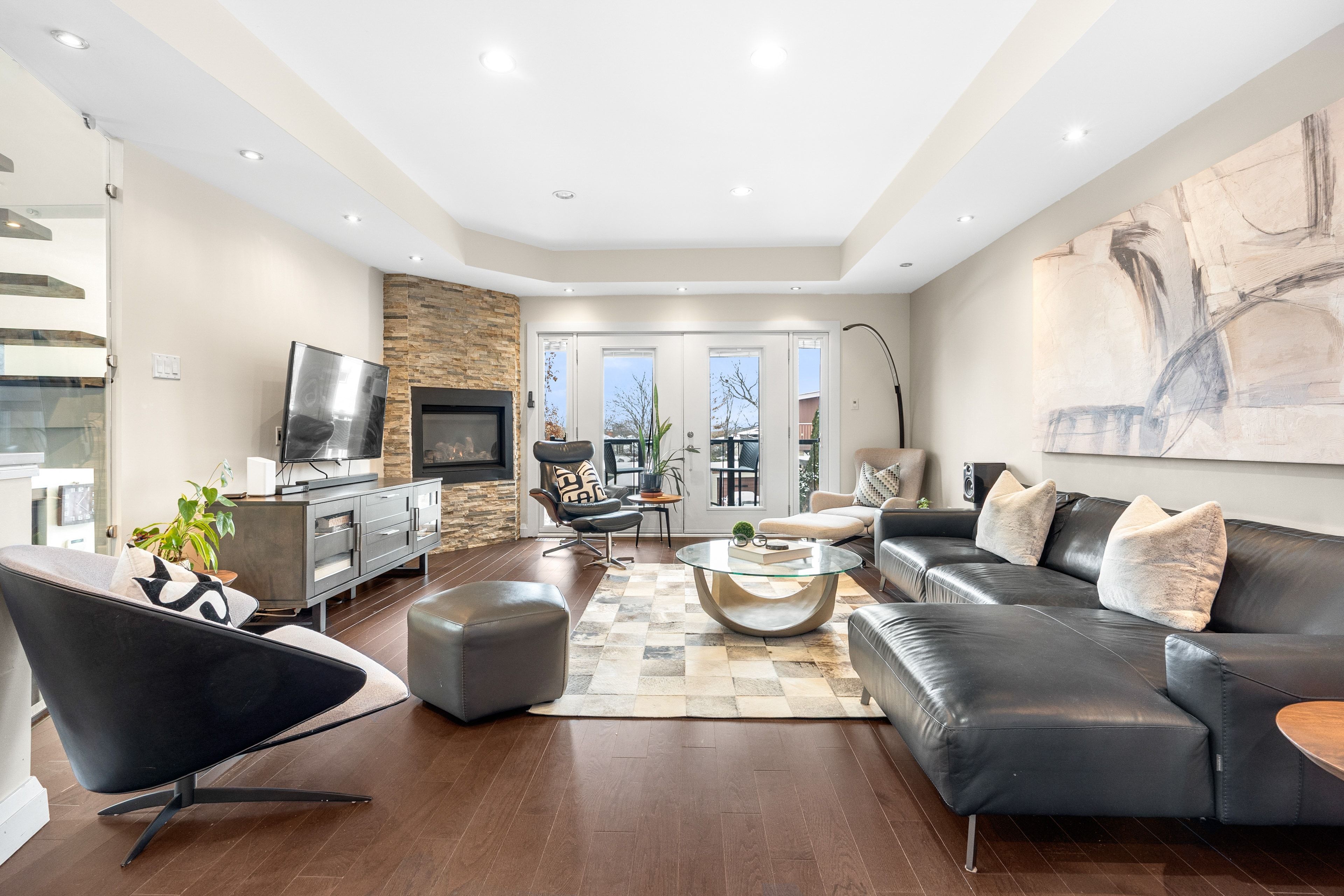 Welcome to 2212 Joanne Ave, in the heart of Woodpark, just around the corner from everything Westboro has to offer. Sophisticated design meets a distinctly modern sensibility in this beautifully appointed home. A striking entry sets the tone, anchored by a dramatic staircase and statement stone feature wall. The elegant living room is warm and inviting, featuring a gas fireplace and direct access to the balcony, and flows seamlessly into the dining area and a beautiful modern kitchen with sleek finishes and generous counter space ideal for refined entertaining. The primary suite is a true showpiece, offering a walk-in closet, soaring vaulted ceilings, and a stunning wall of windows that flood the space with natural light. The spa-inspired ensuite is equally impressive, complete with a luxurious soaker tub, double vanity, and an expansive glass shower, all bathed in sunlight. Secondary bedrooms are equally spacious and thoughtfully designed, complemented by an open loft space, perfect for an office nook or reading retreat overlooking the levels below. The lower level offers a bright and inviting family room with oversized windows and elegant pot lighting, plus a second gas fireplace, creating a versatile space for relaxing, hosting, or unwinding at the end of the day. Step outside and discover a backyard that truly feels like an extension of your living space, an incredible patio and pergola create the perfect setting for entertaining, dining outdoors, or simply enjoying your own private escape in the middle of the city. Set on a quiet side street and conveniently located near schools, the public library, and shopping, this home also offers the added convenience of a Level 2 EV charger and exceptional access to Ottawa River pathways, an ideal setting for an active, elevated lifestyle.