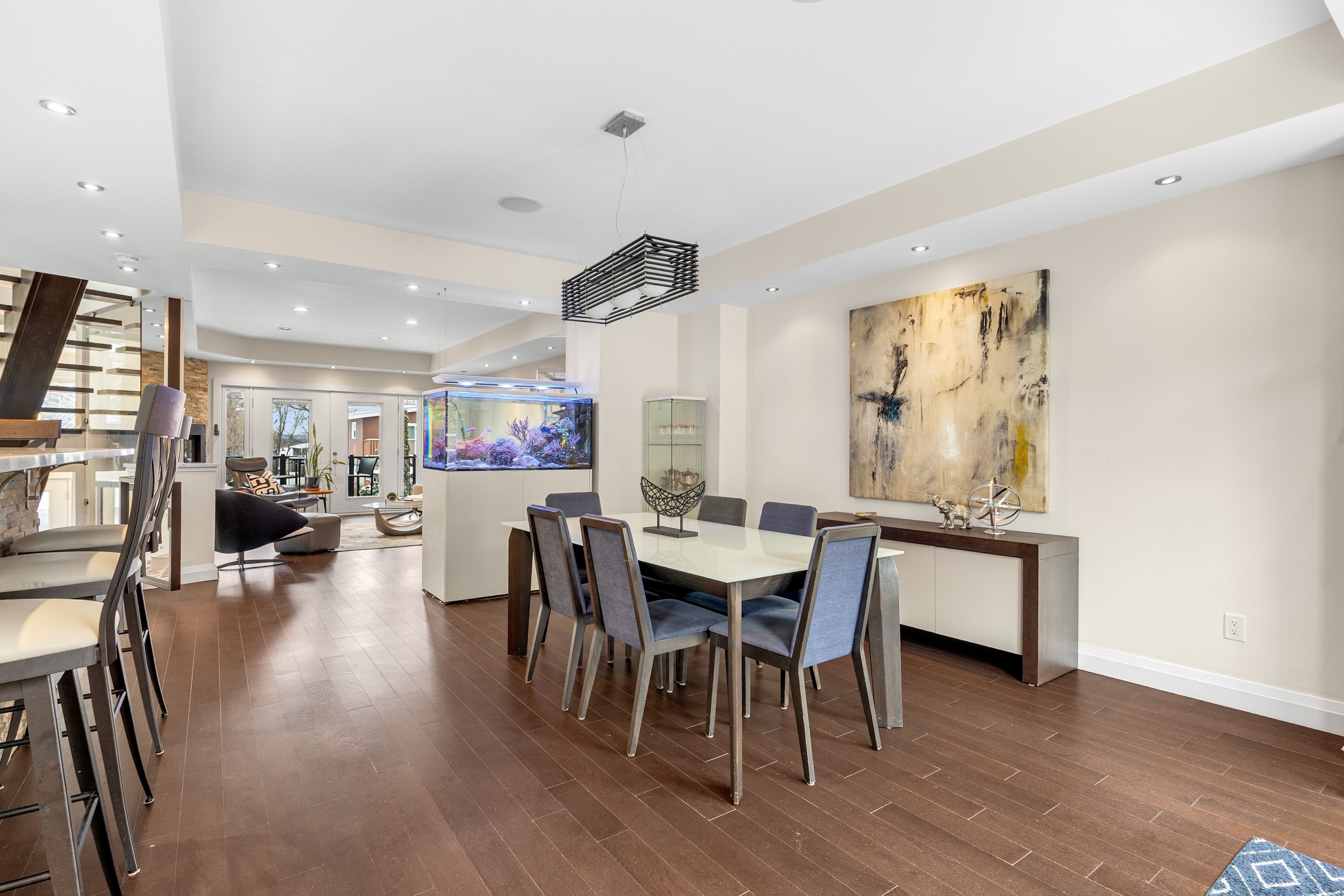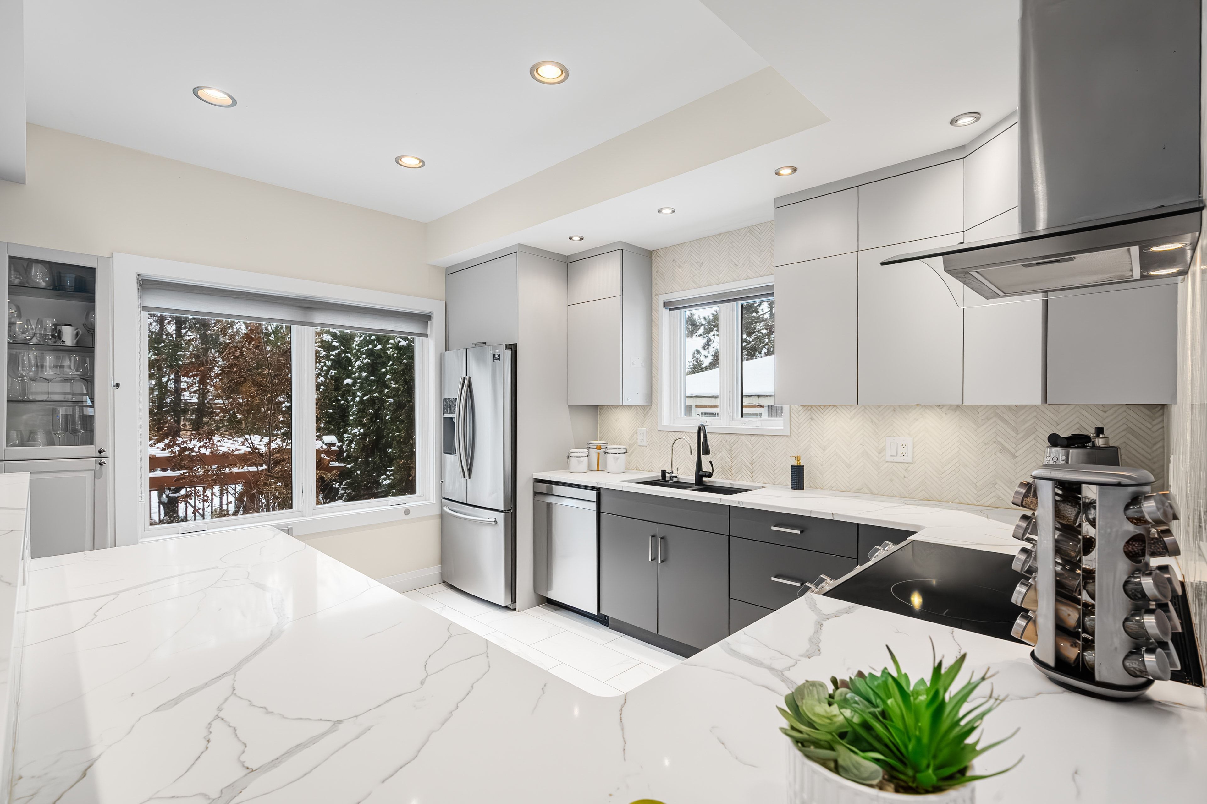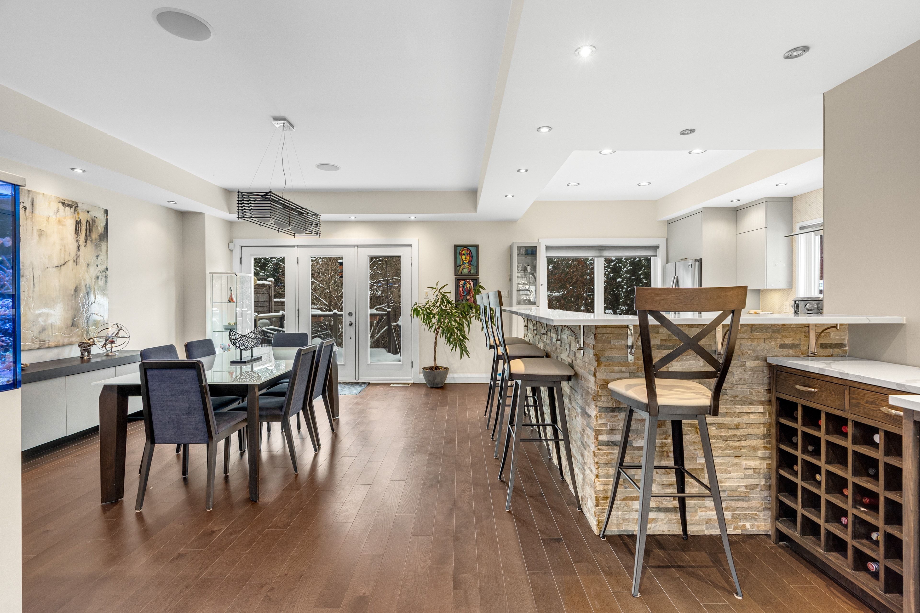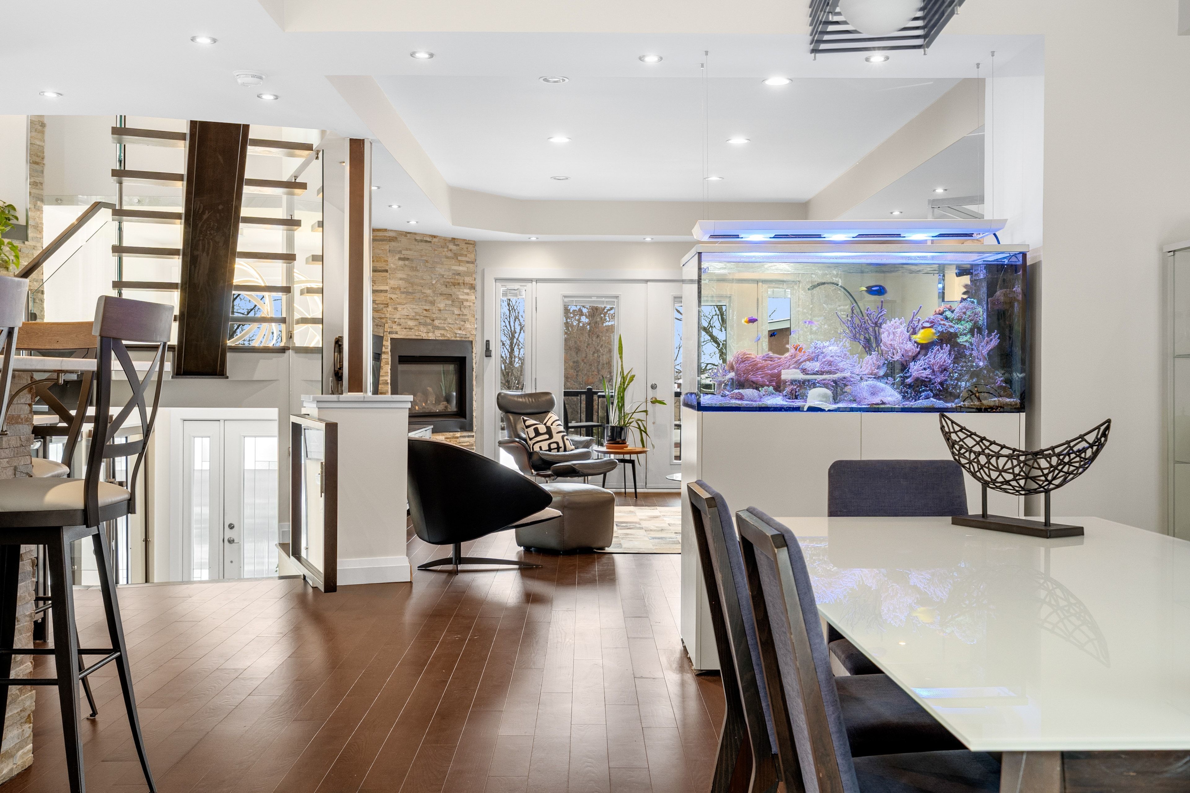 Welcome to 2212 Joanne Ave, in the heart of Woodpark, just around the corner from everything Westboro has to offer. Sophisticated design meets a distinctly modern sensibility in this beautifully appointed home. A striking entry sets the tone, anchored by a dramatic staircase and statement stone feature wall. The elegant living room is warm and inviting, featuring a gas fireplace and direct access to the balcony, and flows seamlessly into the dining area and a beautiful modern kitchen with sleek finishes and generous counter space ideal for refined entertaining. The primary suite is a true showpiece, offering a walk-in closet, soaring vaulted ceilings, and a stunning wall of windows that flood the space with natural light. The spa-inspired ensuite is equally impressive, complete with a luxurious soaker tub, double vanity, and an expansive glass shower, all bathed in sunlight. Secondary bedrooms are equally spacious and thoughtfully designed, complemented by an open loft space, perfect for an office nook or reading retreat overlooking the levels below. The lower level offers a bright and inviting family room with oversized windows and elegant pot lighting, plus a second gas fireplace, creating a versatile space for relaxing, hosting, or unwinding at the end of the day. Step outside and discover a backyard that truly feels like an extension of your living space, an incredible patio and pergola create the perfect setting for entertaining, dining outdoors, or simply enjoying your own private escape in the middle of the city. Set on a quiet side street and conveniently located near schools, the public library, and shopping, this home also offers the added convenience of a Level 2 EV charger and exceptional access to Ottawa River pathways, an ideal setting for an active, elevated lifestyle.