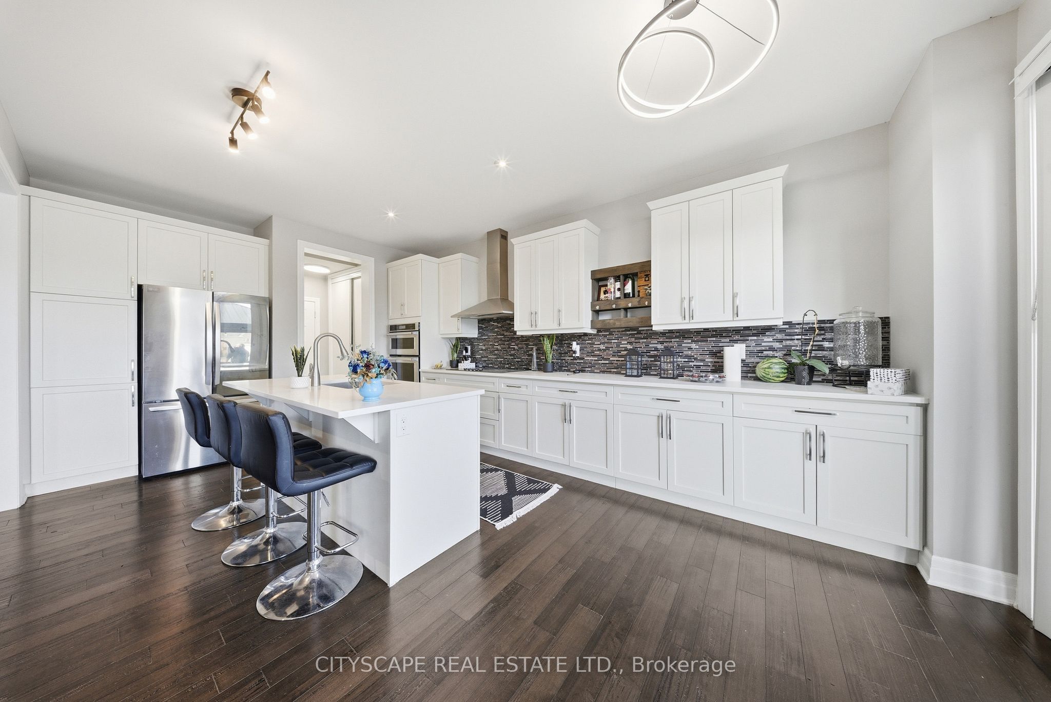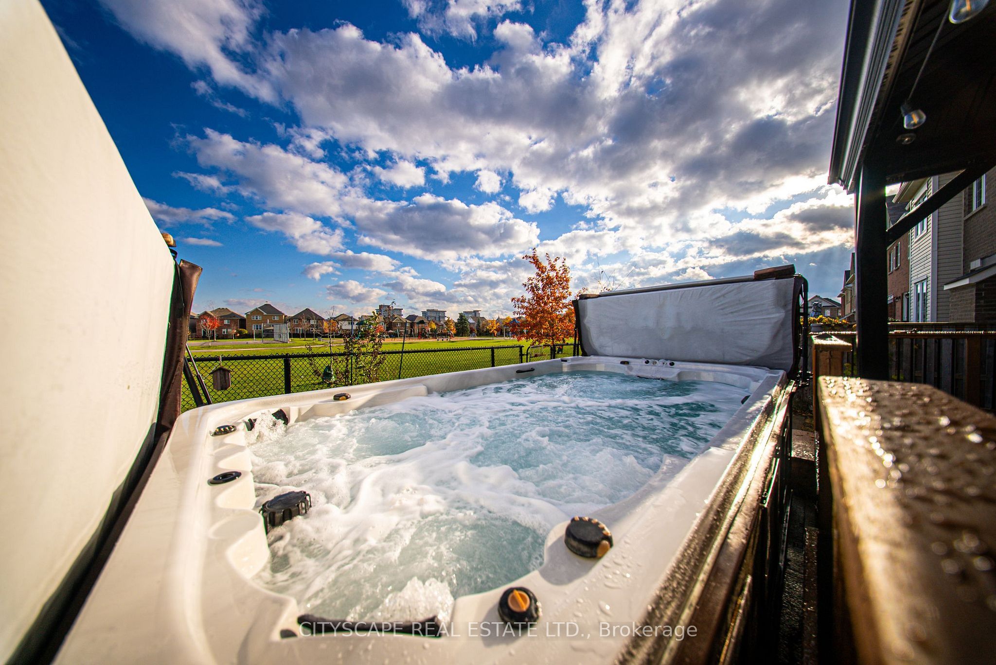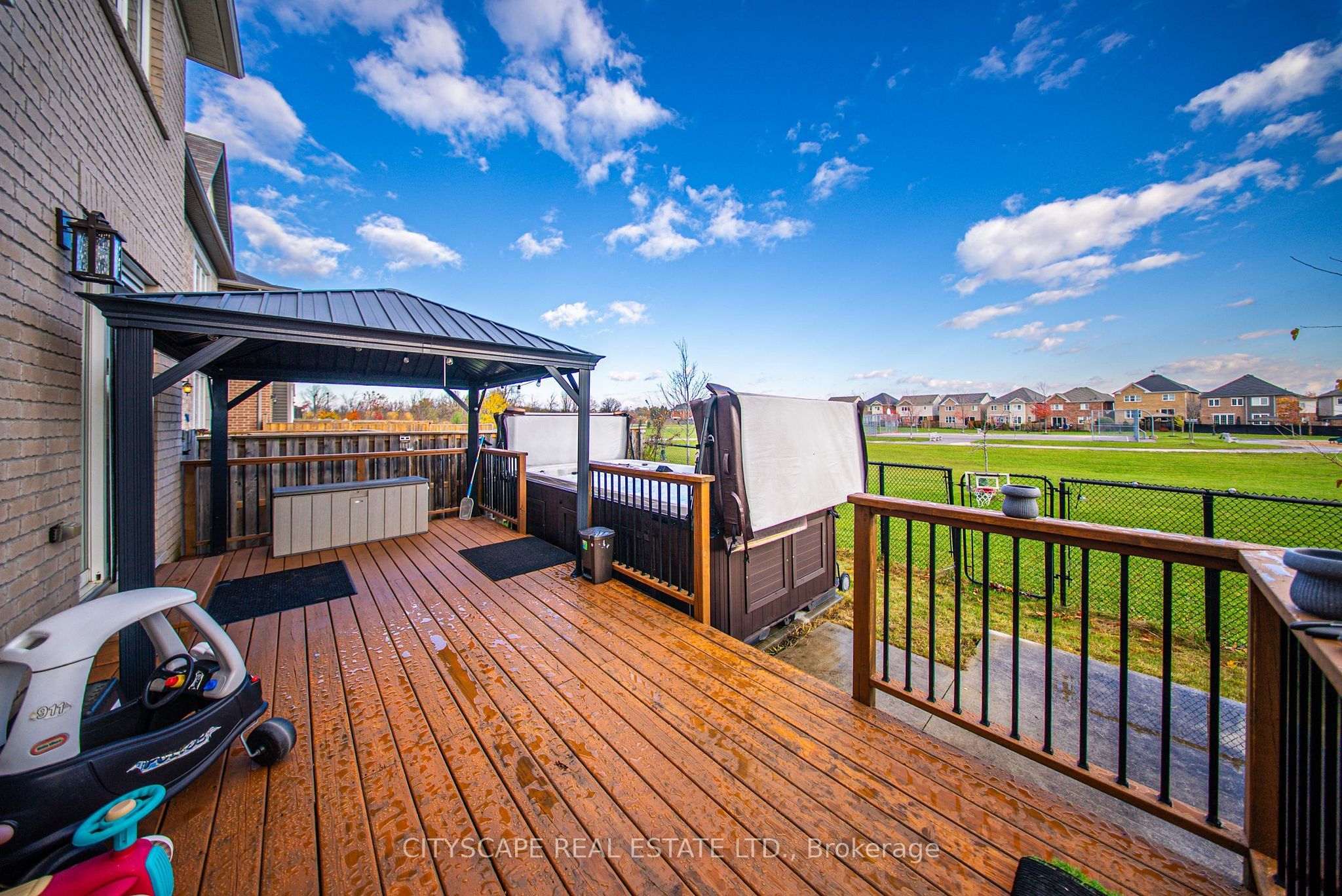 Welcome to 28 Celano Drive, a beautifully upgraded and meticulously maintained 4+1 bedroom, 4-bathroom home offering approximately 3.026 sqft of finished living space, built in 2017 and ideally set directly on Cranberry Park with private park access. The bright main level features an open-concept layout with hardwood flooring, a custom kitchen with quartz countertops, upgraded cabinetry, KitchenAid stainless steel appliances, and complemented by a brand-new LG 36" refrigerator and Samsung dishwasher. A spacious Great Room with a fireplace and a separate den perfect for a home office complete the main floor. The second level offers new flooring, a primary bedroom with a 3-piece ensuite and walk-in closet, three additional bedrooms, second-floor laundry, and a generous family room. The fully finished basement includes an additional bedroom, full bathroom, and a recreational area, pantry, ideal for extended family or guests. The home is enhanced with new LED lighting throughout and marble and stone finishes in the kitchen and all bathrooms. The fully fenced backyard features a deck and an extra-large hot tub that doubles as a swimming pool, creating a private retreat backing onto Cranberry Park. Located in one of Waterdown's most desirable neighborhoods, this move-in ready home is close to excellent schools, shopping, restaurants, parks, and major highways including the QEW, 403 and 407. A perfect opportunity to own a modern family home that blends comfort, style and an exceptional setting.