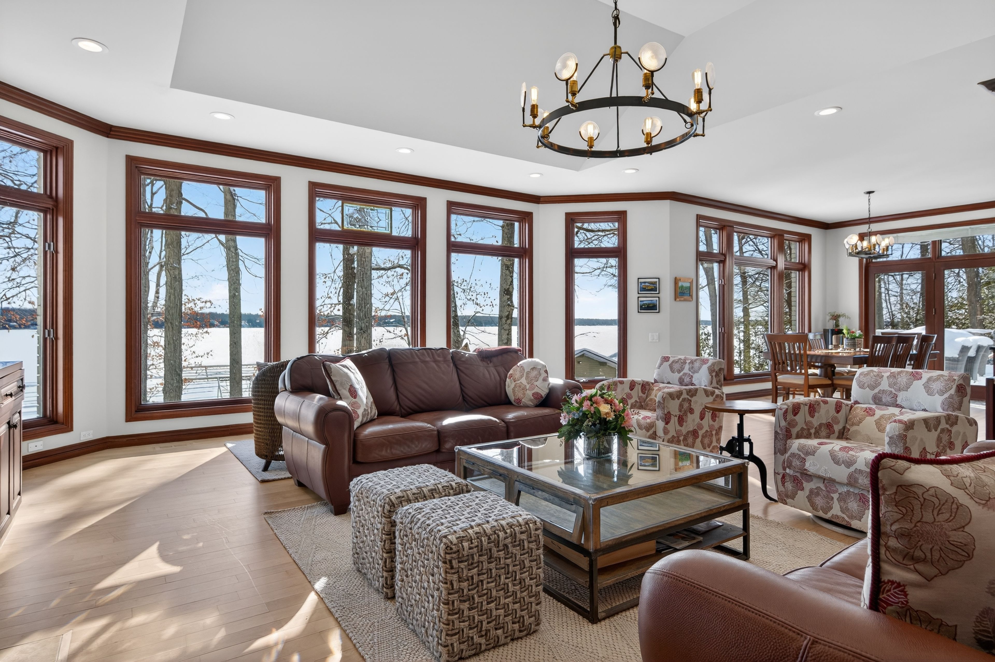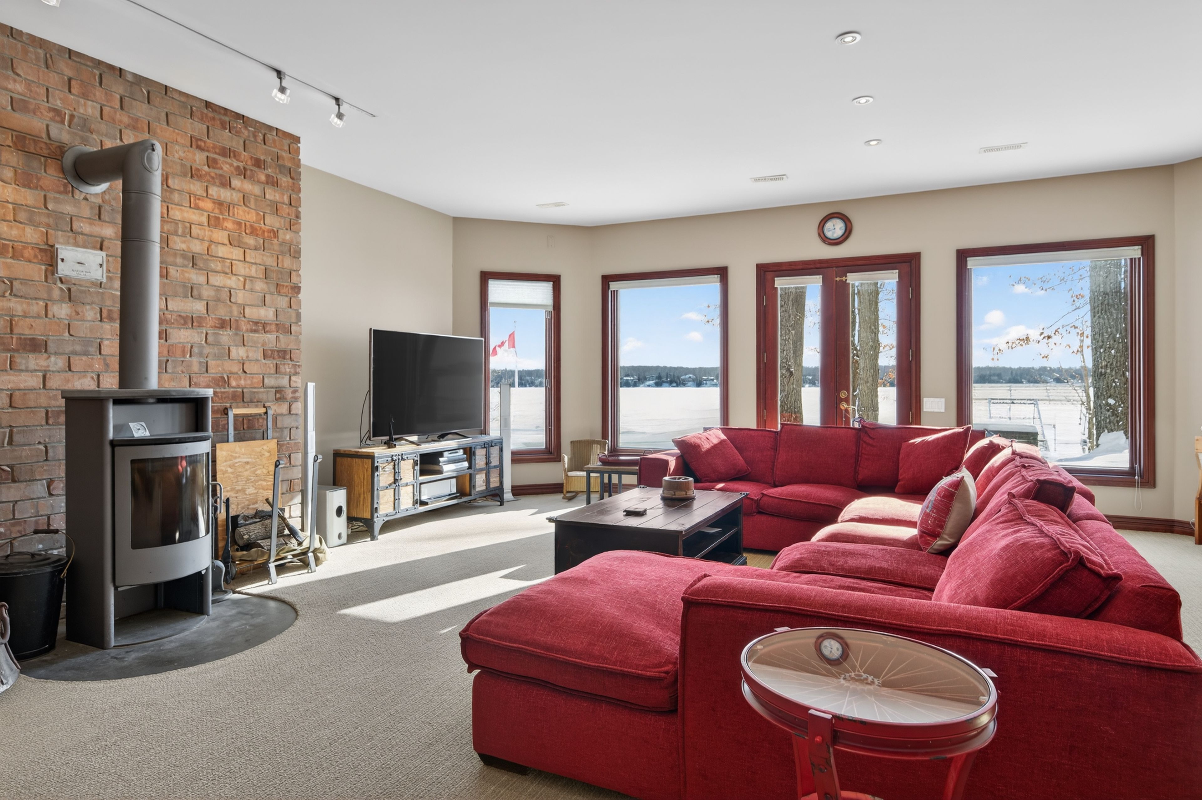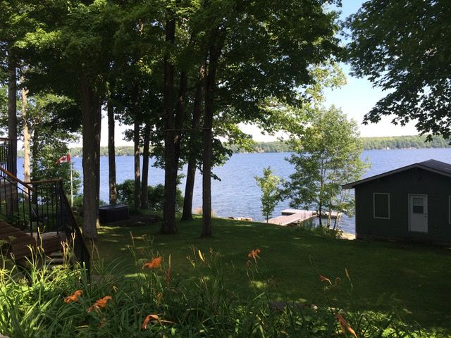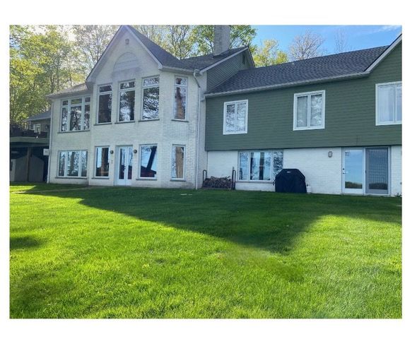 Set on the pristine shores of Clear Lake, this executive 6 bedroom, 5 bathroom waterfront home offers a rare blend of luxury, privacy and iconic Kawartha living. This exceptional brick and pine bungalow has approximately 5,400 sq ft of finished living space, combining quality craftsmanship and thoughtful design-set on a private lot with easy access off the main road. A spacious front entryway leads into an impressive open-concept living, dining, and kitchen area, highlighted by vaulted ceilings and wall-to-ceiling windows showcasing spectacular lakeviews. Maple flooring, recessed pot lighting, and a propane fireplace create a warm yet refined atmosphere. The living and kitchen areas feature custom cherry cabinetry, while the kitchen is beautifully appointed with high-end appliances, an extra-large refrigerator, and granite countertops and backsplash-perfect for entertaining. A large deck off the kitchen provides seamless access to the garden and waterfront. The main level also includes a large front office, main-floor laundry, and a primary suite with walk-in closet and spa-like ensuite. The walk-out lower level features a generous recreation room with wood-burning fireplace, floor-to-ceiling windows, and space for family gatherings. Also with its own private entrance is a self-contained 2-bedroom, 1-bath in-law suite, ideal for guests or extended family. Outside, enjoy 107 ft of flat, private waterfront, canilevered aluminum T-docks, and a double dry boathouse with recreational space above, offering excellent storage for boats and watertoys. Two additional back lots provide extra storage and future potential. Additional features include an attached double garage, 24' x 25' workshop, paved driveway, underground watering system, armoured retaining wall, and quality construction throughout. An outstanding Clear Lake executive waterfront offering, gorgeous from entrance to exit.