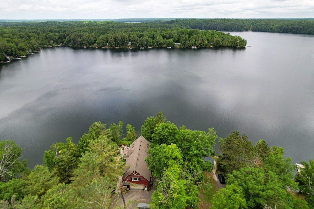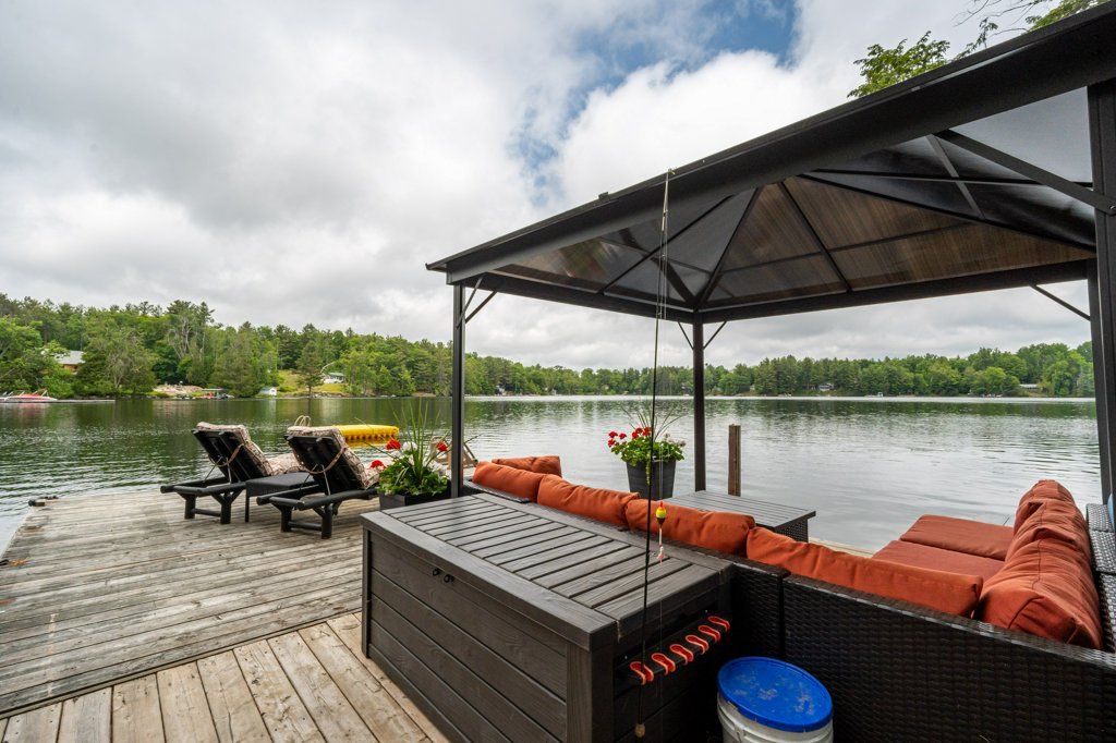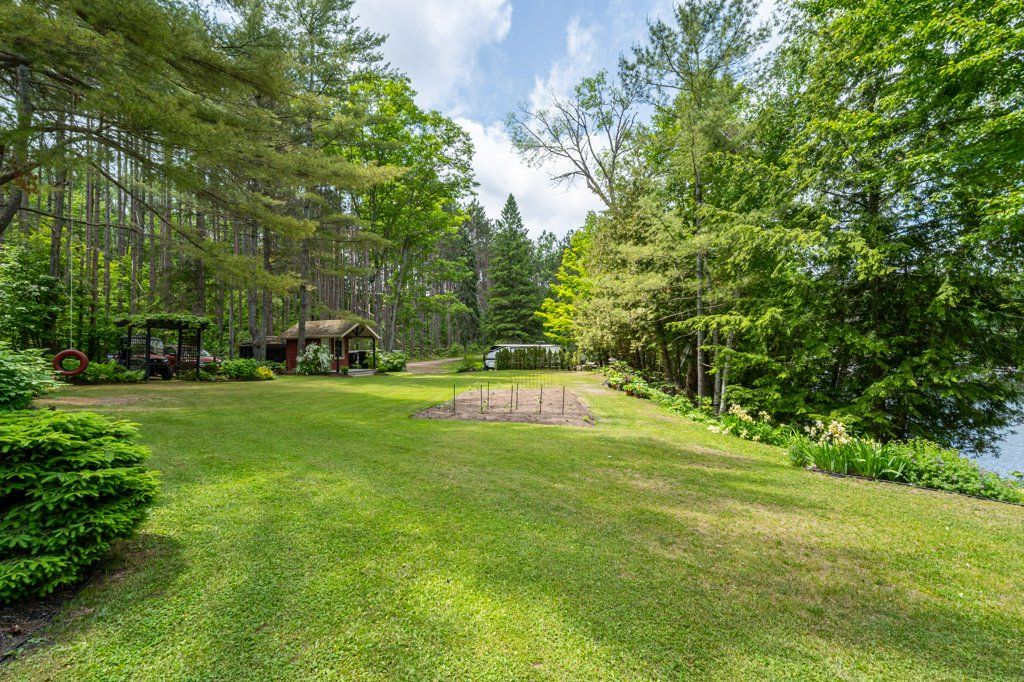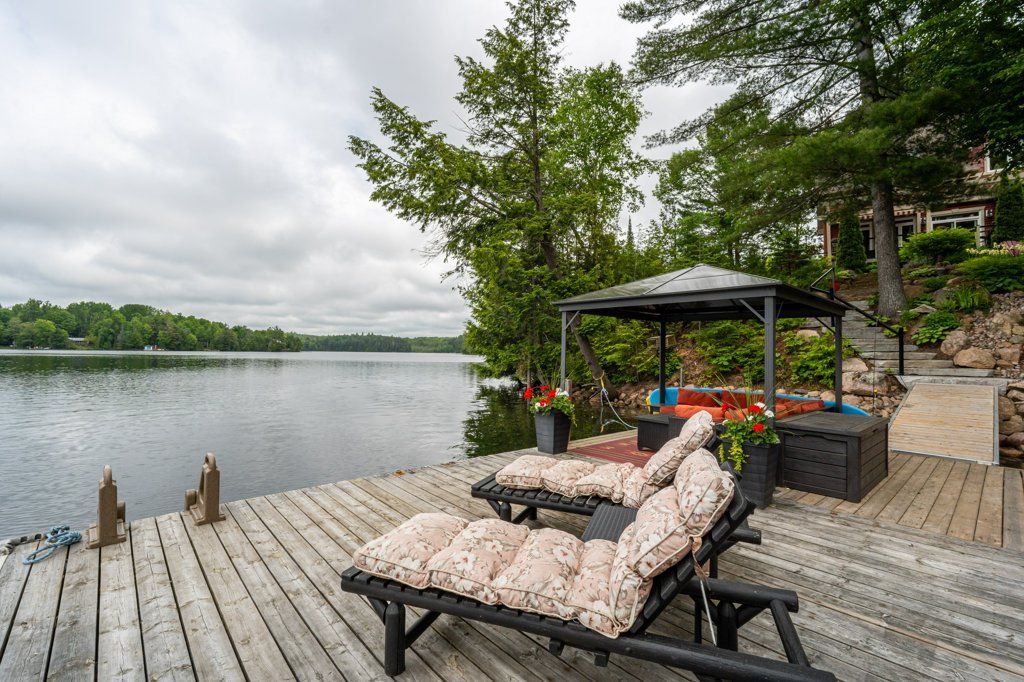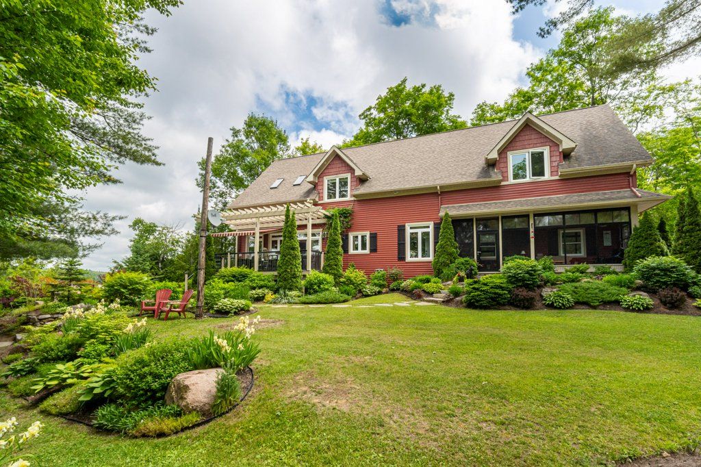 Stunning Chandos Lakehouse! ~200ft of private waterfront, jump off the dock, wade-in the sand beach and watch the sunset across Chandos Lake! This custom lakehouse is tucked in the trees overlooking the lake, quality built in 2008 on this spacious private landscaped lot. Extend the lakeviews inside through the expansive vaulted windows in the open concept living space with floor to ceiling stone fireplace and gleaming granite kitchen. Approximately 4000sqft of beautiful finished living space, quality built by Logic Construction (with new home inspection on hand) offering a full walk-up basement, 4 bedrooms and 3 full bathrooms, plus private guest suite above attached double garage and private bunkie! Walkout to lakeside deck and screened-in porch to watch the sunset over this peaceful, private setting or relax under the stars from the beautiful landscaped firepit. Designed for year-round enjoyment just 10 mins to the amenities of Apsley, this is custom Chandos Lake living at its finest!