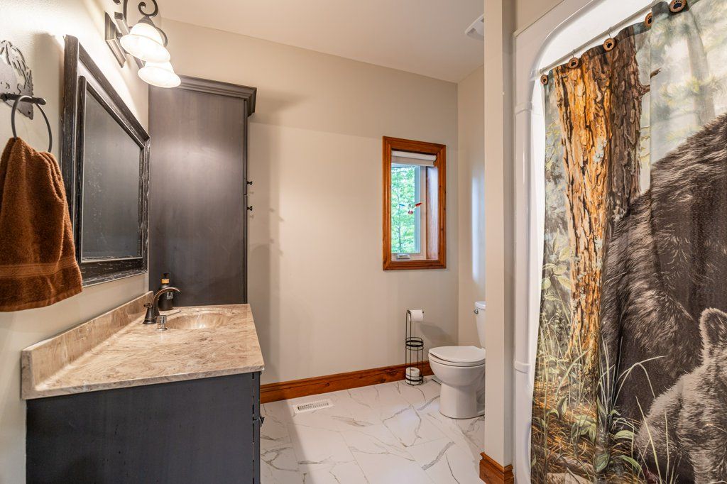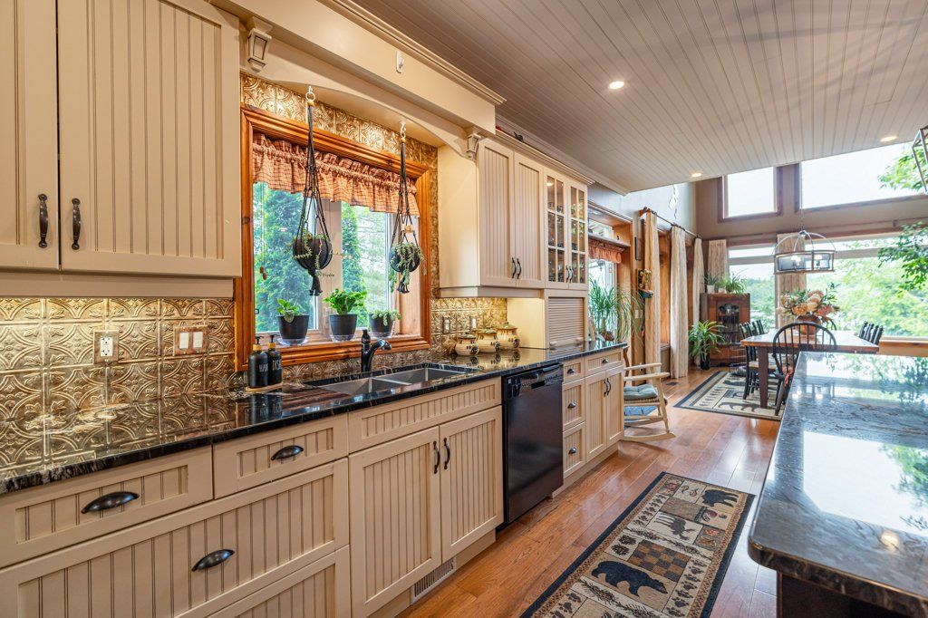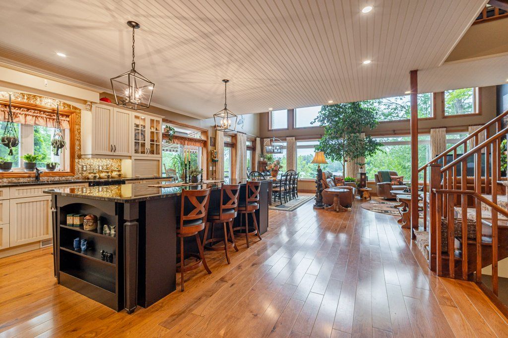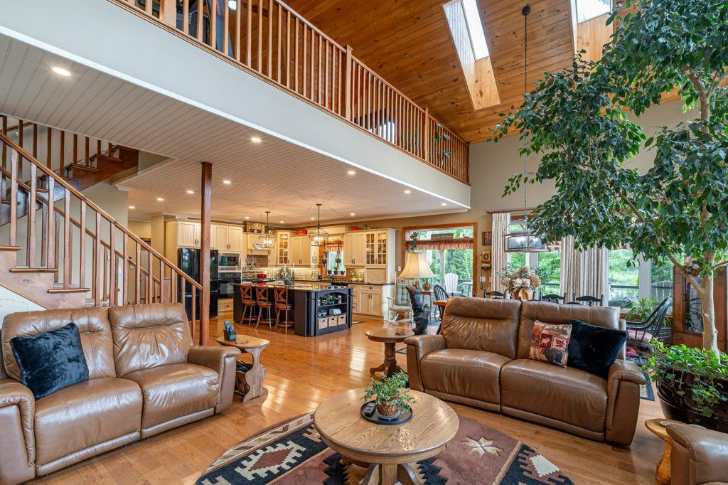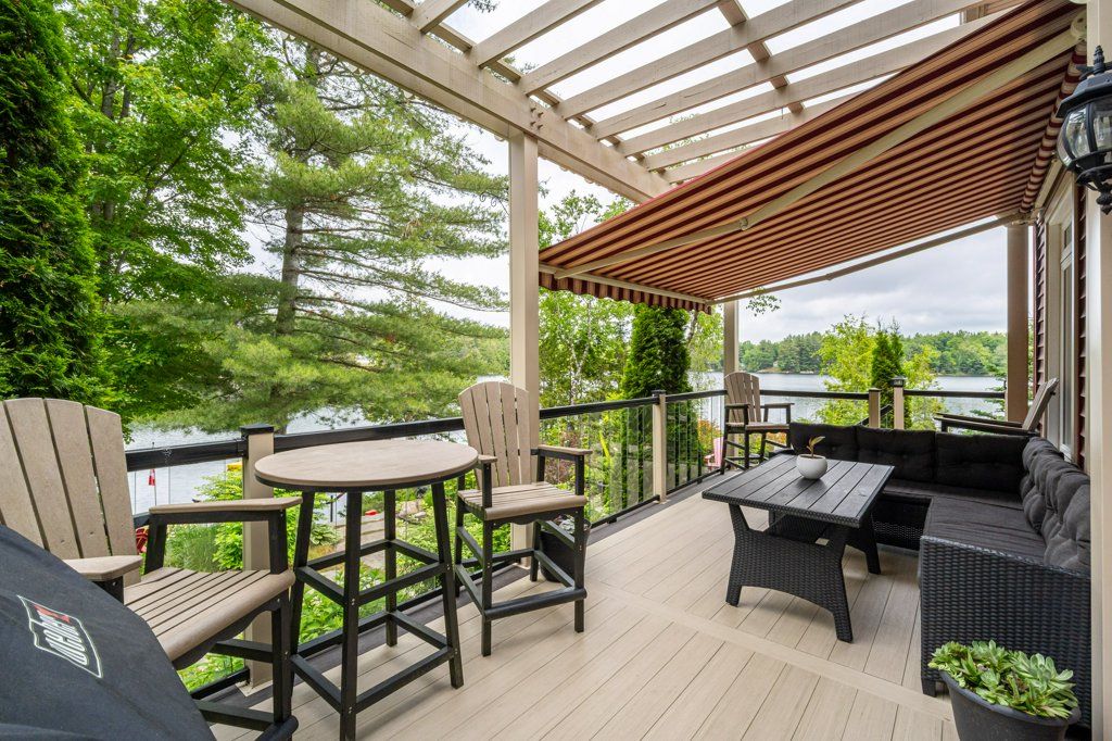 Stunning Chandos Lakehouse! ~200ft of private waterfront, jump off the dock, wade-in the sand beach and watch the sunset across Chandos Lake! This custom lakehouse is tucked in the trees overlooking the lake, quality built in 2008 on this spacious private landscaped lot. Extend the lakeviews inside through the expansive vaulted windows in the open concept living space with floor to ceiling stone fireplace and gleaming granite kitchen. Approximately 4000sqft of beautiful finished living space, quality built by Logic Construction (with new home inspection on hand) offering a full walk-up basement, 4 bedrooms and 3 full bathrooms, plus private guest suite above attached double garage and private bunkie! Walkout to lakeside deck and screened-in porch to watch the sunset over this peaceful, private setting or relax under the stars from the beautiful landscaped firepit. Designed for year-round enjoyment just 10 mins to the amenities of Apsley, this is custom Chandos Lake living at its finest!