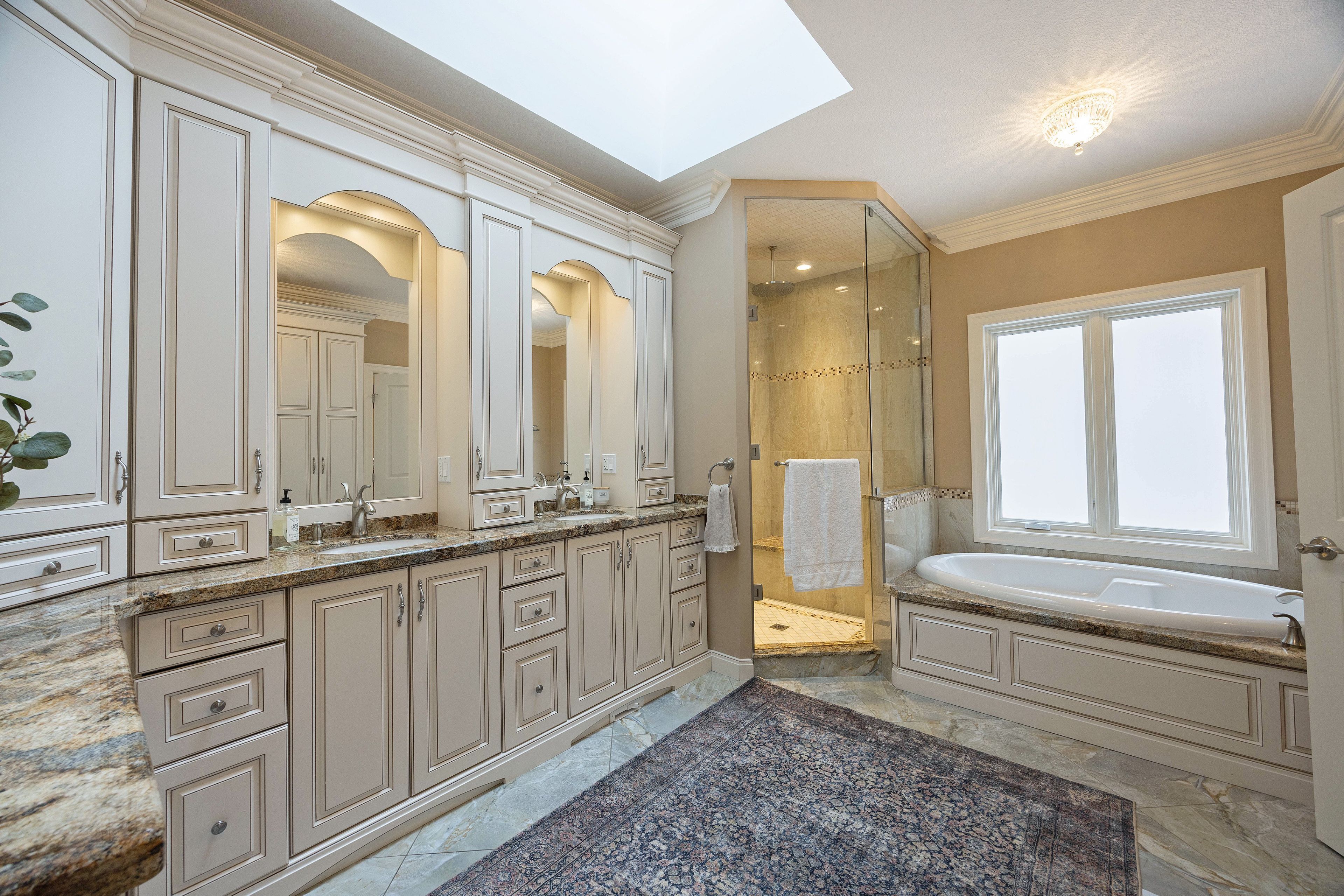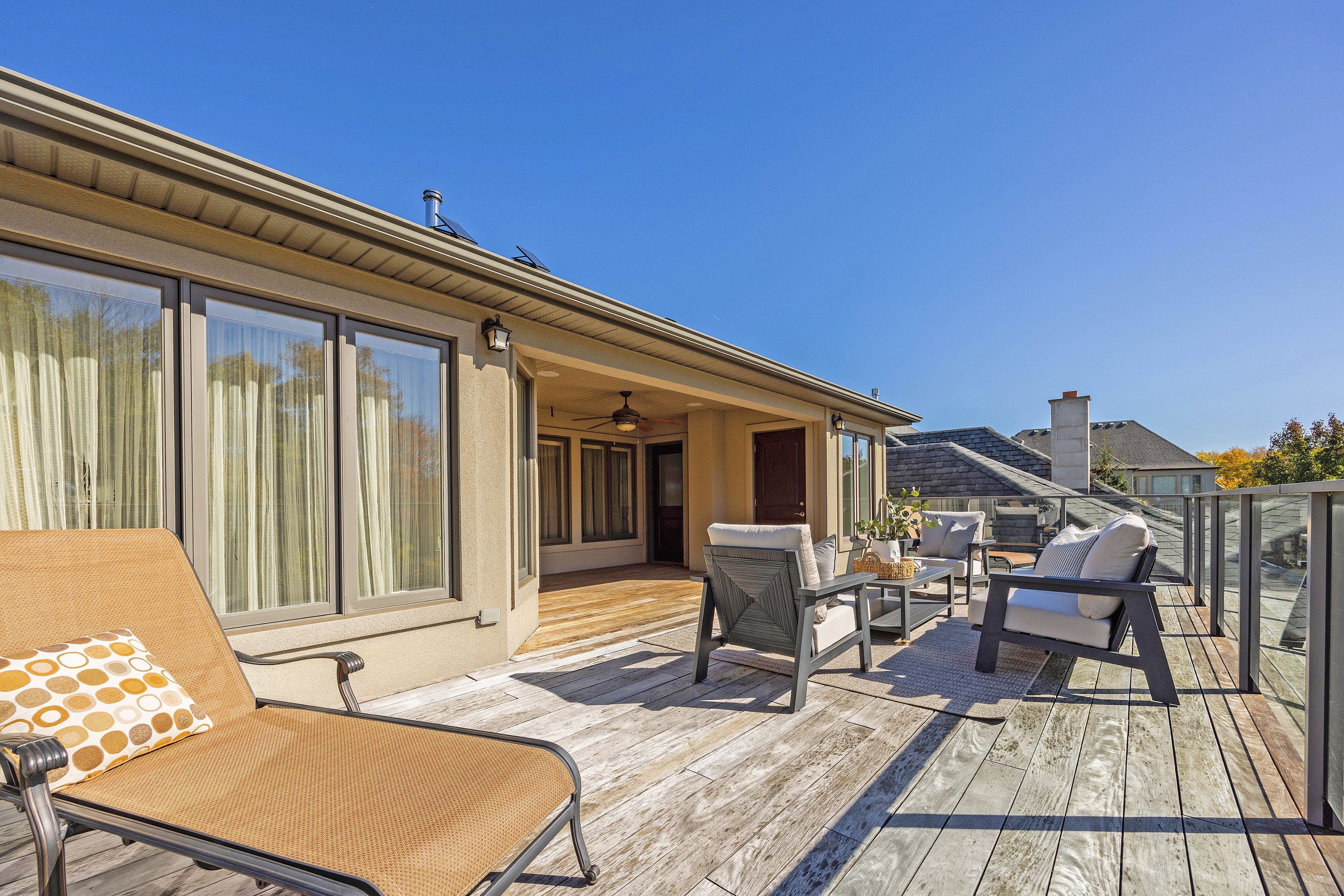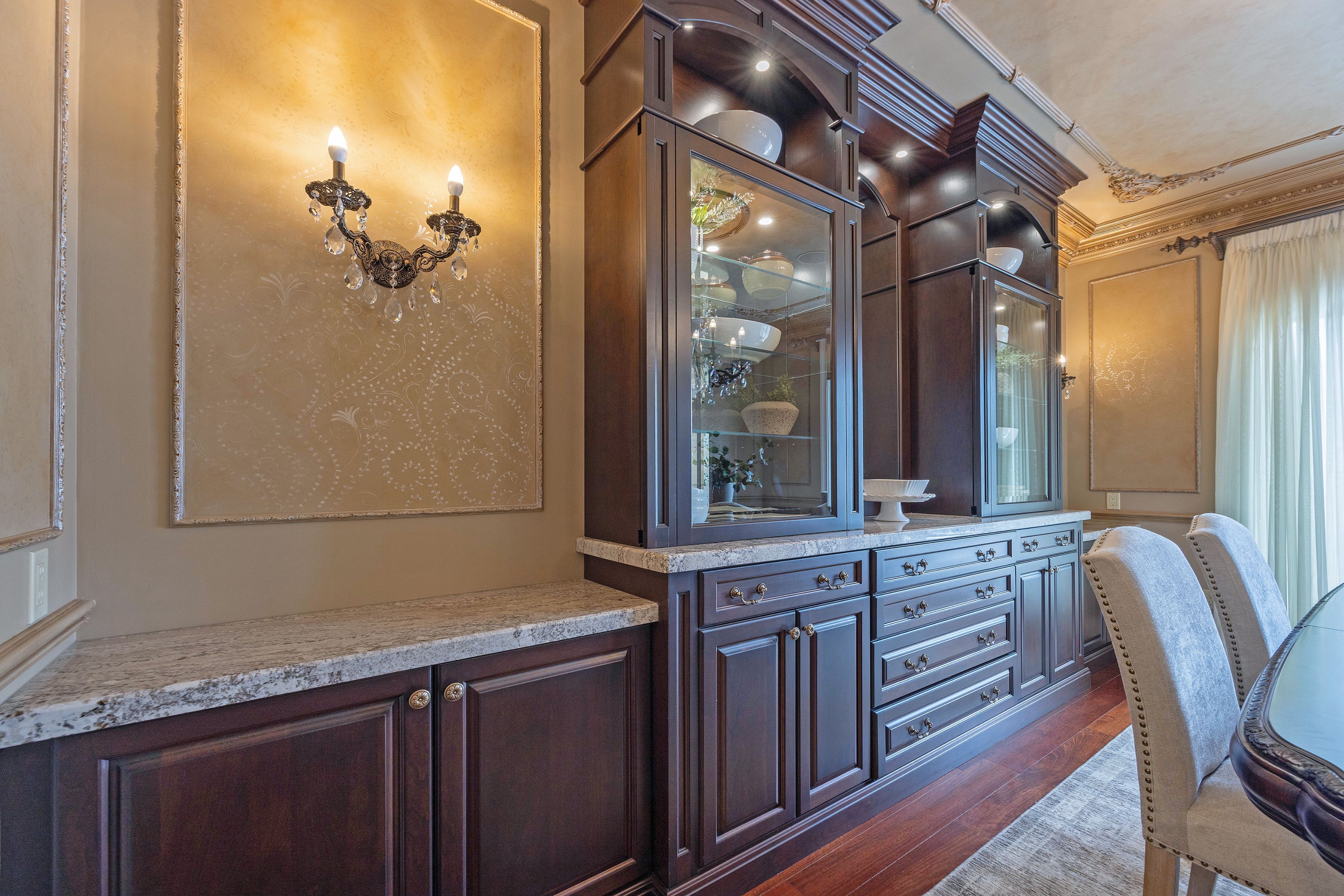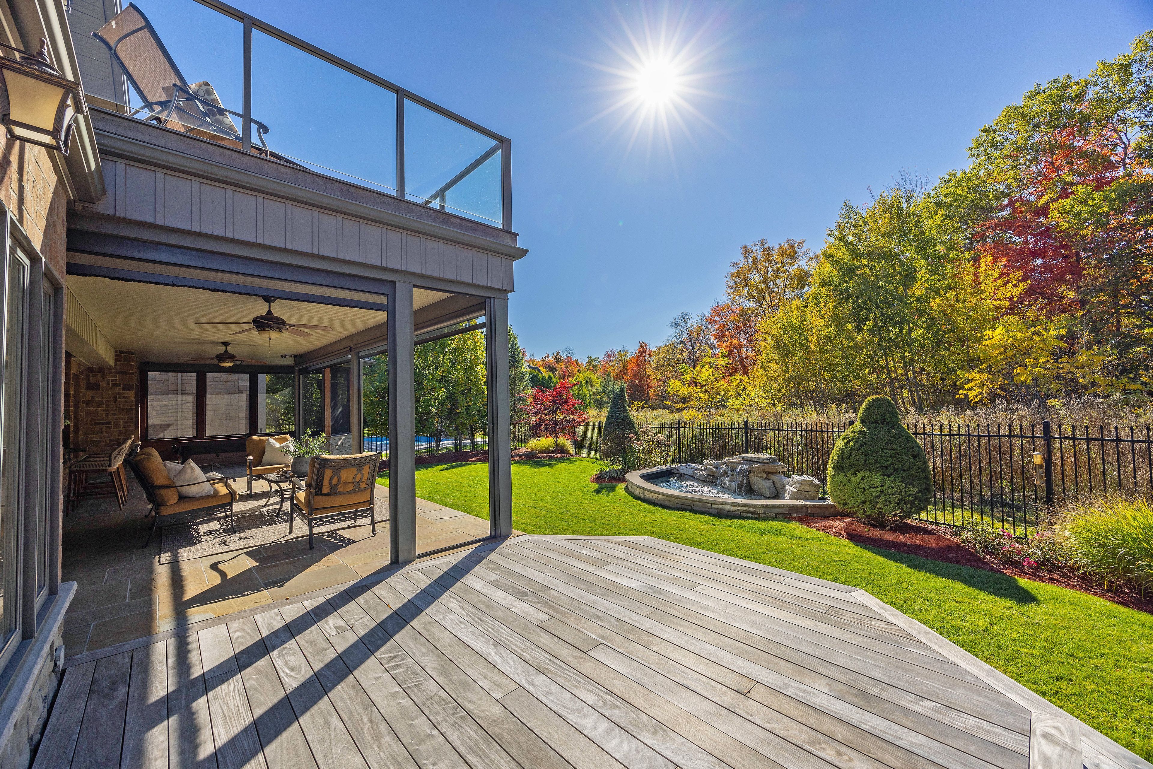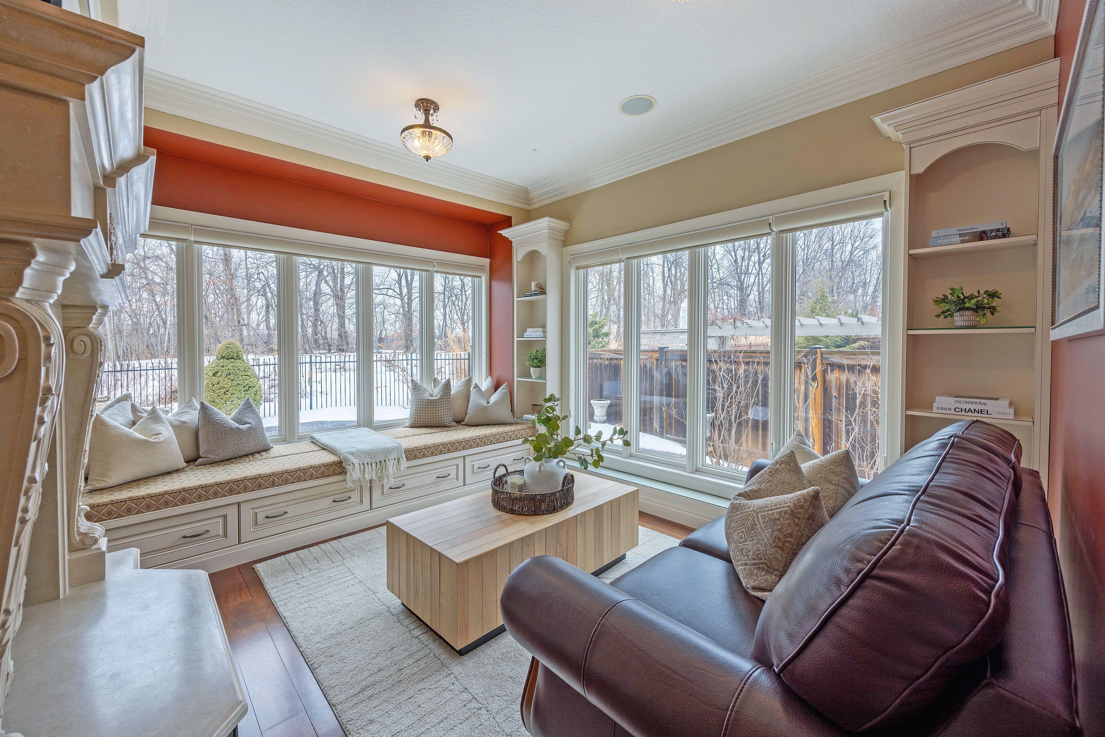 This stone residence, backing onto serene woods, offers privacy and an extraordinary outdoor living space. The incredible screened room, overlooking the gardens and woods, is a true showpiece-complete with built-in BBQ, granite counters, hot tub, and a 3-piece bath. Custom interior features include built-in cabinetry, integrated sound system, Swarovski chandeliers, plaster mouldings, a wood-burning fireplace and striking double-sided gas fireplace. Heated floors in the bathrooms and laundry room. The main-floor primary suite features an ensuite, custom walk-through closet, and convenient access to the laundry room with built-in ironing board and exceptional storage. Kitchen features a granite island, induction cooktop, wine fridge, and butler's pantry connecting to the dining room. A main-floor office-easily a third bedroom-offers a built-in desk, generous closet, and cheater ensuite. Second main floor bedroom features walk-in closet and ensuite. Upstairs, a custom-designed loft provides remarkable flexibility for a home gym, media lounge, or hobby space, complete with a 3-piece bath and access to a large covered upper deck with exterior storage. The lower level is designed with versatility in mind, offering the potential for a private suite with bedroom, 4pc bath, kitchen, family room, movie area, roughed-in laundry, and separate entrance to the garage. A rare offering that seamlessly blends luxury, functionality, and one-of-a-kind design backing onto spectacular woods.