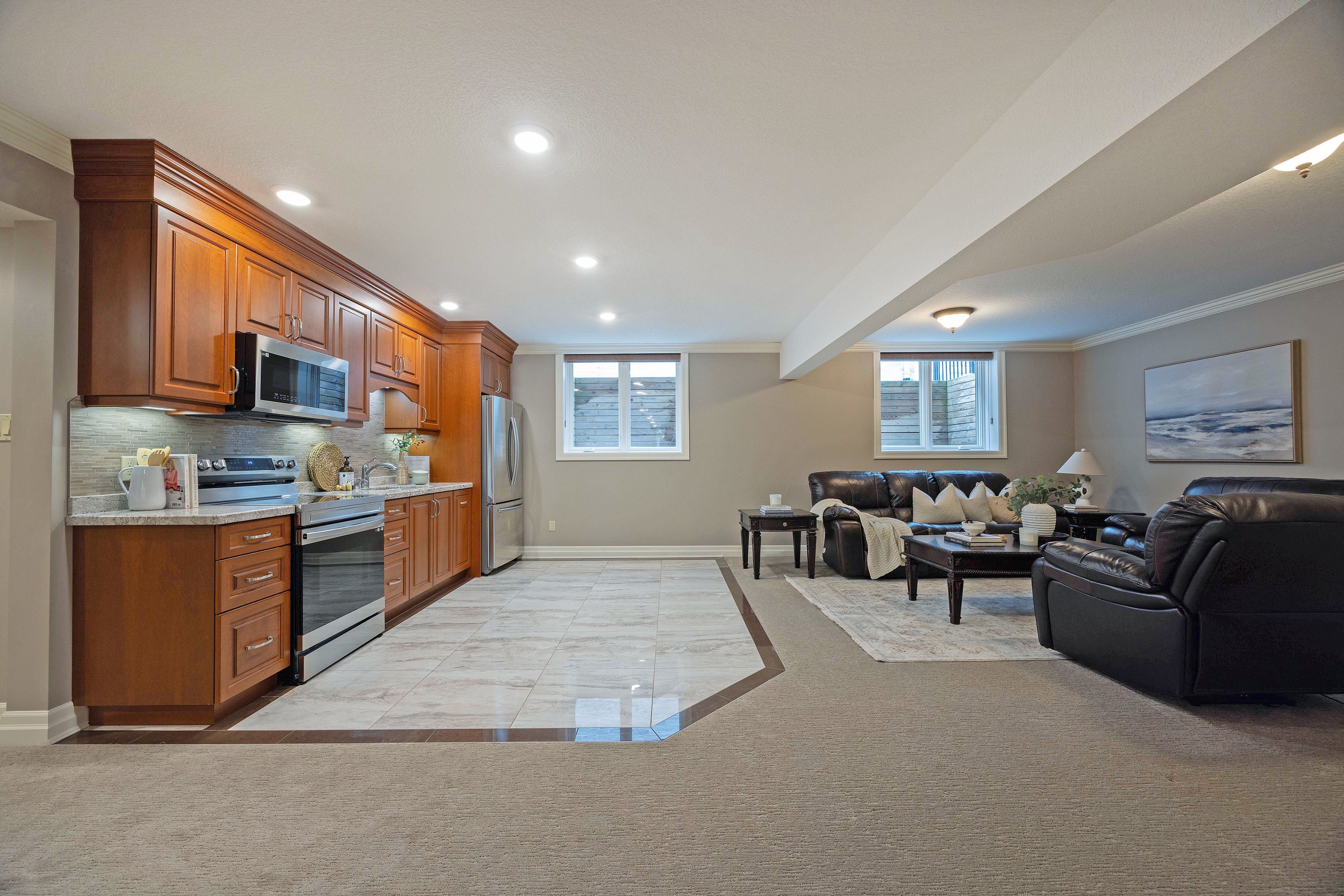 - 内部特点: Auto Garage Door Remote, Bar Fridge, Built-In Oven, Central Vacuum, In-Law Suite, Primary Bedroom - Main Floor, Storage, Sump Pump