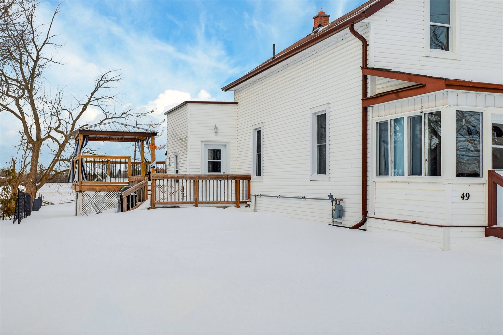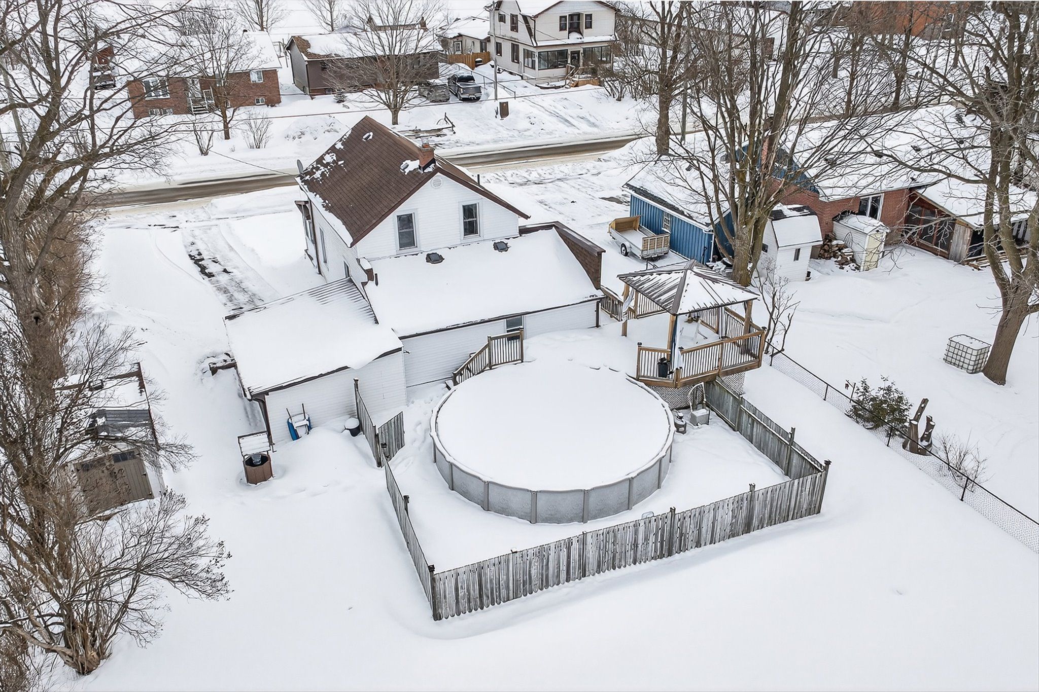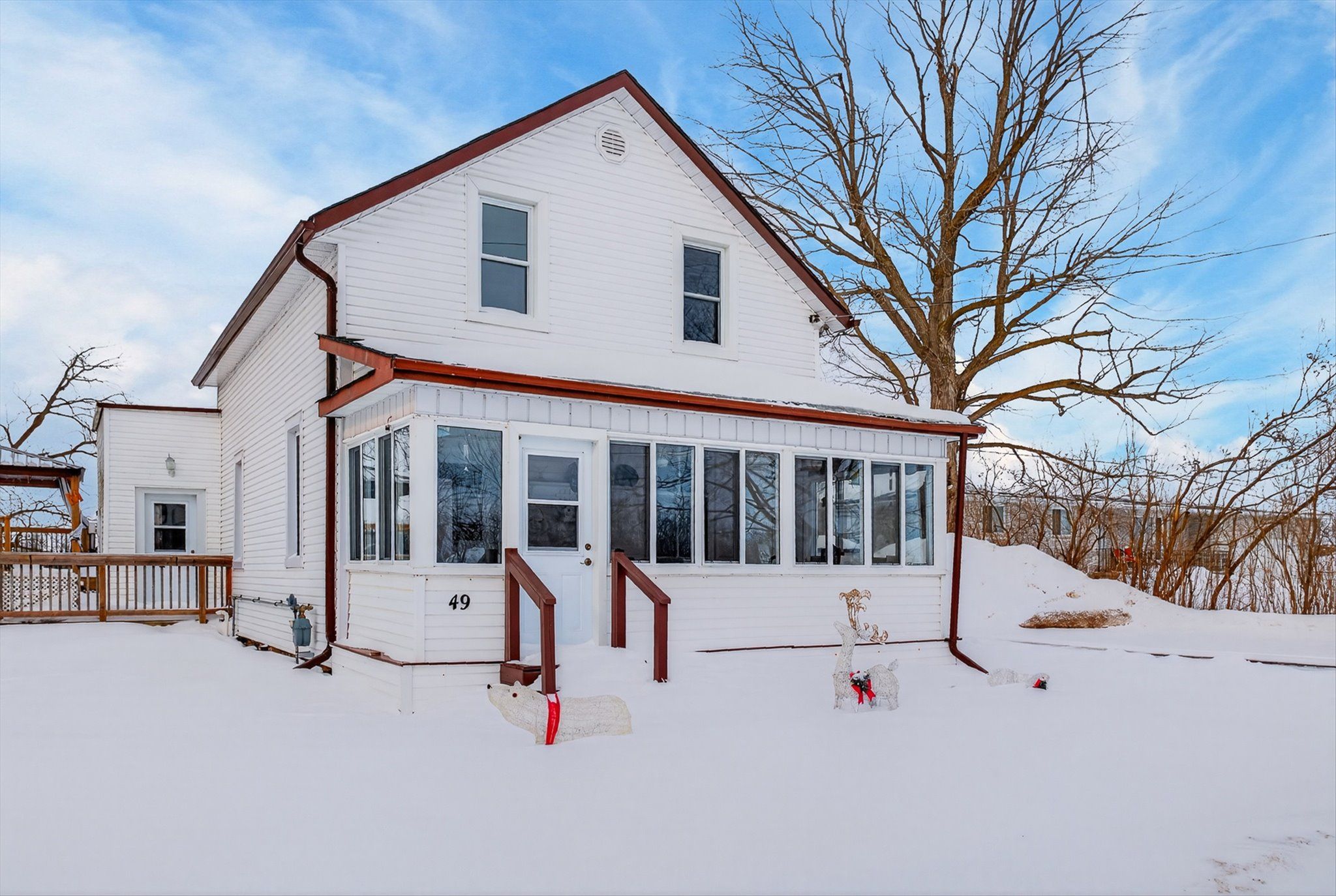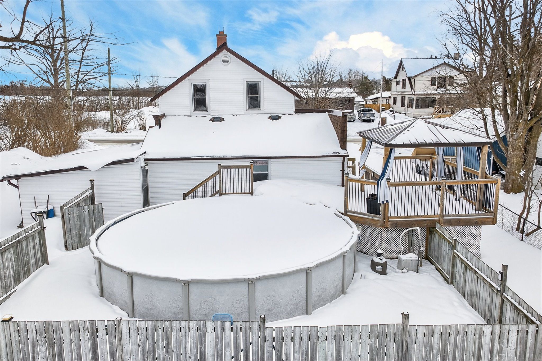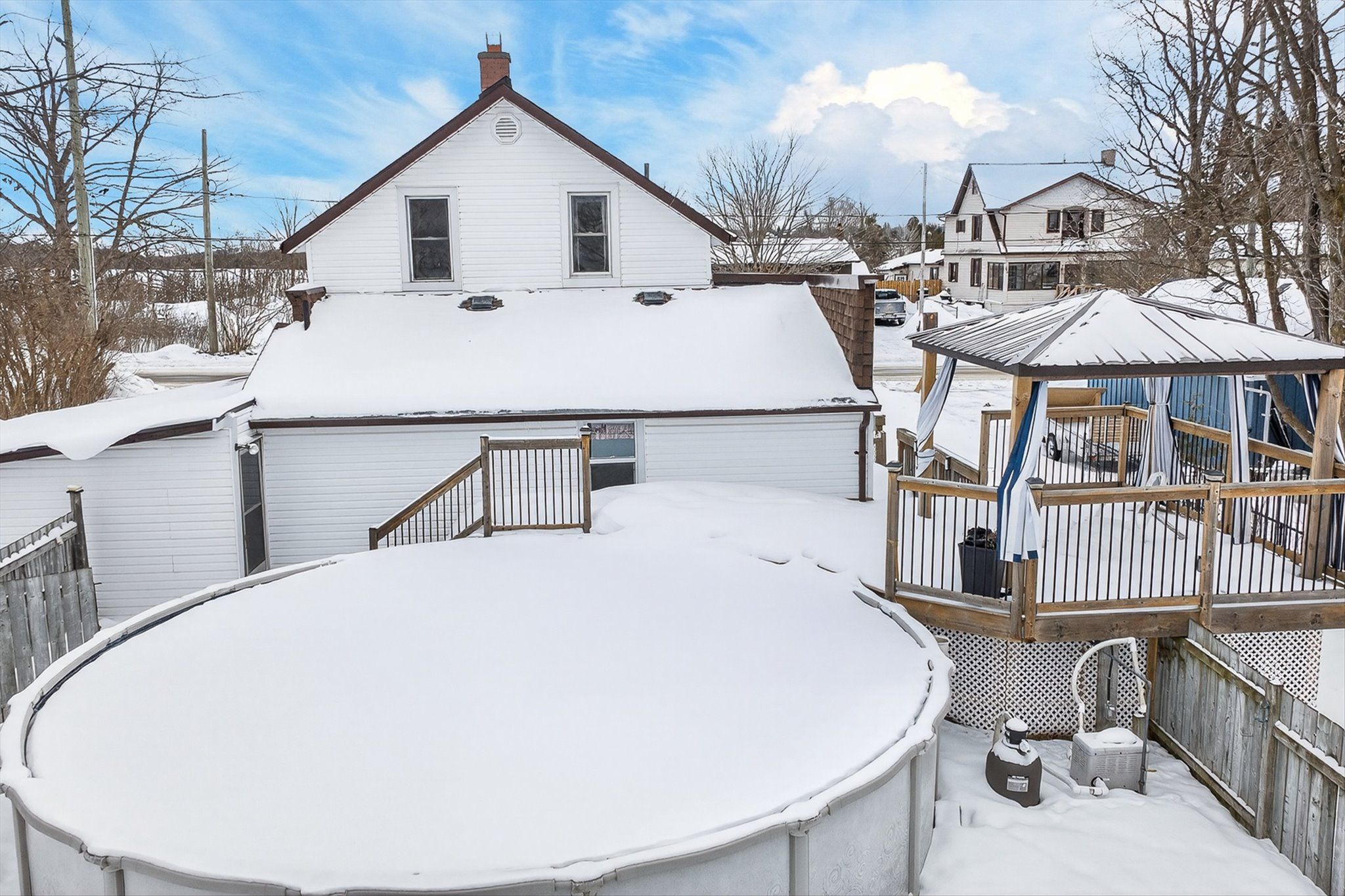 This extremely well cared for 1.5 storey home clearly reflects pride of ownership throughout. The main floor features a mudroom, a 3 piece bathroom, convenient laundry closet, and a cozy family room complete with a natural gas fireplace and door to the deck with gazebo and private backyard. Enjoy summer days in the above ground heated pool, perfect for entertaining family and friends. Just off the living room is a recently renovated kitchen and dining area combination offering abundant cabinetry, quartz countertops, and stainless steel appliances. The home also boasts a generous sized living room and a comfortable sunroom at the front of the house, providing bright and inviting living spaces. Upstairs, you will find 3 good sized bedrooms, a storage room, and an updated 3 piece bathroom. Additional features include natural gas forced air heating, water softener, municipal sewers, carport, and paved driveway. Ideally located down the road from the amenities of Omemee, including restaurants, café, grocery store, convenience stores, gym, pharmacy, LCBO, post office, library, churches, Legion, public school, and other shops. Enjoy Omemee Beach Park, currently undergoing revitalization, and take advantage of the public boat launch just two minutes away for access to miles of boating along the Trent-Severn Waterway. A move in ready home in a welcoming community, offering comfort, updates, and lifestyle all in one. Book your private viewing today and see for yourself why this property stands out.