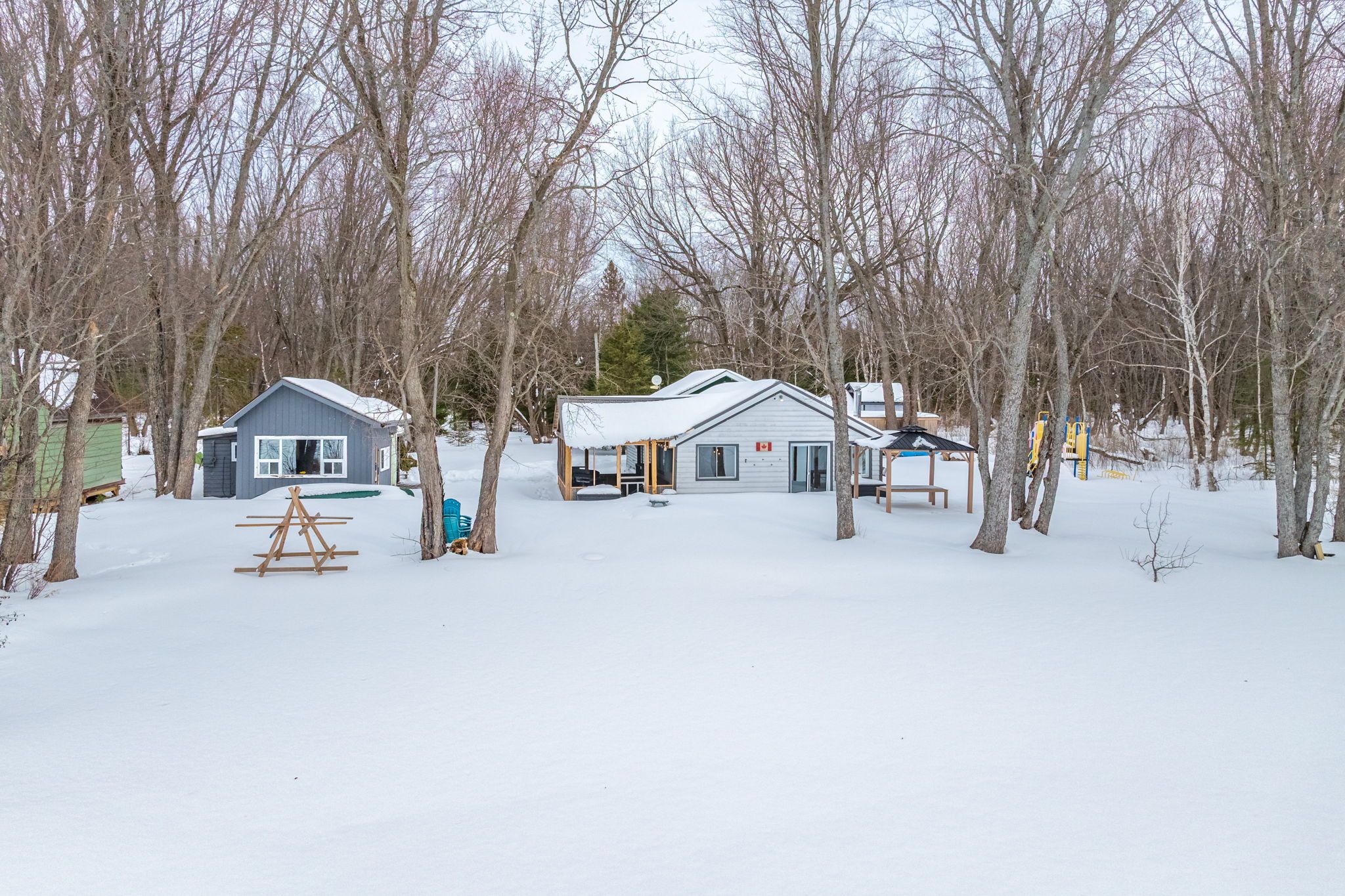 Affordably priced, waterfront family compound located on the north shores of Pickerel Lake near the towns of Burk's Falls and Sundridge. Main cottage with 1,017 sq ft and 3 bedrooms, guest cabin (500+ sq ft) and numerous outbuildings for various purposes. Property and buildings exude pride and care by the owners. Attractive pine plank flooring in both cottages.143 feet of sandy shoreline width, southwest exposure, level treed lot with 4-season, privatey maintained road. Enjoy a huge network of trails in the area for ATVing, hiking, snowshoeing, snowmobiling, etc. Great fishing! The owners and their children skated every winter right off their shoreline. Many upgrades, renovations, updates - e.g. driveway, bunkie roof, beach upgrades, newer lean-to, etc. Drilled well. Septic system. Recently updated site survey plan and property stakes.