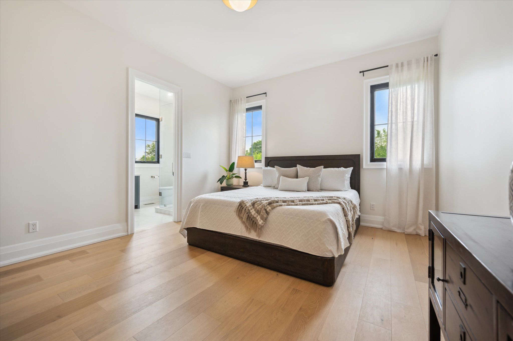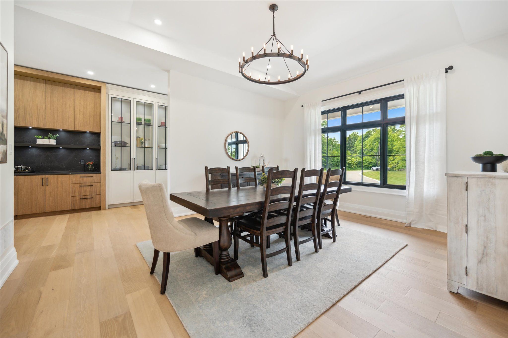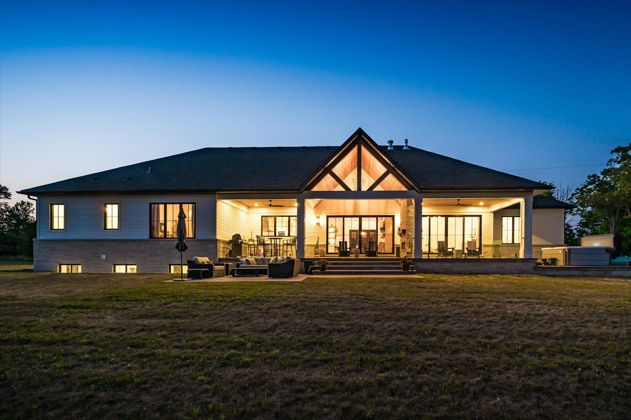 Custom-Built Luxury Bungalow on 2.4 Private Acres with Escarpment Views. Welcome to this one-of-a-kind custom-built bungalow offering 3,400 sq. ft. of refined main floor living space, perfectly nestled on 2.4 acres of serene countryside. With panoramic views of the escarpment and set well back from the road, this residence offers exceptional privacy while being just 20 minutes from the 401. Designed with luxury and functionality in mind, the home boasts soaring ceilings and oversized windows, creating an expansive, airy ambiance throughout allowing the natural landscape in and flooding the home with light. The main level features a seamless open-concept layout anchored by a great room and primary bedroom with oversized sliding doors opening to an extended outdoor living space with a two sided fire place, hot tub, and an abundance of entertaining space. The heart of the home is a chefs dream kitchen outfitted with top-tier Wolf, SubZero, and Cove appliances, complemented by a stylish servery just off the formal dining room. Retreat to the spacious primary suite, a true sanctuary offering an oversized spa-inspired ensuite complete with heated floors, a large walk-in shower, water closet, luxurious soaker tub, dual sinks with an extended vanity, and a generously sized walk-in closet. Two additional bedrooms on the main floor each enjoy their own private ensuites. Downstairs, the wow factor continues. The 10-foot ceilings and expansive windows make the finished basement feel anything but below grade. Designed for versatility, the lower level includes a full gym, sauna, and a private entry from the oversized 3-car garage making it perfect for an in-law suite. This separate living space features a bedroom, full bath, and kitchenette with a fridge, sink, and microwave. Every detail has been thoughtfully considered. Truly, this is a rare opportunity to own a stunning estate home where luxury, privacy, and convenience converge.