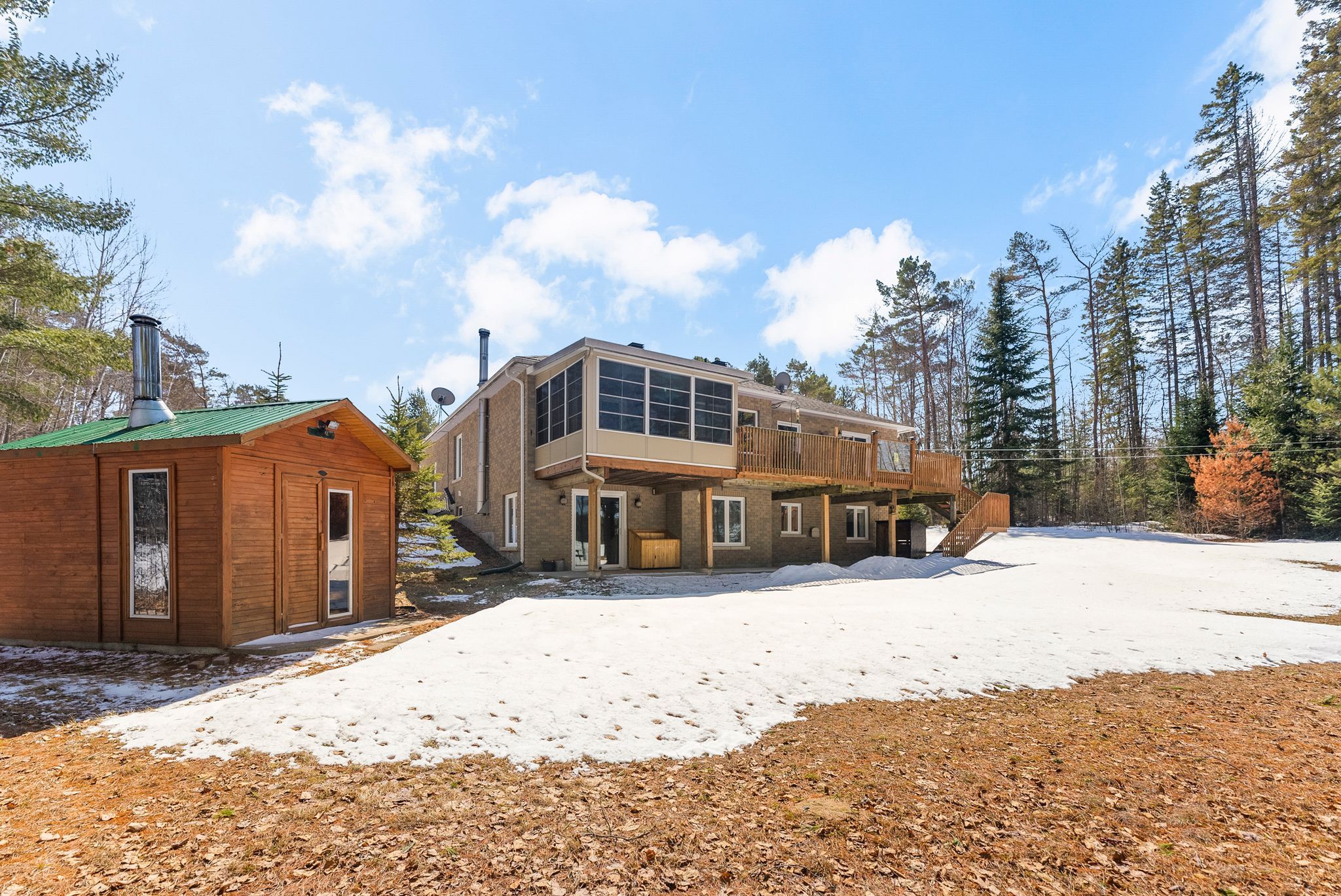 Welcome to your own private paradise - a beautifully maintained 9.75-acre waterfront estate offering over 450 feet of pristine shoreline, mature forested trails, and exceptional peace and privacy. Mudturtle Lake is a hidden gem located 5 minutes outside of Petawawa. This private lake is shared with only five other property owners and has no public access. Spring fed lake excellent for boating, swimming, and fishing (bass/pike). Inside, this spacious 3-bedroom, 3-bathroom home is designed to capture natural light and scenic water views throughout. The main floor welcomes you with a wide entryway leading into a bright front living room that flows effortlessly into the open-concept dining and kitchen area. From here, sliding glass doors open to a raised deck - perfect for morning coffee or sunset dining overlooking the water. Down the main hall, you'll find a full bathroom, a generous laundry/mud room with inside access to the attached double garage, and a large guest bedroom. The primary suite is a true retreat with its own sun-filled sitting room with great water views, a full ensuite bath, and a serene sunroom that faces the water - an ideal spot for reading or simply taking in the tranquil view. The lower level offers a sprawling rec room with a cozy wood stove, an office space, a third full bathroom, a large bedroom, and extensive utility and storage areas. A walkout leads to a covered patio where you can enjoy the peaceful waterfront setting year-round. Outdoors, the property continues to impress with a wood-heated sauna by the water, picturesque walking trails throughout the forested acreage, and a detached garage with a back workshop featuring 10-foot ceilings - perfect for hobbyists or extra storage. With its thoughtful layout, incredible privacy, and breathtaking waterfront views, this property offers the best of nature, comfort, and functionality - a true escape just waiting to be called home.