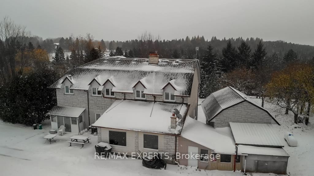 Set along sought-after 17th Sideroad in King Township, this exceptional 10-acre property offers the rare combination of peaceful country living and strong long-term upside. Surrounded by rolling countryside and mature trees, the setting provides privacy, scale, and flexibility in one of Schomberg's most desirable rural pockets.The 3,000+ sq. ft. home features two separate living areas, including a full three-bedroom upper-level apartment and three additional bedrooms on the main floor. The layout lends itself to multi-generational living, rental income, or future renovation and customization. A finished basement adds additional living space and storage. Out buildings include a barn, quonset structure, greenhouse, and multiple sheds - well suited for hobby farming, equestrian use, workshop space, or versatile storage.The upper-level apartment is currently tenanted, with flexibility on possession.Solid structure, prime acreage, and endless potential - enjoy as-is, generate income, renovate to modern standards, or reimagine the property into a custom country estate in the heart of Schomberg.