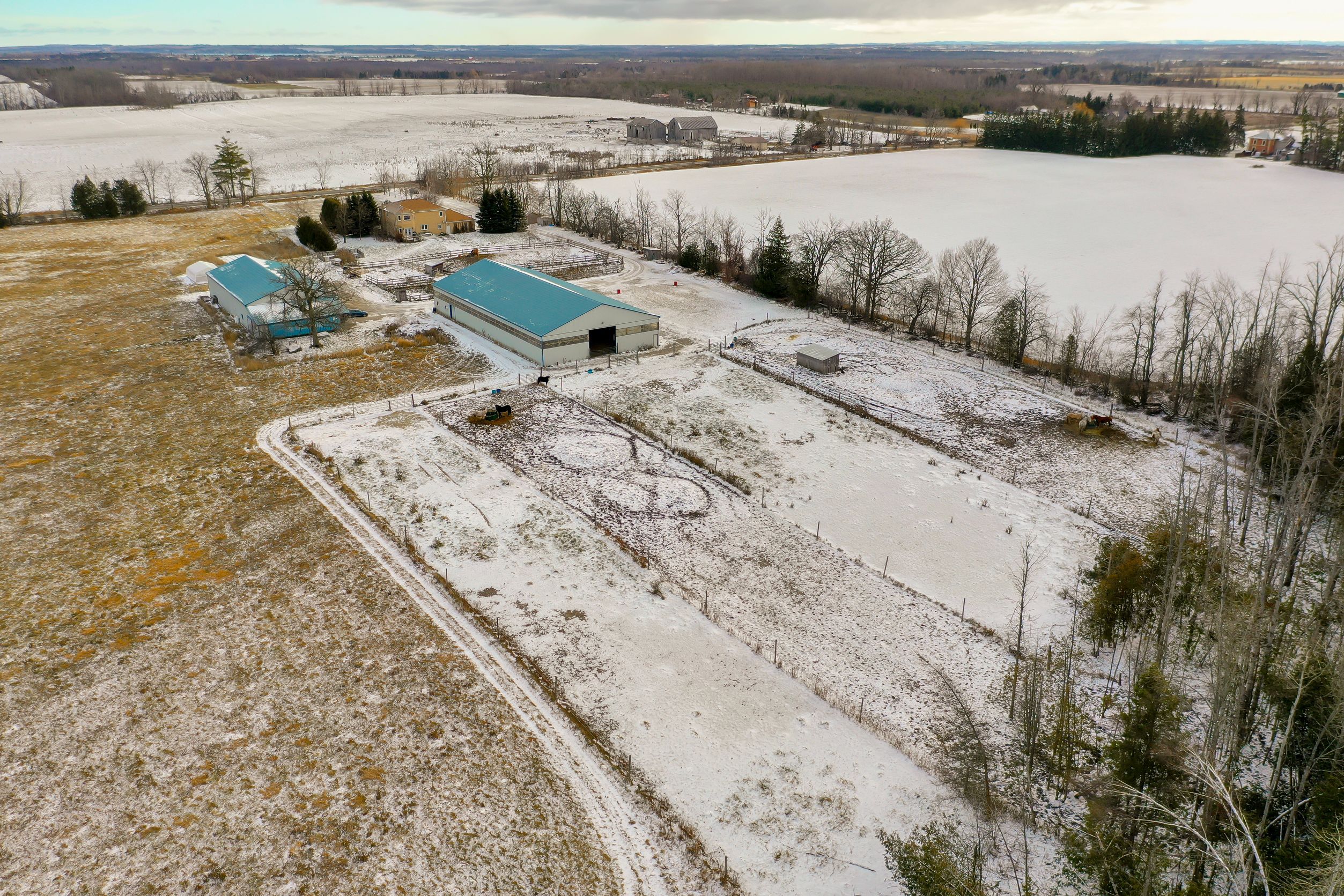 Nestled on 130+ breathtaking acres in the heart of the Kawarthas abutting Goose Lake and protected wetlands, 30 acres of which is cleared, planted with hay, this exceptional equestrian estate offers the ultimate blend of luxurious country living and horse facilities. The elegant custom residence spans over 3,000 sq. ft. and welcomes you with a grand foyer and sweeping staircase. Bright, spacious principal rooms include a formal dining room, a large country kitchen with walk-out decks overlooking paddocks and the arena, an elegant family room warmed by a wood-burning fireplace and attached 3 car garage. The private primary suite is a serene retreat, featuring panoramic views of the entire equestrian operation, two ample walk-in closets, and a luxurious 5-piece ensuite. The lower level adds a generous recreation room with wood stove, rough-in for a future 3-piece, a versatile bonus room and convenient wine cellar/cold storage. Designed for the serious equestrian, the property boasts a state-of-the-art indoor riding arena with viewing lounge, an impeccable 8-stall barn, also a heated and insulated workshop/driveshed for hay and equipment storage with 3-piece bath. Both outbuildings have been thoughtfully constructed to accommodate future solar installation and off-grid potential. Miles of private trails wind through mature forests, perfect for riding, spending time in the cabin with loft, or simply escaping into nature. Complete with reassuring pre-list home inspection.