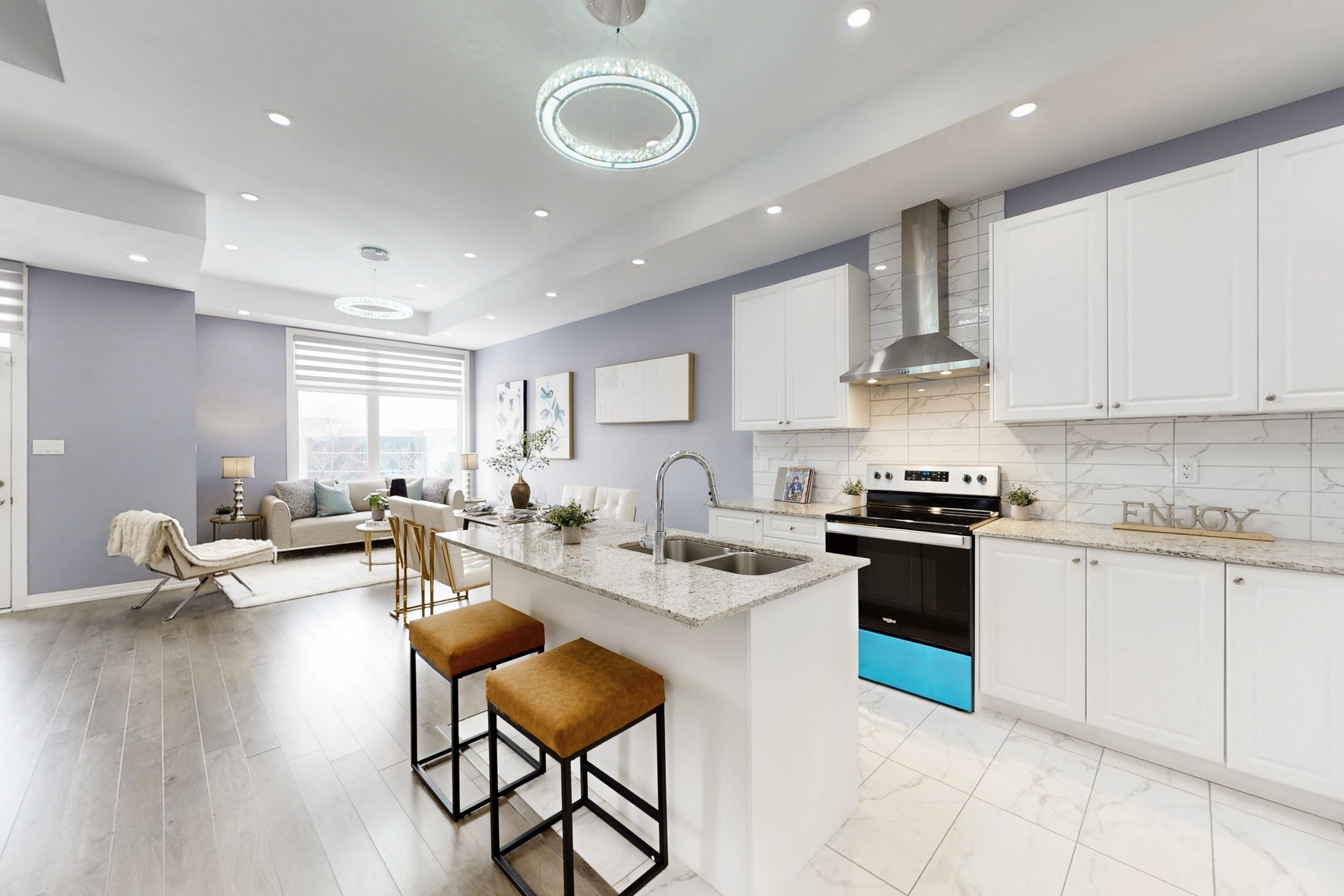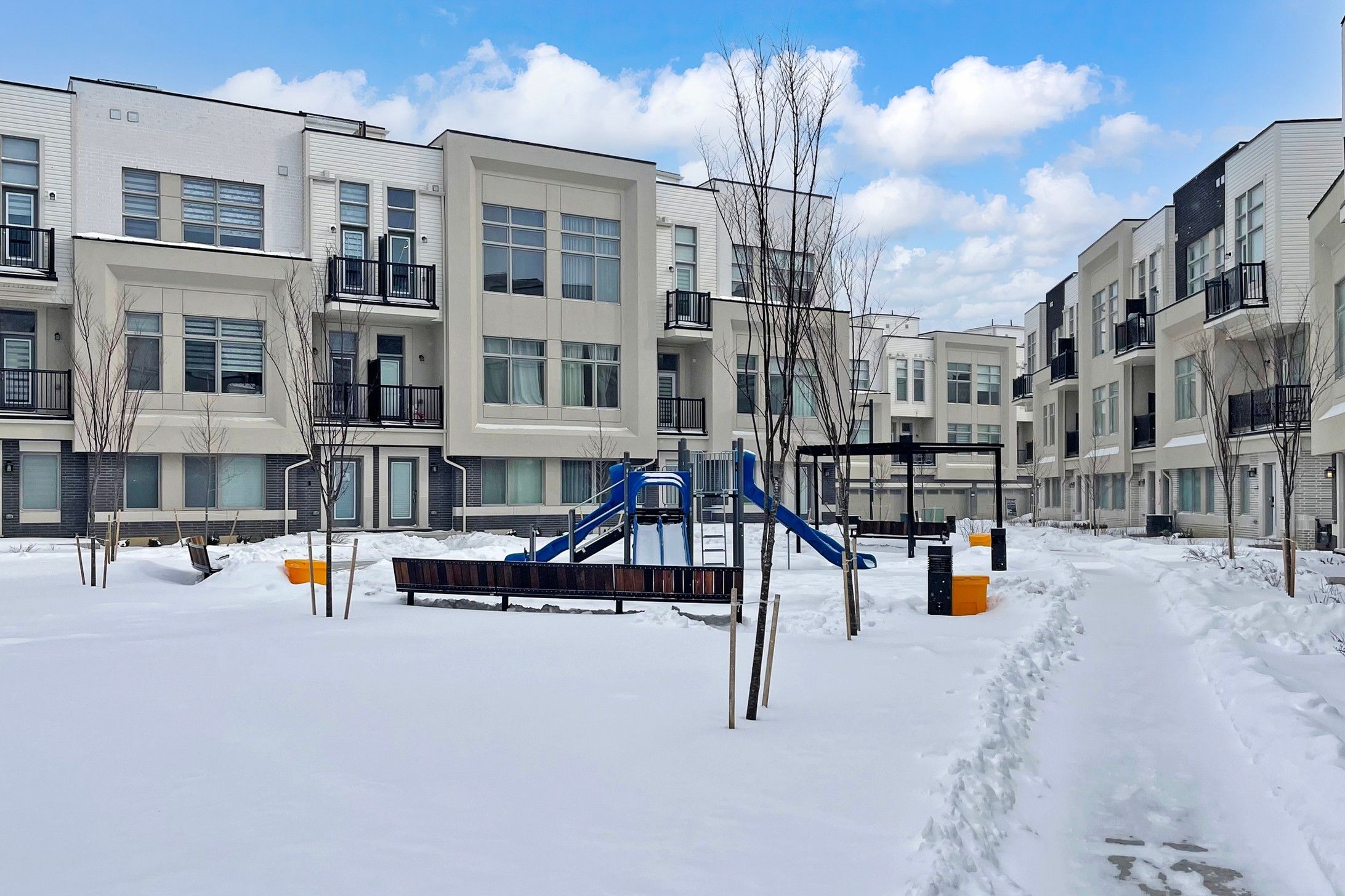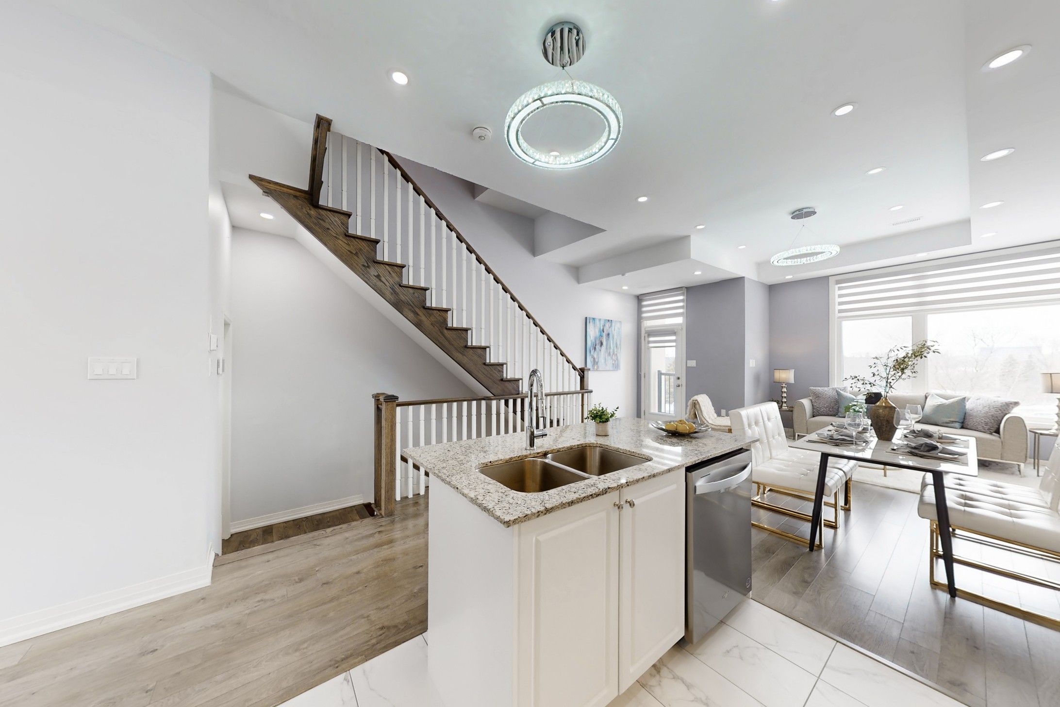 Stunning Freehold Townhouse in a Prime Location! This modern 4-bedroom, 4-bathroom home is packed with $50K+ upgrades and thoughtful details!<><> Built-in 2-car garage, Modern gourmet kitchen with a granite countertop and center island, and an open-concept layout with soaring 10' ceilings on the 2nd & 3rd floors. Luxurious primary suite with a spacious walk-in closet and a s 4-piece ensuite: Double Sinks & Frameless glass shower door . Bedrooms with large windows for beautiful natural lighting. Laundry on 2nd floor. The versatile ground-floor bedroom with a full 3-piece ensuite is perfect for a private office or guest suite. Massive rooftop terrace, perfect for BBQs and entertaining family and friends! The full basement is ready to customize into a gym, home theater, or family room. Located in a top-rated school zone and just steps to King Square Shopping Centre, supermarkets, parks, and all amenities. Quick access to Hwy 404 and more! Additional upgrades: Front load cloth washer & dryer, Chic Front door and Light fixtures, Furnace (Owned), Frameless glass shower doors. Don't miss this one - it's move-in ready and built for both luxury and convenience!