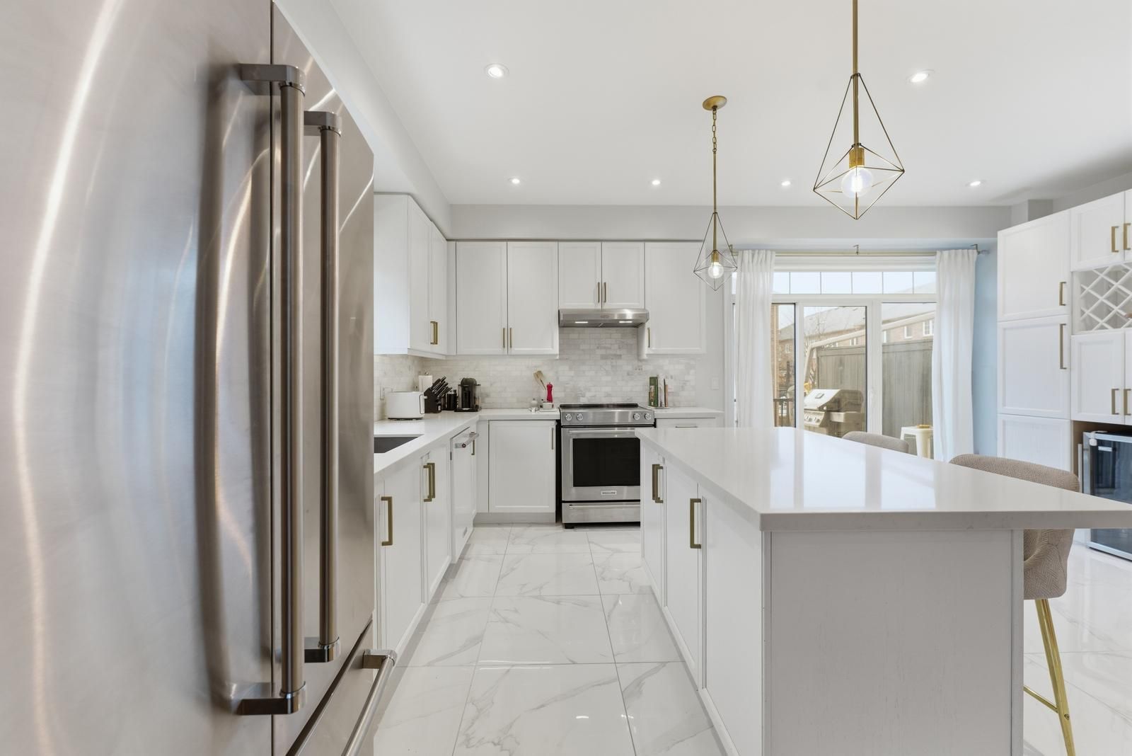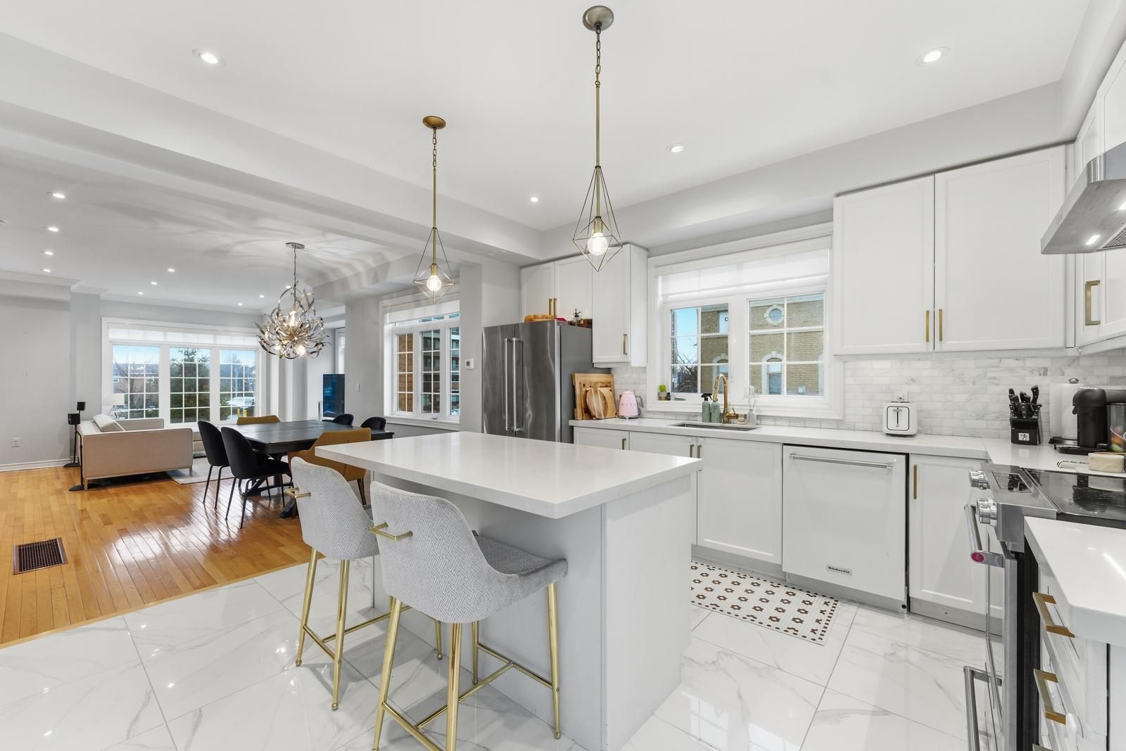 Stunning & Spectacular 4 Bed, 3 Bath Executive End Unit Home Nestled In Highly Desirable Pocket Of East Woodbridge! Parisian-Inspired Cstm Sleek Kitchen Cabinets W Cstm Nero-Cascata Countertops & Custom B/splash, Coupled W High End Stainless Appliances, Large Centre Island & Plenty Of Space For Prep. & Entertaining! High End Plumbing Fixtures W Pot Lights T/out, Strip Hardwood Plank & Laminate Flrs, Open Concept Layout & Walk-Out To Spacious & Private Sun-Deck. Ascending To The Upper Level Is A Large Primary Bed W/A Newly Renovated Zen Inspired 4 Pc Ensuite w/chic floating vanity, deep soaker tub, and double rain shower head, W/In Closet & Plenty Of Nat Light. Elegant Class & Modern Features & Finishes At Every Corner In Its Utmost Minutia. Addtl 2 Good Sizes Bedrms W Closets & Lots Of Natural Light. Great Above Ground 1st Floor W Access From Private Double Car Garage, Mudroom Next To Renovated Transitionally Inspired Laundry At Main For Max Functionality, & Another Good Sized Bedroom W Plenty Of Storage. Optimum Location In Family Oriented Location Close To Transit, Good Schools, Day Care, Parks, Shopping, Amenities, Major Hwys 400/407/27, Subway & Vaughan Hospital. Close Prox To Soccer & Baseball Fields & Woodbridge Com Cntre. A Portion Of The Property Can Potentially Be Utilized For Bus/Comm (Live/Work) Use Purposes; W Frontage On Hwy 7 & Sep Entrance. (Buyer To Independently Verify The Above In All Aspects, & Any Business Use Variance Required Is To Be Verified By The Buyer, At City Of Vaughan).