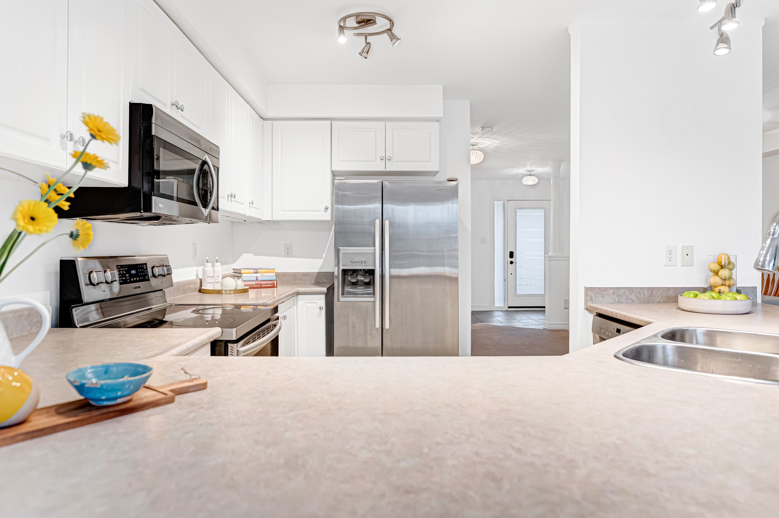Welcome To This Well-Maintained Freehold Townhouse Offering A Bright And Spacious Open-Concept Layout. A Rare Find At The End Of A Quiet Private Court, Backing Directly Onto A Park, This Home Sits On A Deep Lot And Offers Exceptional Privacy Rarely Found In Townhomes.The Main Floor Showcases A Functional Kitchen With Breakfast Bar Seamlessly Flowing Into The Family And Dining Areas - Ideal For Entertaining Or Family Gatherings. A Two-Level Deck Overlooks Serene Green Space, Creating A Private Backyard Retreat. Upstairs, You'll Find Three Generously Sized Bedrooms, Including A Spacious Primary Suite Featuring A Sitting Area, Walk-In Closet, And 4-Piece Ensuite Bath.The Fully Finished Basement Adds Exceptional Versatility With An Additional Bedroom And Ample Space For A Home Office, Recreation Room, Gym, Or Children's Play Area. Entire House Fully Painted And Move-In Ready, Convenient Interior Access To The Garage. Located Just Minutes To Hwy 404, Costco, Transit, Southlake Hospital, Short Walk To Main St Shops/Restaurants, Pickering College, Parks And All Essential Amenities.