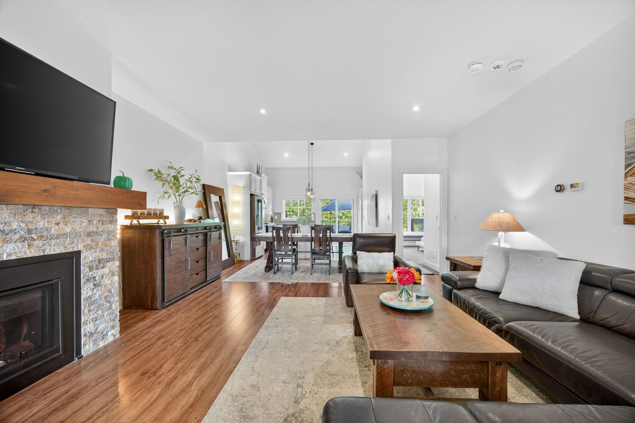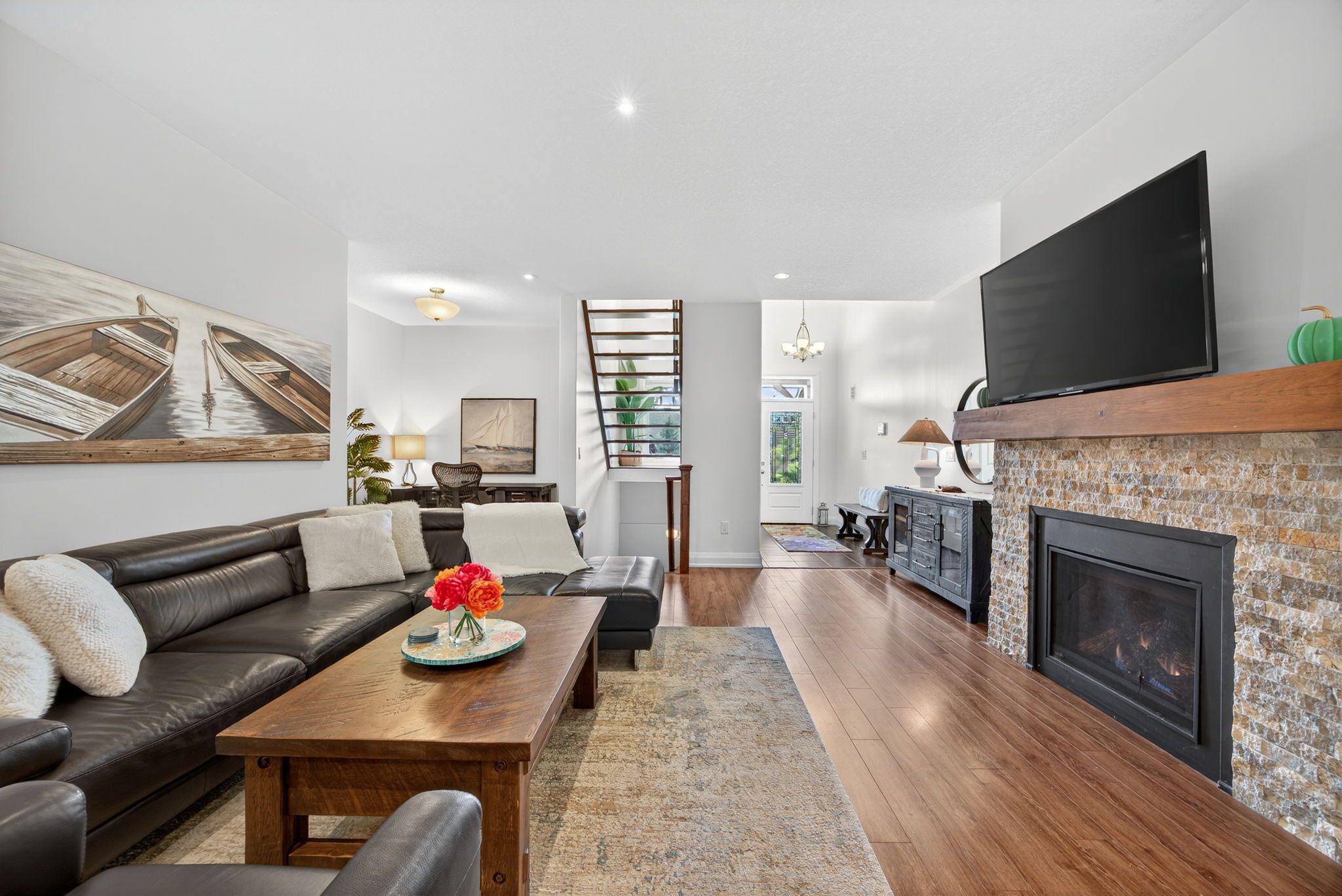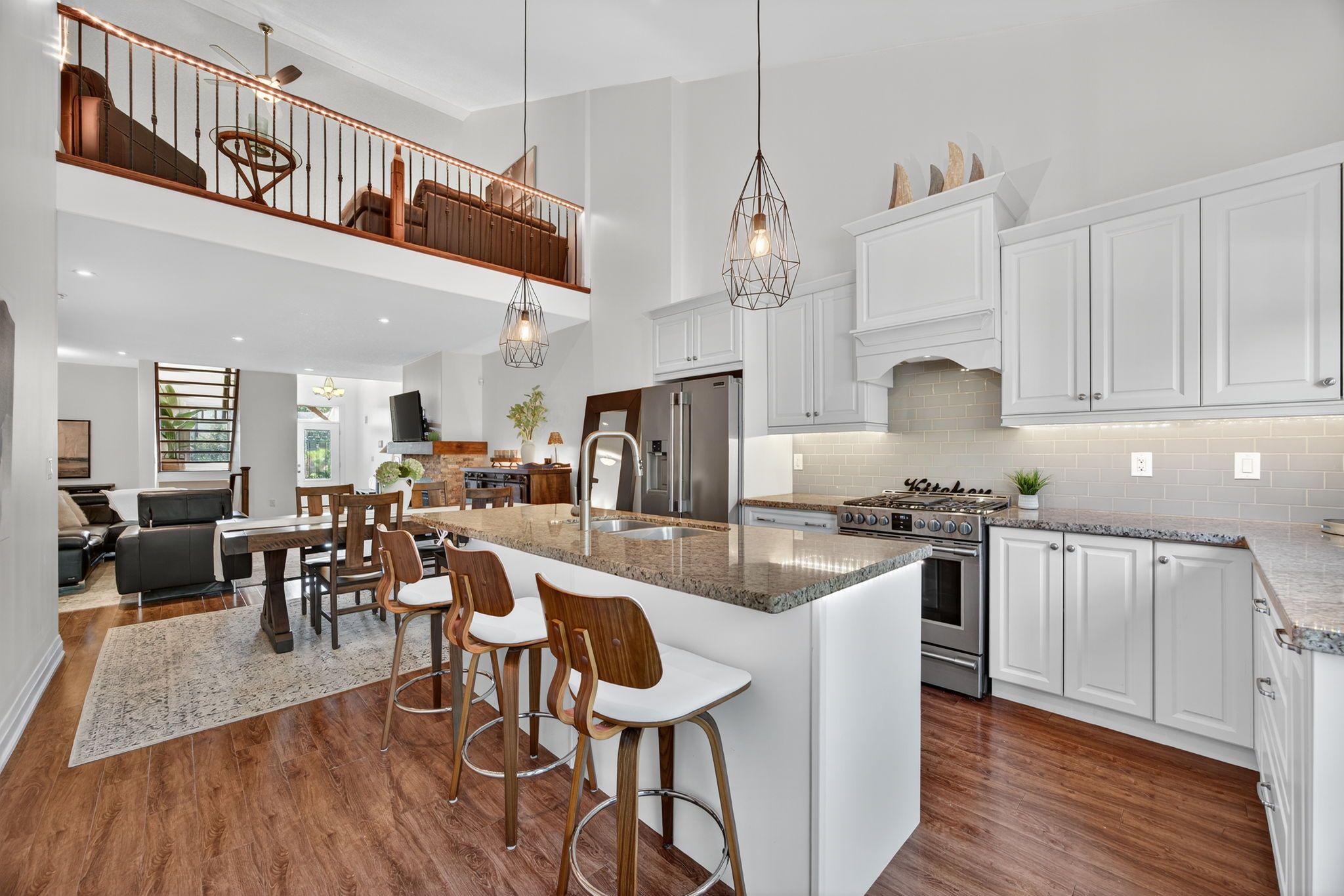 69 Landscape Drive is a charming 4-bedroom, 4-bathroom home offering nearly 3,000 sq.ft of rustic elegance across three levels. The main level features cathedral ceilings, a cozy gas fireplace, chef's kitchen with granite counters and stainless steel appliances (replaced in 2023), powder room, upgraded laundry room with quartz countertops. The main floor Primary suite offers a 5-piece en-suite with a soaker tub and walk in shower. Upstairs, you'll find soaring ceilings, a spacious loft area, private guest suite and 4 piece bath. The finished basement includes a massive recreation room, office, two additional bedrooms and a lavish 3 piece bathroom. Outside, the tree-lined backyard is a private oasis featuring a cedar deck and gas BBQ hookup. Plenty of yard space for your pets/children to roam. Oversized garage and driveway with sufficient room for a boat/snowmobile, etc. Outstanding curb appeal with mature gardens and landscaping. Located minutes from Horseshoe Valley Ski Resort, Vetta Spa, and Hwy 400 - perfect as a year-round home or a seasonal retreat. Enjoy summer and winter activities, stargazing and sunsets from your stylish haven.