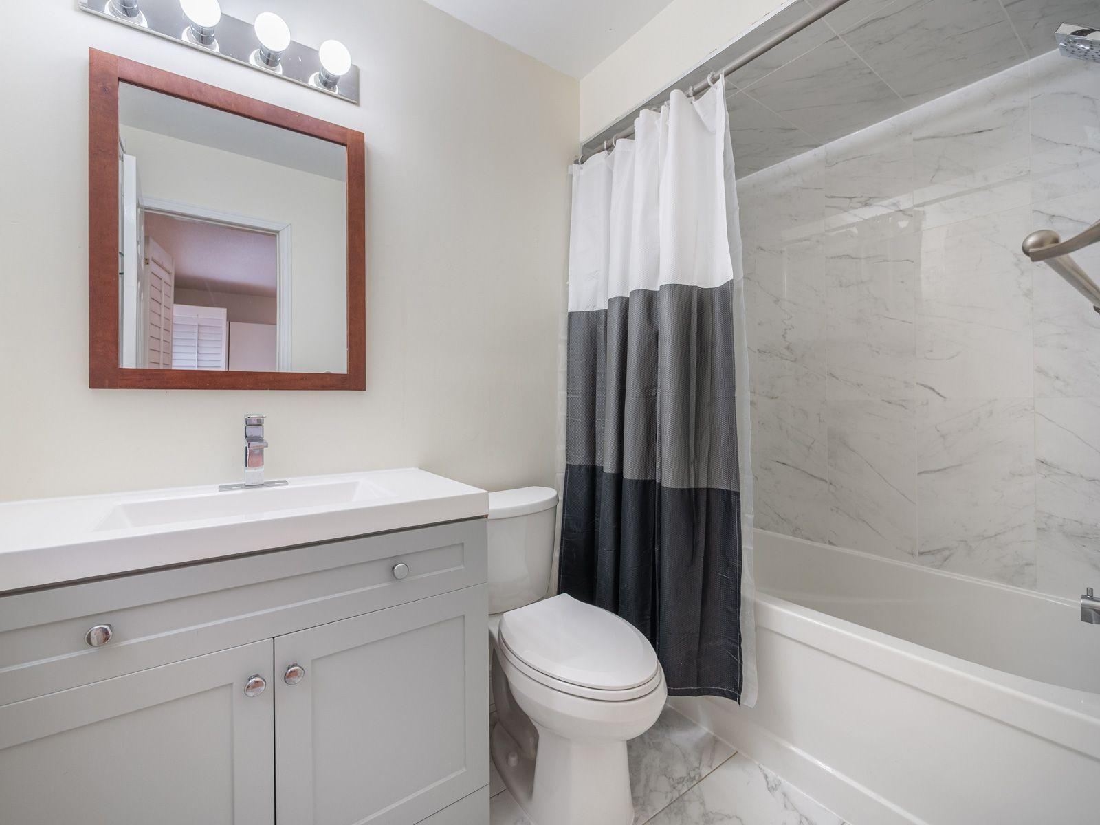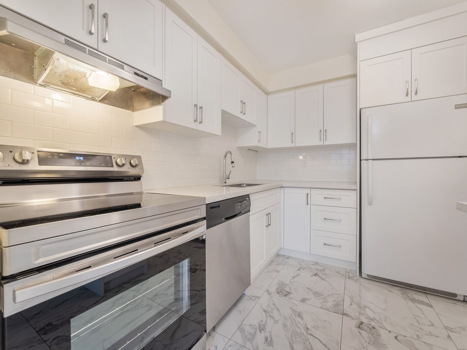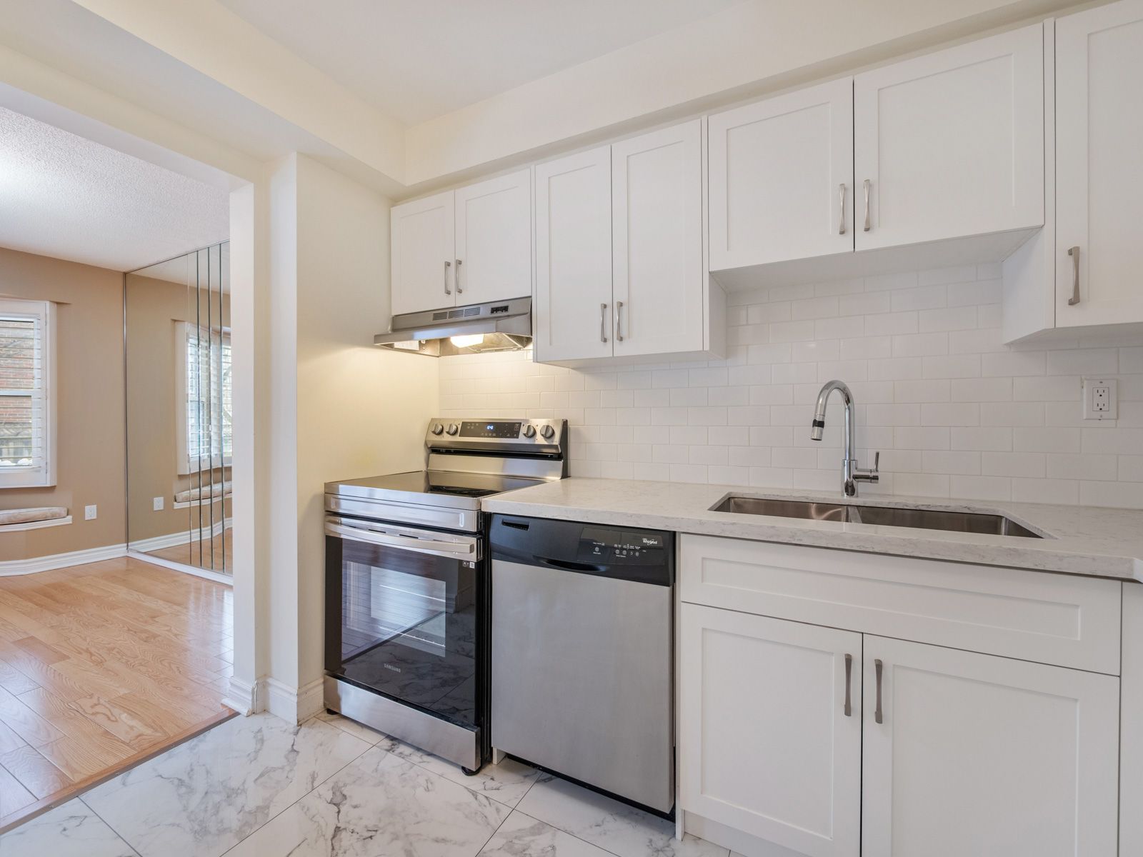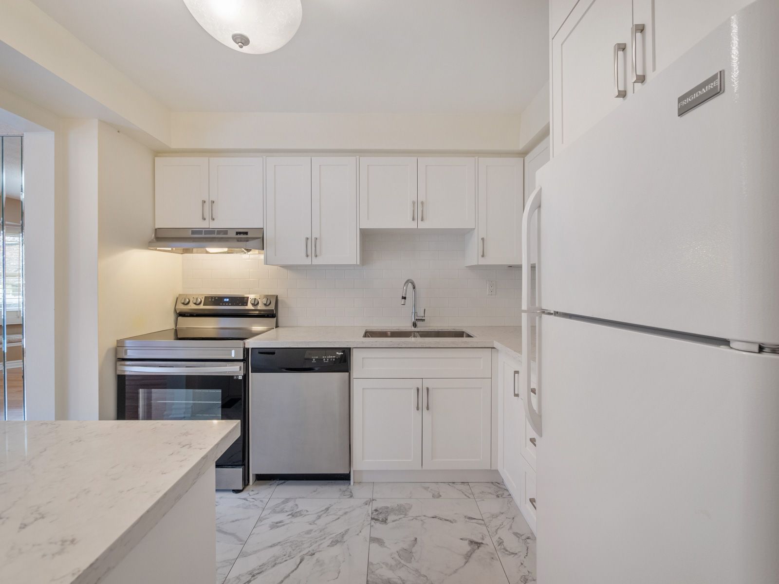 Bright, stylish, and move-in ready, this beautifully renovated condo townhouse at 385 The East Mall #60 offers an inviting layout ideal for professionals, small families, or anyone seeking a well-connected, low-maintenance lifestyle. Step inside to a sun-filled main floor featuring an open-concept living and dining area with hardwood flooring, perfect for everyday living or entertaining, seamlessly flowing into a crisp, modern kitchen that has been tastefully renovated with granite countertops, a breakfast bar, porcelain flooring, ample cabinetry, and upgraded stainless steel appliances (except the fridge), including a newer Samsung smart range. Enjoy effortless indoor-outdoor living with a walk-out to the deck and fully fenced yard, ideal for morning coffee, summer barbecues, or quiet evenings at home. Upstairs, two generous bedrooms each offer walk-in closets and private, renovated ensuite bathrooms with modern finishes; the primary suite serves as a serene retreat, while the second bedroom is enhanced by a charming Juliette balcony that fills the space with natural light. The finished basement adds valuable living space with a renovated recreation room and upgraded laundry area with sink, complementing the home's carpet-free interior and thoughtful updates throughout the kitchen, bathrooms, and all principal rooms. Also close to Highway 427, public transit, and downtown, this home offers exceptional convenience with quick access to parks, schools, libraries, places of worship, shops, dining, and everyday amenities. Meticulously maintained and thoughtfully upgraded, this townhome truly has it all-style, comfort, and location-and you'll fall in love the moment you step inside; it's even better in person than in photos. **Listing contains virtually staged photos**