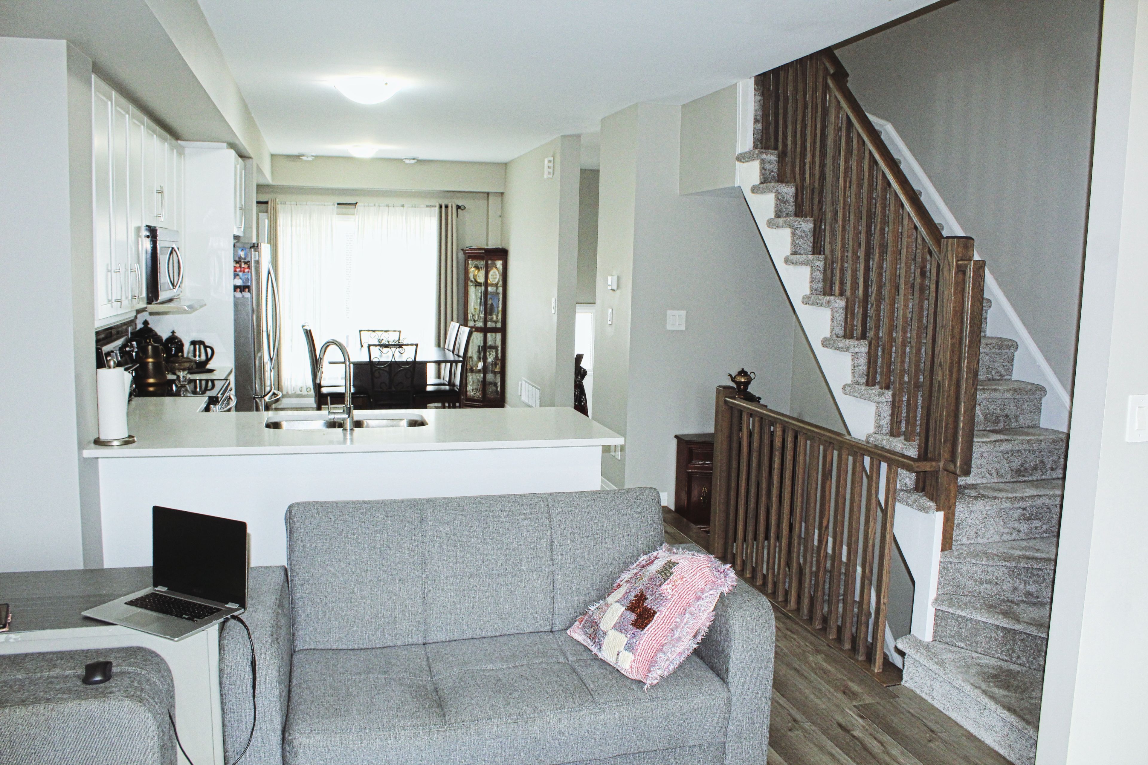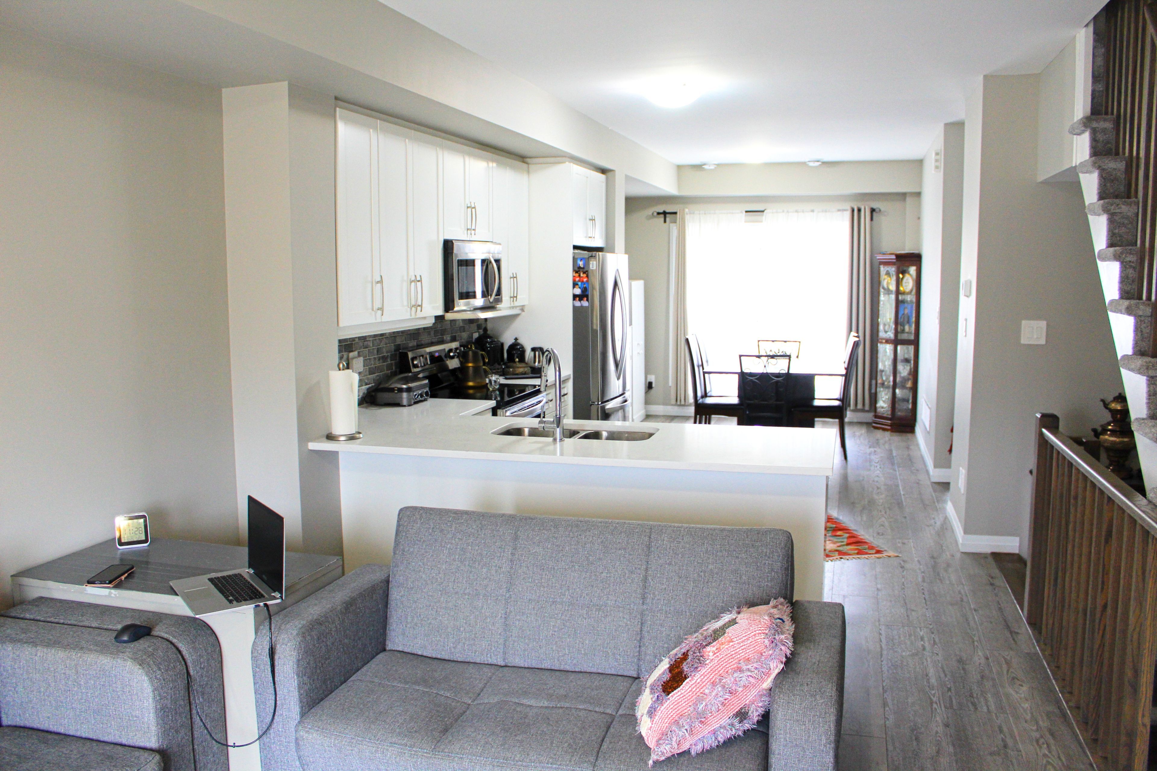 This Beautiful 3 Story Townhome With Various Luxurious Upgrades That Distinguishes Our Unit From Any Other Examples Are: Vinyl Flooring In The Second Level, Stunning Quartz Countertops, Kitchen Island, Kitchen Extended Cabinets, Backslash, Custom Glass Shower In The First Floor Bath And More. This 3 Bedrooms 3 Full Baths Has A Spacious Feeling Due To The Modern Open Concept And 9 Ft Ceilings In The Home. The Third Floor Primary Bedroom Features A Master Ensuite And Two Separate Closets For Him And Her. Air Conditioning Unit Is Already Installed. Super Location, Mins Drive To 403 Highway. Amazing Town Must See Inside Opportunity Don't Miss It.
