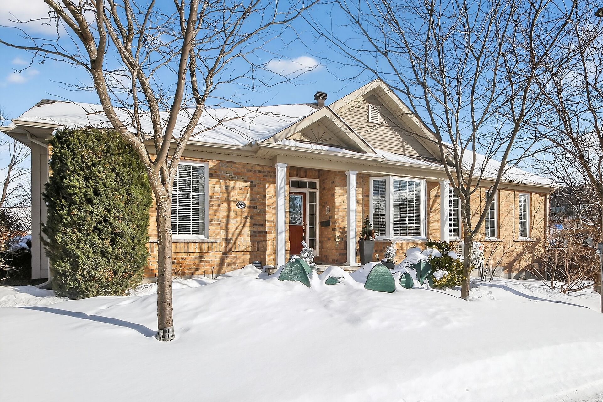 Lovely and sun filled end unit Bungalow in the popular 'Country Club Estate'. Bathed in southwest exposure, this home offers a comfortable & functional layout with a double attached garage, 2+1 bedrooms and 3 full bathrooms. The main level is highlighted by 9ft ceilings, expansive windows, arched doorways, crown mouldings, a charming fireplace and a mix of hardwood, tile & laminate flooring. Renovated in 2020, the bright & stylish eat-in kitchen is truly impressive, offering a quartz breakfast bar island, premium stainless steel appliances, custom full-height cabinetry plus a dining area with sleek hardwood floors and access to the deck. The primary bedroom includes both a walk-in closet & a 4pc-ensuite, while the convenient main-floor laundry adds everyday ease. The second bedroom is currently used as a sitting room/den. Downstairs, a spacious rec-room provides excellent additional living area with a warm gas fireplace and plenty of storage space. A third bedroom and 4-pc bathroom are perfect for guests or multi-generational living. Outdoors, enjoy an extensively designed, professionally landscaped backyard that's perfect for relaxing without the upkeep. This is a low maintenance home with new roof shingles in 2025 and eavestroughs in 2024, a new gas furnace in 2025, a renovated custom kitchen, updated flooring & insulation throughout. A wonderful & affordable opportunity to own a modern bungalow townhome in a well established neighbourhood. Common fees for this property are $180 per month. OPEN HOUSES SAT &SUN 2-4pm