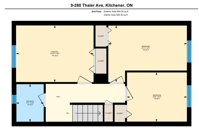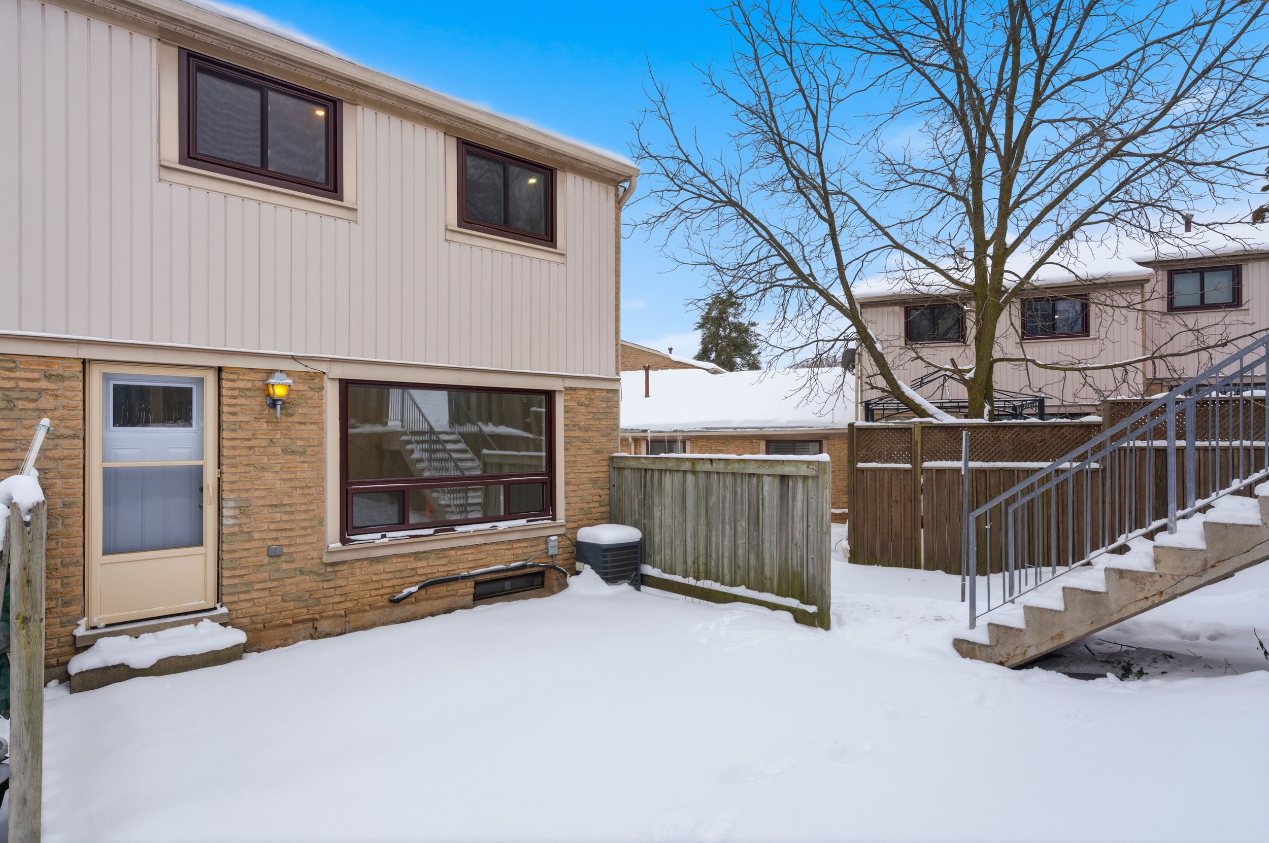 Welcome to 280 Thaler Avenue, Unit 9, Kitchener, nestled in the highly sought-after Chicopee neighbourhood, known for its family-friendly atmosphere, excellent schools and outstanding access to amenities. This beautifully renovated 3-bedroom, 2-bathroom townhome is truly move-in ready. As you step inside, you are immediately greeted by a bright, airy main level featuring new flooring, fresh neutral paint and stylish pot lights throughout. The spacious living room is a true highlight, showcasing a large new window (installed June 2025) that floods the space with natural light, making it ideal for relaxing and entertaining. The eat-in kitchen has been thoughtfully updated that features sleek white cabinetry, quartz countertops, modern pot lighting and stainless steel appliances with new dishwasher. Heading upstairs, you'll find 3 generously sized bedrooms, each completed with new flooring and pot lights, providing a cohesive and modern look throughout. The upper level is complemented by a stylish 4-piece bathroom. The finished basement adds exceptional value and versatility to this home. It offers a cozy recreation room, perfect for a home office, playroom, media room, or guest space, along with an additional bathroom. The laundry area is conveniently located here, with appliances replaced approximately three years ago and in excellent condition. Significant upgrades including: All windows replaced, with the living room window most recently installed in June 2025 and Central air conditioning replaced in 2018. The condo fee includes full usage of water, maintenance of all exterior doors, windows and roof. Located in a well-managed complex within a family-oriented community, this home is close to Top rated schools including a Catholic school, parks, shopping, public transit and offers easy access to major highways. Whether you're a first-time home buyer, downsizer or investor, this exceptional townhome checks all boxes. Don't miss your chance, Book your showing today!