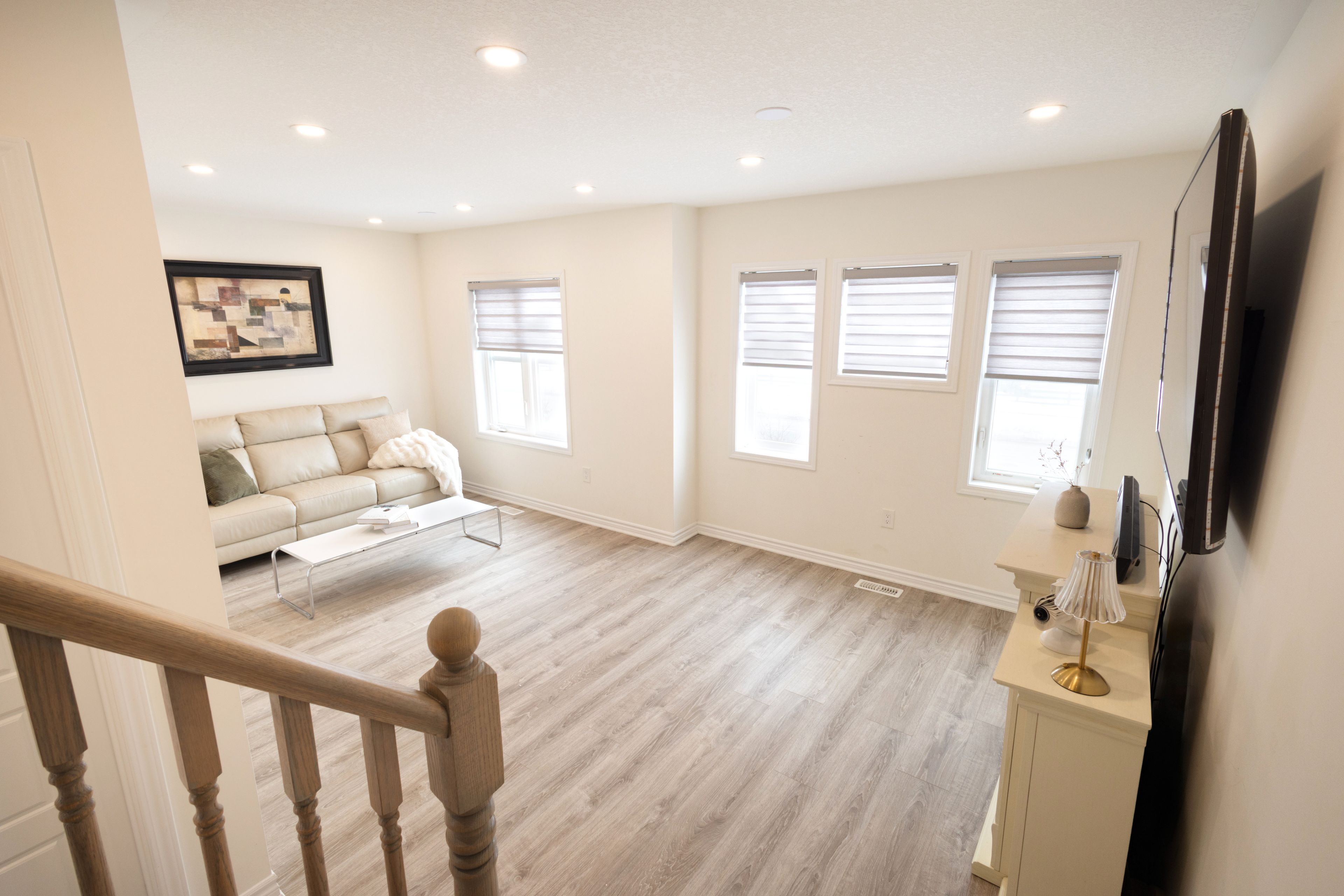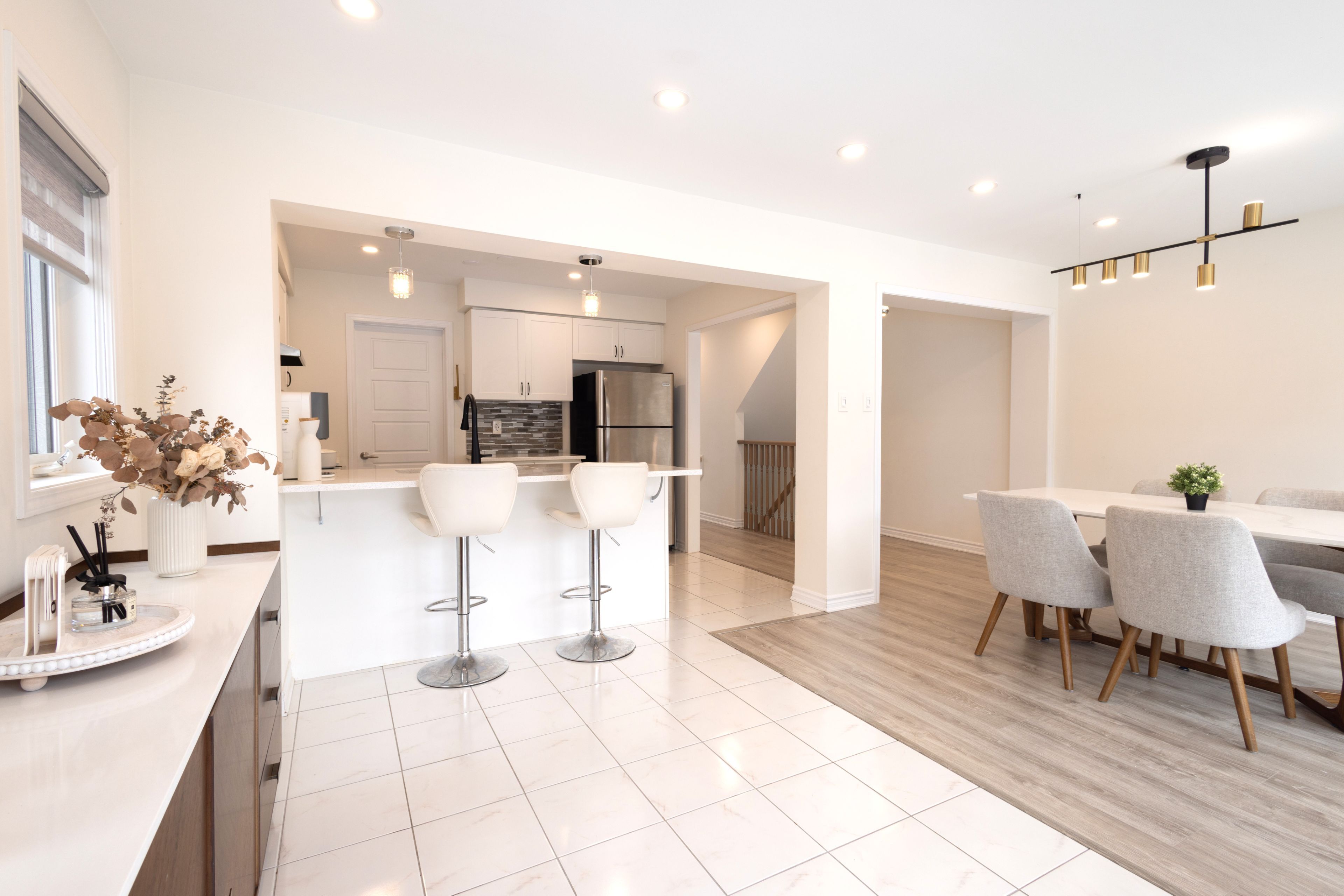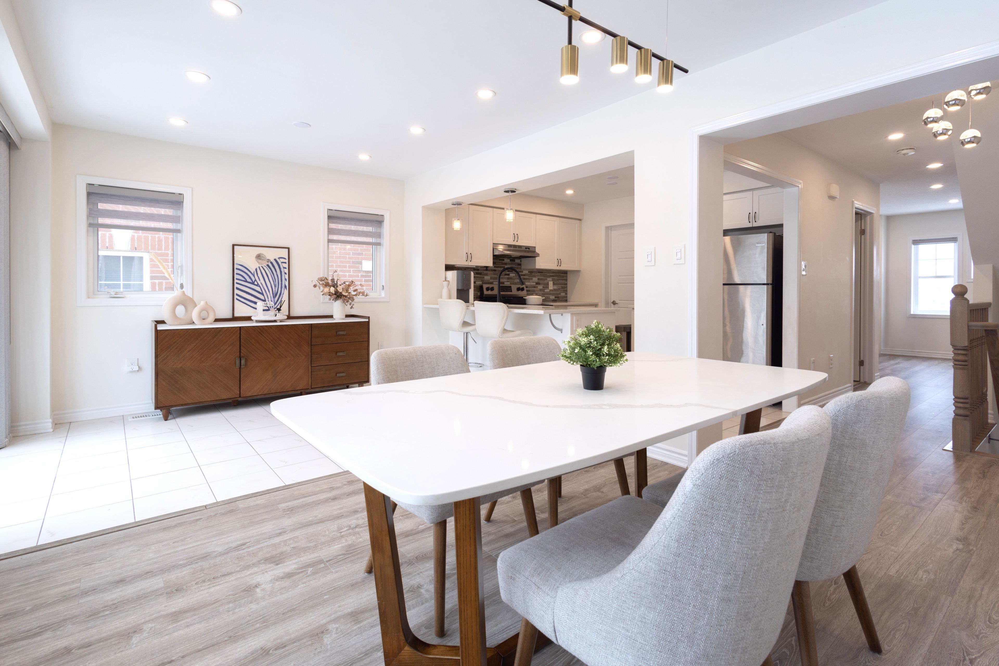 Welcome to this stunning end unit 3 storey Freehold Townhouse, perfectly positioned in a family-oriented community and overlooking beautiful green space. Enjoy peaceful terrace views and an abundance of natural light that enhances the home's bright and airy atmosphere. This spacious home features 3+1 bedrooms and 3 bathrooms, offering flexible living for growing families or professionals. The main floor boasts a generous living and dining area, a breakfast nook, and a gourmet kitchen complete with upgraded stainless steel appliances, breakfast bar, stylish backsplash, and a walk-in pantry - perfect for both everyday living and entertaining. An unfinished mechanical room on the ground level offers incredible potential to customize additional living space, a private office, gym, or storage - allowing you to add value and tailor the home to your lifestyle. Enjoy the convenience of easy access with minimal traffic congestion, while being close to the GO Station, major highways, shopping, Costco, parks, and more. A rare opportunity combining comfort, functionality, and location - this is one you won't want to miss. POTL Monthly Fee: 153.46