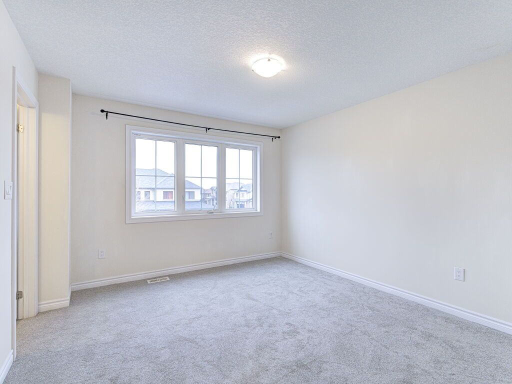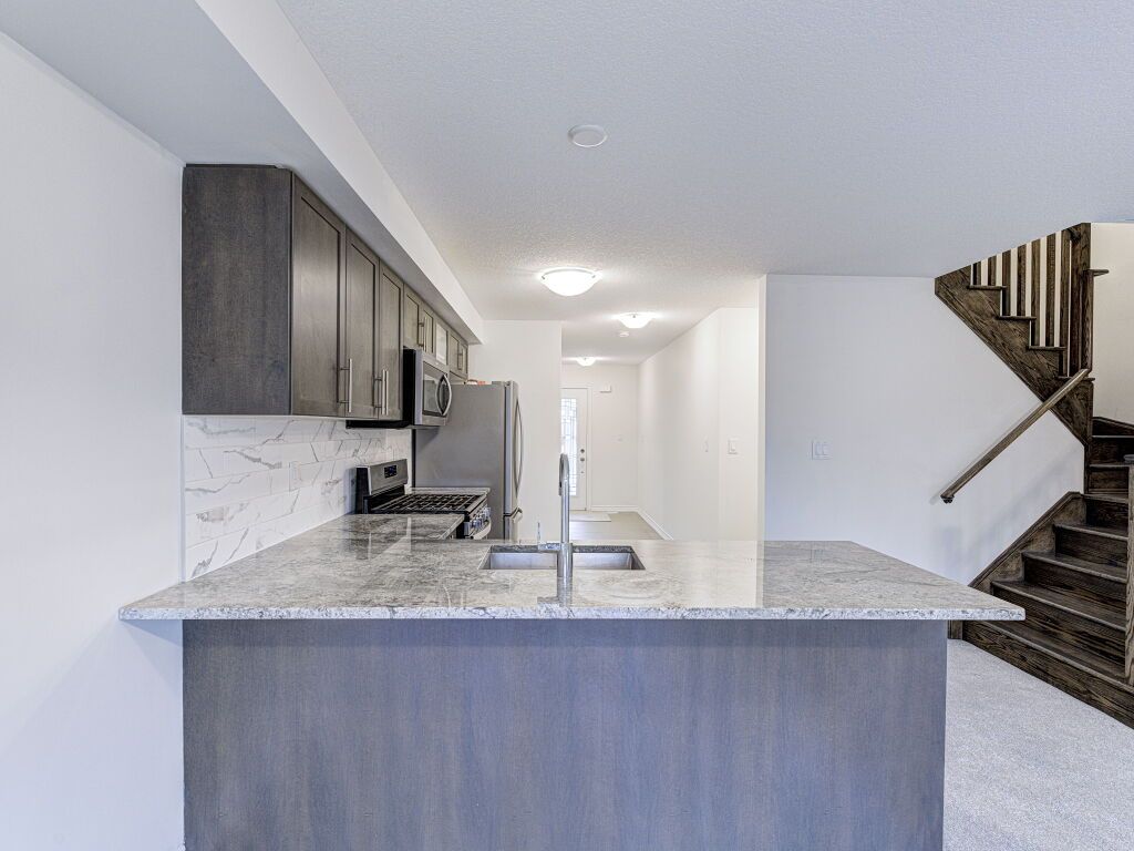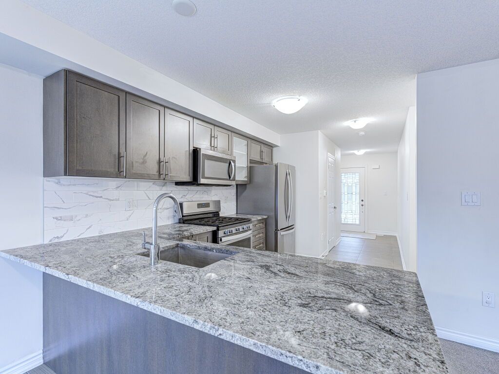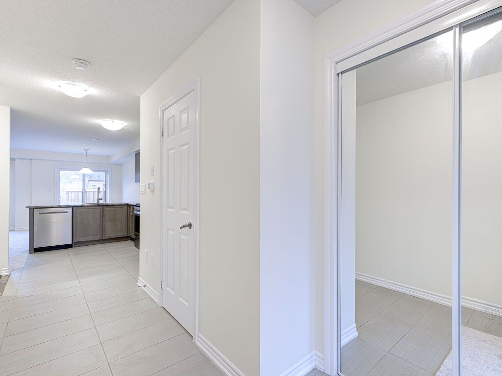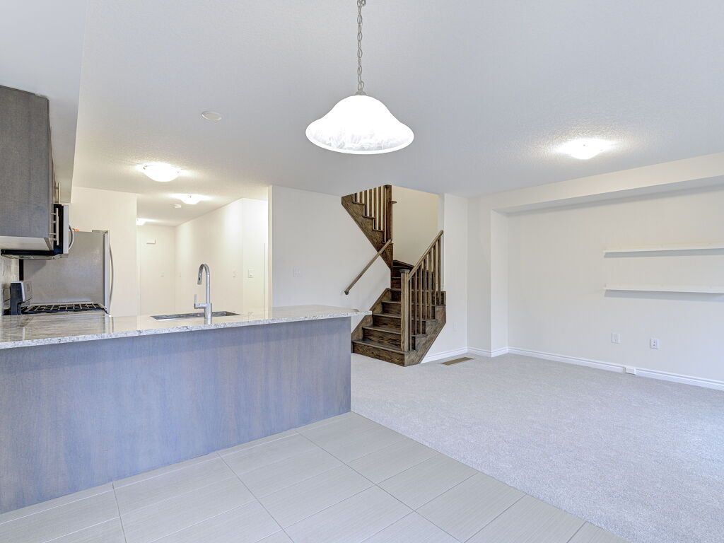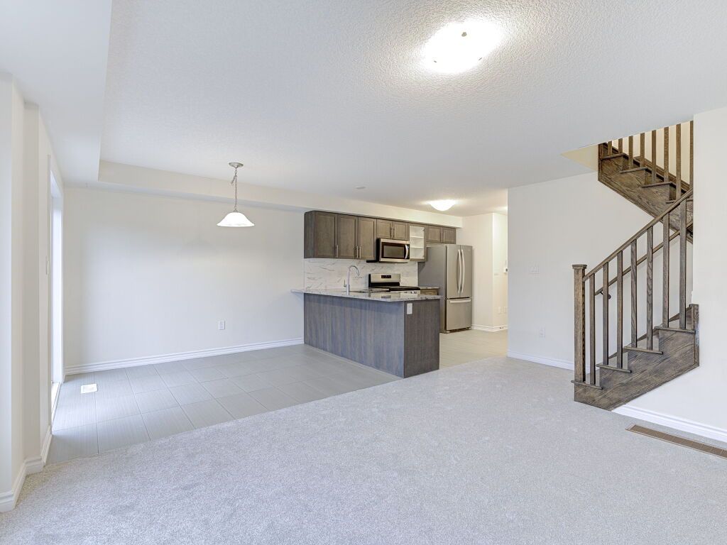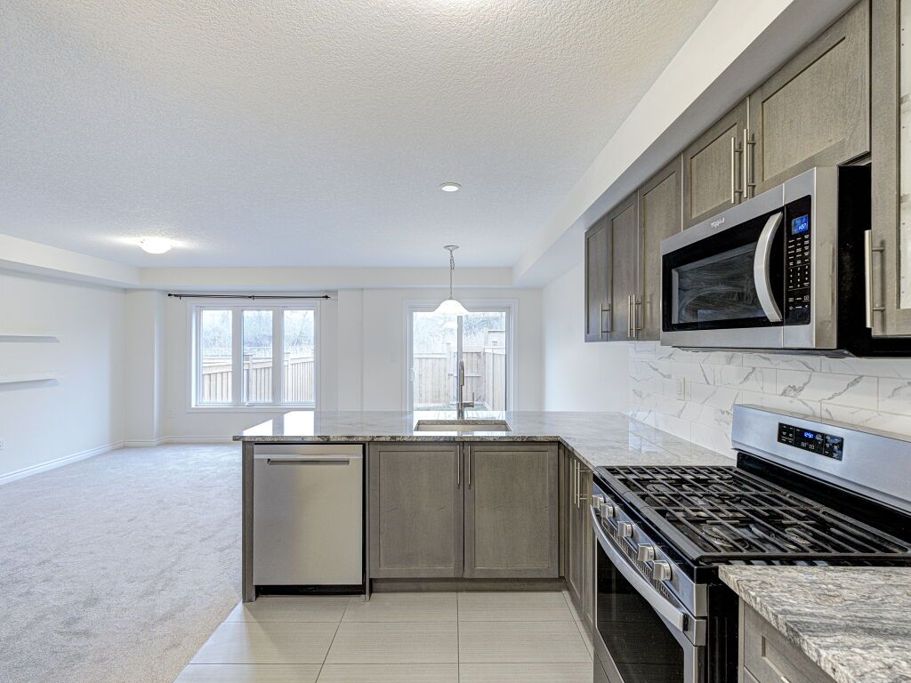 Freehold townhouse living with no monthly fees, no extra costs, and a premium deep lot with a private backyard and no neighbors at the back-an excellent alternative to condo townhouses. This well-maintained Stoney Creek home offers immediate possession, thoughtful updates, and strong value for buyers seeking space, privacy, and ownership without ongoing fees.Ideally located close to schools, parks, dining, big-box and local shopping, walking distance to transit, and with easy highway access, this vacant home is truly move-in ready. Fresh paint, all-new carpet throughout, and a new garage door opener create a clean, welcoming first impression.The main entrance and kitchen feature durable tile flooring, bathrooms are tiled for easy maintenance, and a hardwood staircase adds warmth and character. The living room and upper level are finished with new carpet, offering a comfortable and cohesive layout well suited for first-time buyers, professionals, or downsizers seeking low-maintenance living without condo fees.The chef-inspired kitchen includes granite countertops, stainless steel appliances, a gas stove, above-range microwave, dishwasher, and undermount sink, opening to the dining and living areas for everyday living and entertaining.Upstairs offers three well-sized bedrooms, including a primary bedroom with ensuite, along with the convenience of second-floor laundry.A standout feature is the fully fenced private backyard with no neighbors behind, new fencing completed in 2025, and a rear backdoor entry providing easy access for lawn care, gardening, and outdoor storage.Located in a sought-after Stoney Creek neighbourhood, this freehold townhouse delivers privacy, space, and flexibility-without monthly condo fees or restrictions. Simply unpack and enjoy.