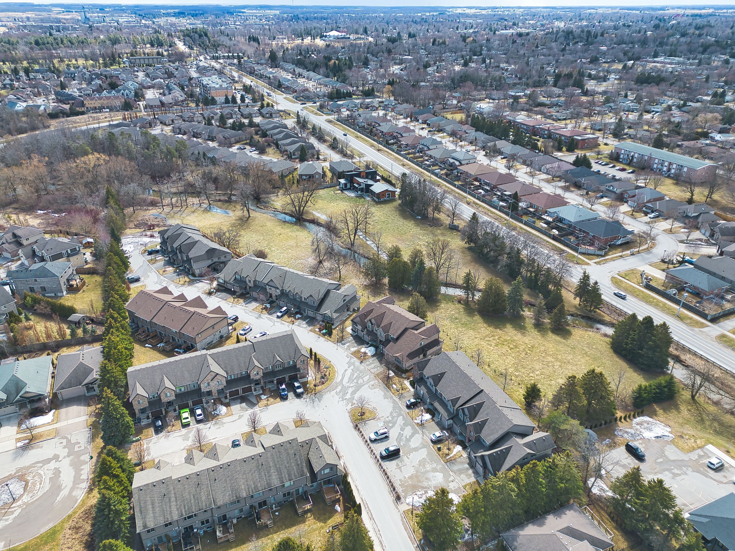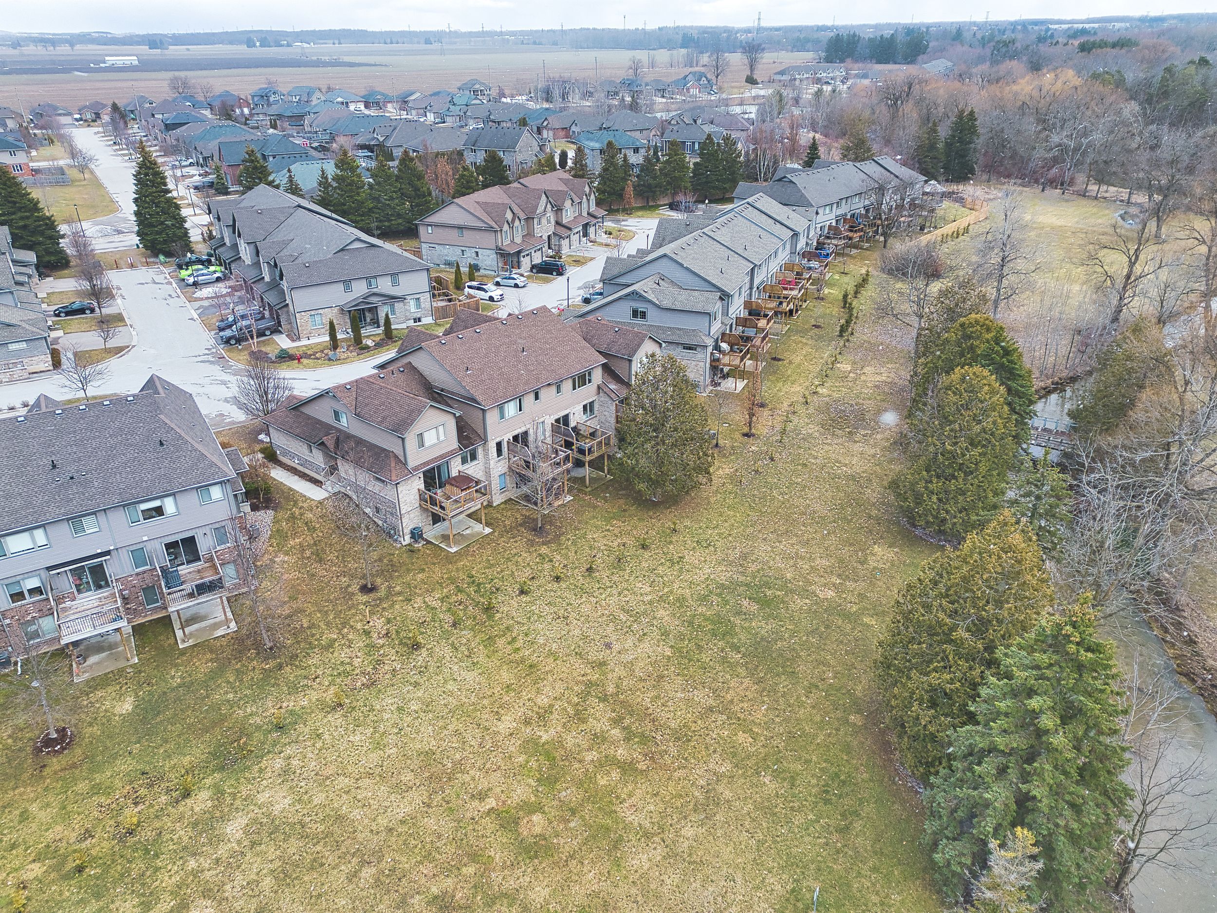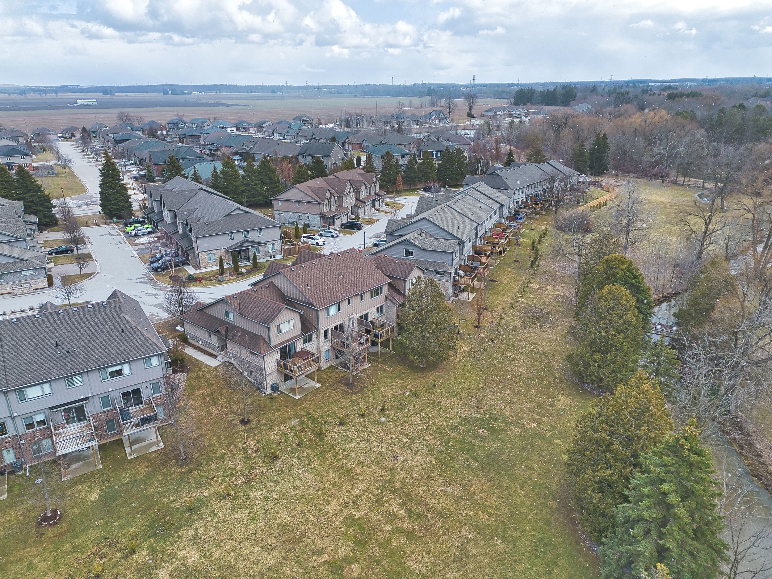 Backing onto a quiet creek and protected greenspace, 8 - 55 Harrison Street is a move-in-ready Stratford townhouse that delivers a rare combination of privacy, space, and location. This isn't a typical townhome - it's a lifestyle upgrade in one of the city's most desirable pockets. The main floor is bright and open, anchored by a granite kitchen with ample cabinetry and serious prep space. It flows naturally into the dining and living areas - ideal for everyday life and effortless entertaining. Step out onto the rear deck overlooking mature trees and flowing water. No rear neighbours. Just calm. A two-piece bath completes the level. Upstairs offers spacious bedrooms with generous closets, a versatile second-floor family room perfect as a home office, media lounge, or reading retreat, and the convenience of upper-floor laundry. The walkout basement is where this home truly separates itself. Thoughtfully finished with a new full bathroom, a stylish bar, and a custom-built-in featuring an electric fireplace, it's a perfect entertaining space. Walk out directly to private greenspace, framed by trees and a creek - year-round beauty and seclusion. Located in a neighbourhood known for its strong community feel, walkability, and proximity to parks, trails, dining, and Stratford's renowned arts and culture scene. Turnkey, flexible, and set against a backdrop most freehold owners would envy. This is the one.