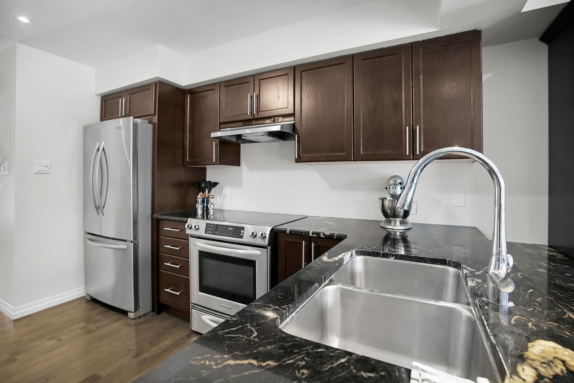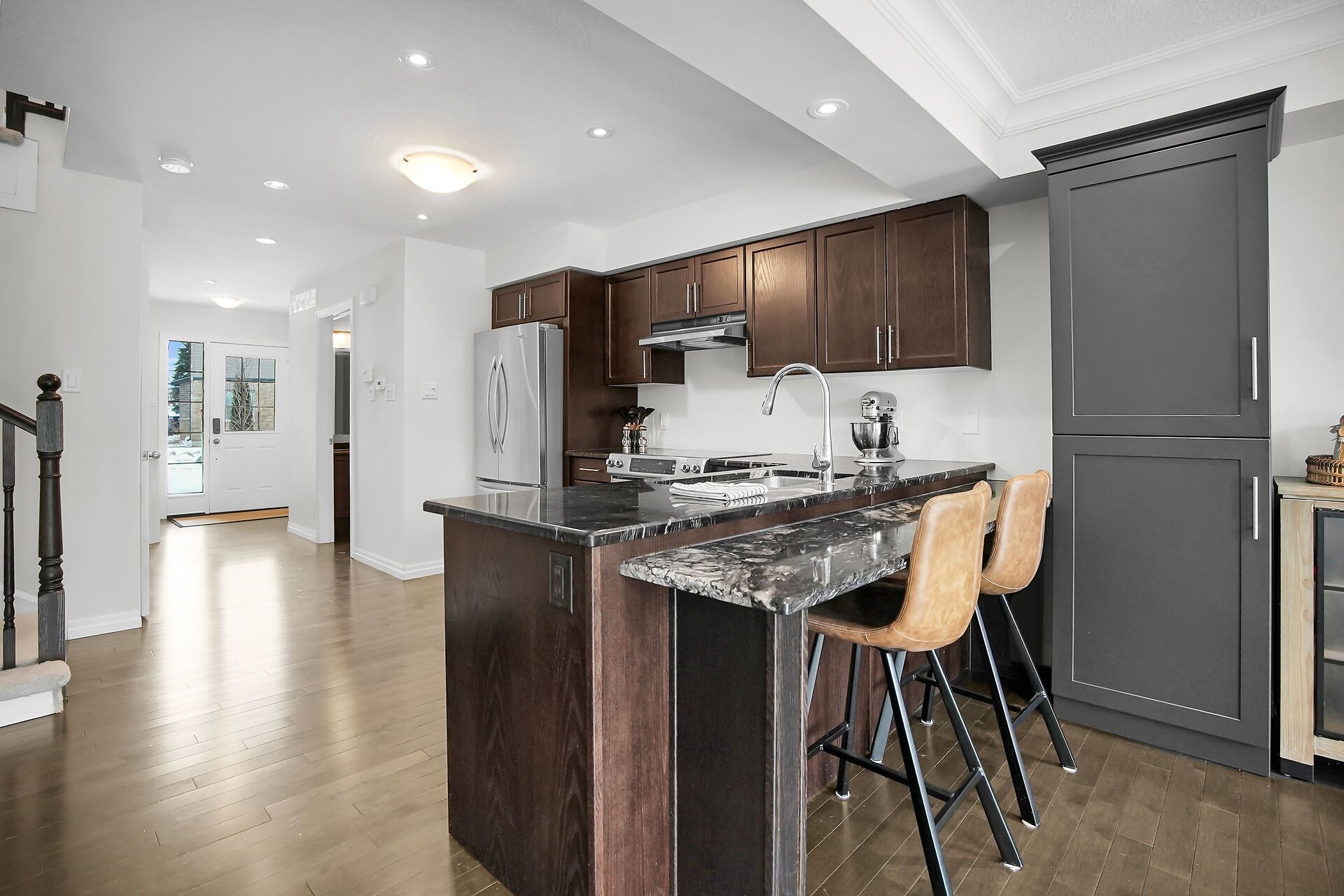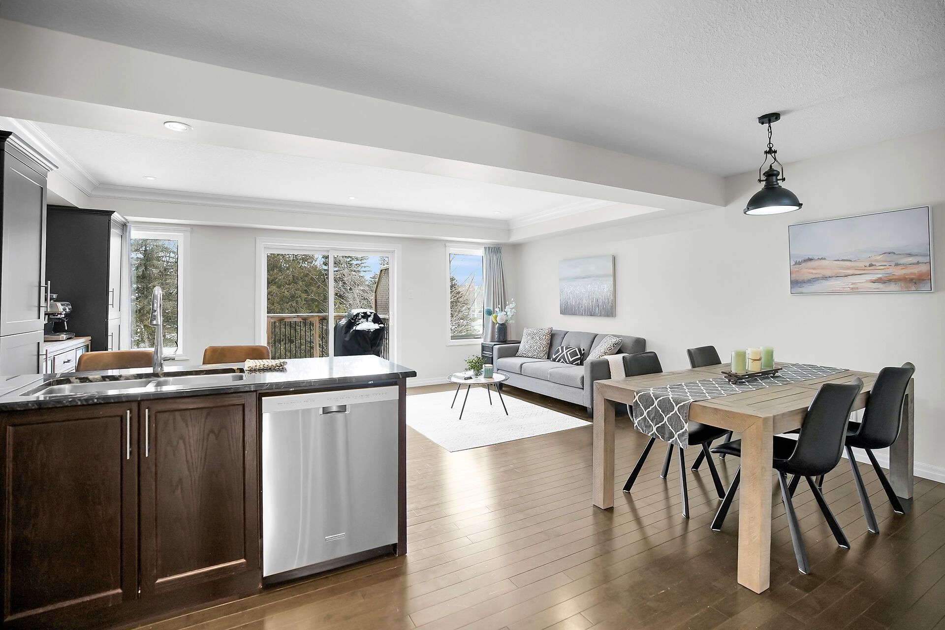 Backing onto a quiet creek and protected greenspace, 8 - 55 Harrison Street is a move-in-ready Stratford townhouse that delivers a rare combination of privacy, space, and location. This isn't a typical townhome - it's a lifestyle upgrade in one of the city's most desirable pockets. The main floor is bright and open, anchored by a granite kitchen with ample cabinetry and serious prep space. It flows naturally into the dining and living areas - ideal for everyday life and effortless entertaining. Step out onto the rear deck overlooking mature trees and flowing water. No rear neighbours. Just calm. A two-piece bath completes the level. Upstairs offers spacious bedrooms with generous closets, a versatile second-floor family room perfect as a home office, media lounge, or reading retreat, and the convenience of upper-floor laundry. The walkout basement is where this home truly separates itself. Thoughtfully finished with a new full bathroom, a stylish bar, and a custom-built-in featuring an electric fireplace, it's a perfect entertaining space. Walk out directly to private greenspace, framed by trees and a creek - year-round beauty and seclusion. Located in a neighbourhood known for its strong community feel, walkability, and proximity to parks, trails, dining, and Stratford's renowned arts and culture scene. Turnkey, flexible, and set against a backdrop most freehold owners would envy. This is the one.