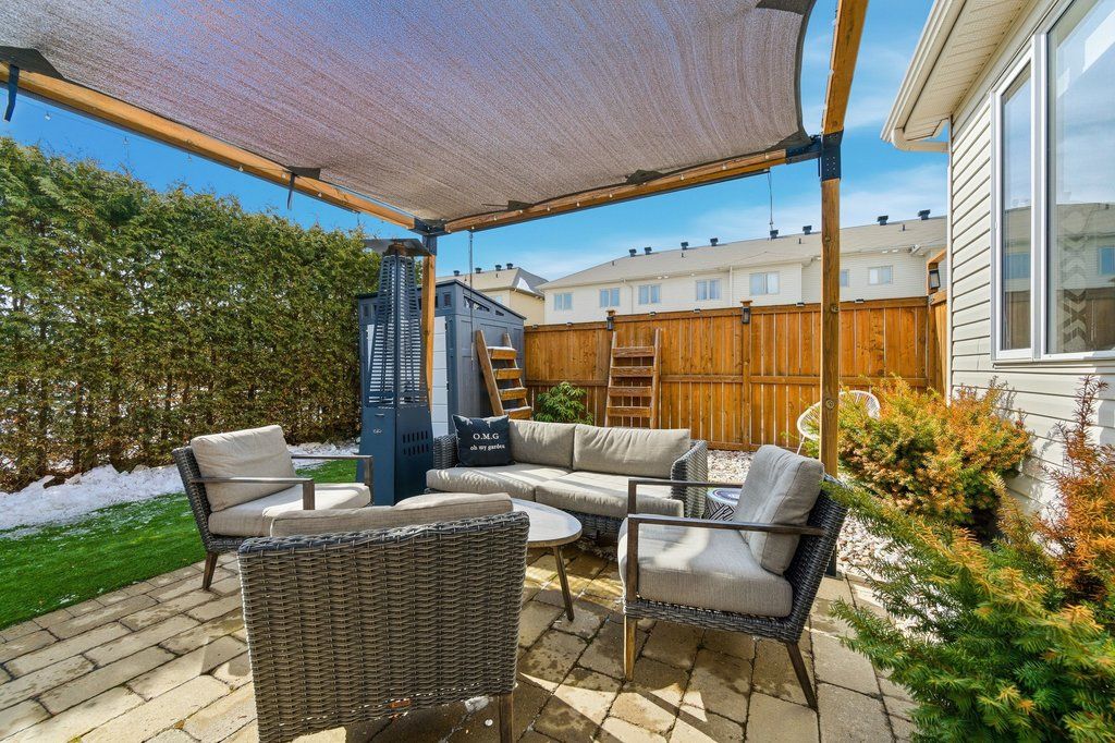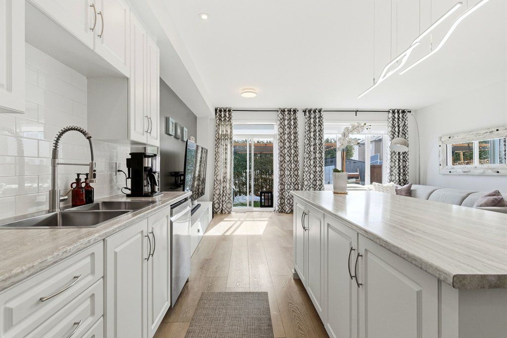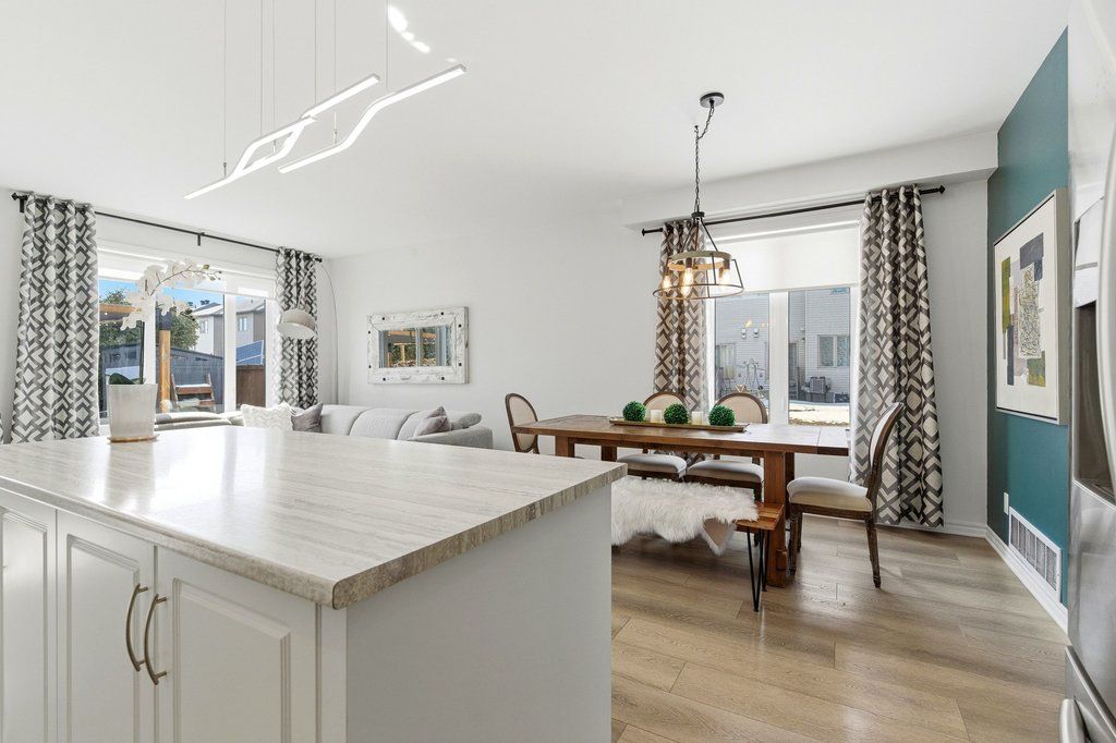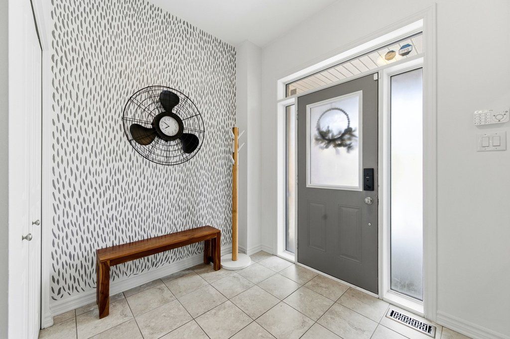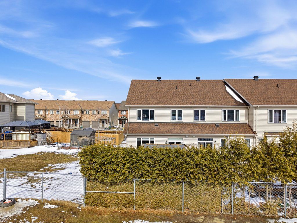 Welcome to this beautifully maintained end-unit townhouse, built in 2015 and offering one of the largest models in the community with approximately 1,984 sq ft above grade. The main floor features a thoughtfully designed layout with a convenient mudroom, perfect for busy households. The spacious kitchen is equipped with stainless steel appliances, ample cabinetry, and generous counter space, seamlessly connecting to the dining area-ideal for both everyday living and entertaining. The expansive living room is filled with natural light and offers direct patio door access to a landscaped backyard, creating the perfect indoor-outdoor flow. A 2-piece powder room completes this level. Hardwood stairs lead to the second floor, where you'll find a large primary retreat featuring a walk-in closet and a luxurious 4-piece ensuite with a soaker tub and separate shower. Two additional well-sized bedrooms, a full bathroom, and the convenience of second-floor laundry make this level both practical and family-friendly.The fully finished lower level adds valuable living space with a large recreation room, cozy gas fireplace, additional powder room, and plenty of storage-perfect for a home theatre, playroom, or home office. Situated in the desirable Barrhaven-Longfields community, this home is just minutes from schools, parks, shopping, restaurants, transit and the Minto Recreation Complex, offering exceptional lifestyle convenience. A rare opportunity to own a spacious end-unit in a sought-after neighbourhood-this home truly checks all the boxes.