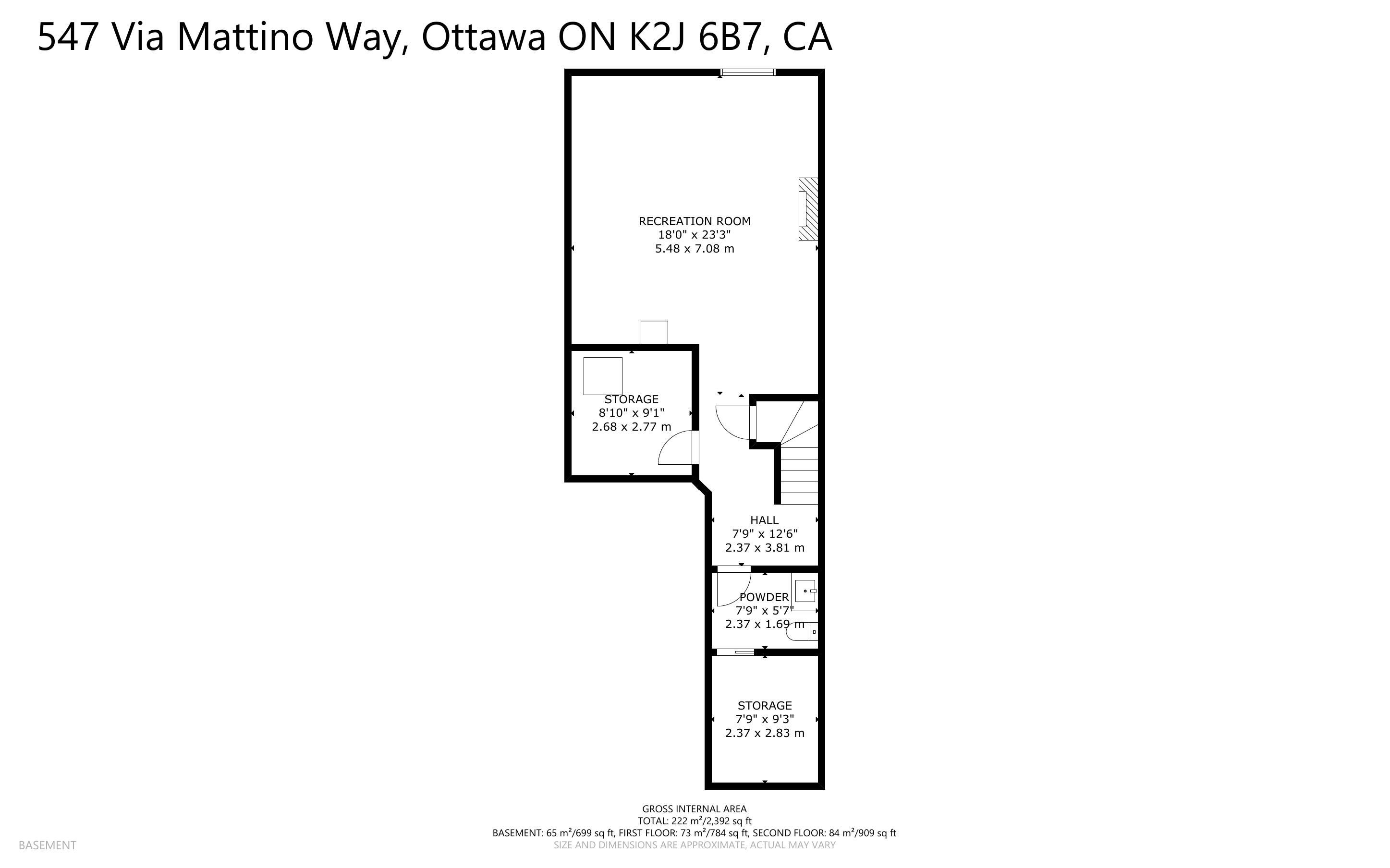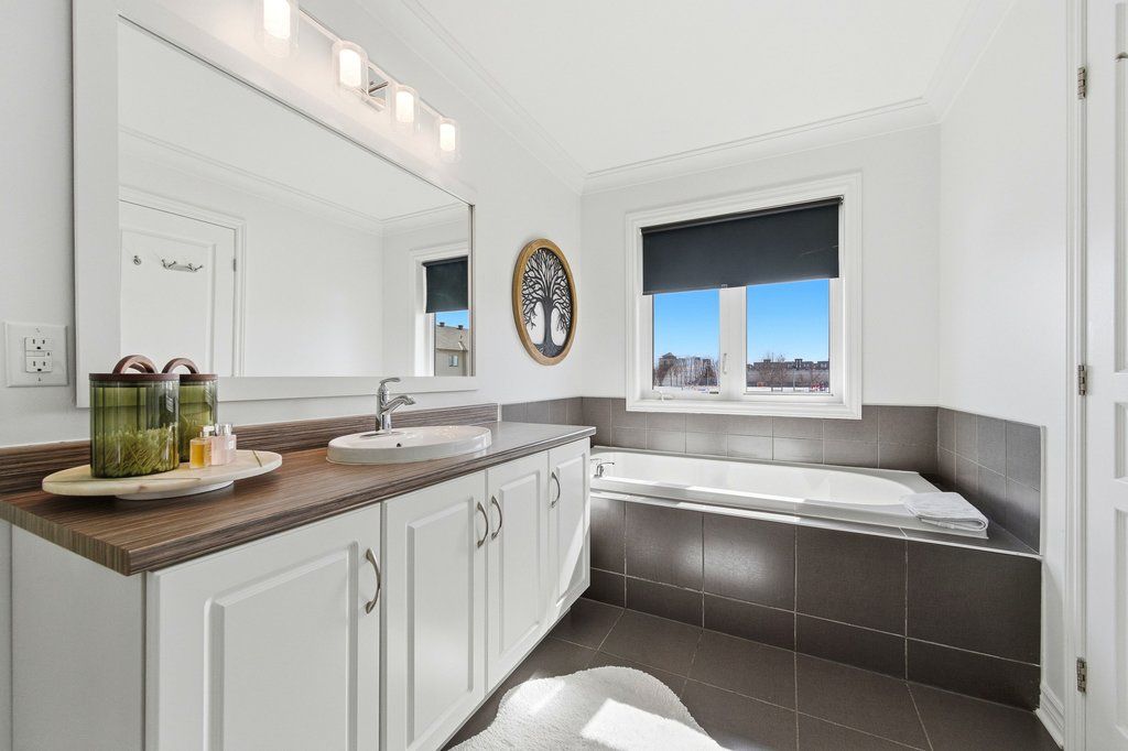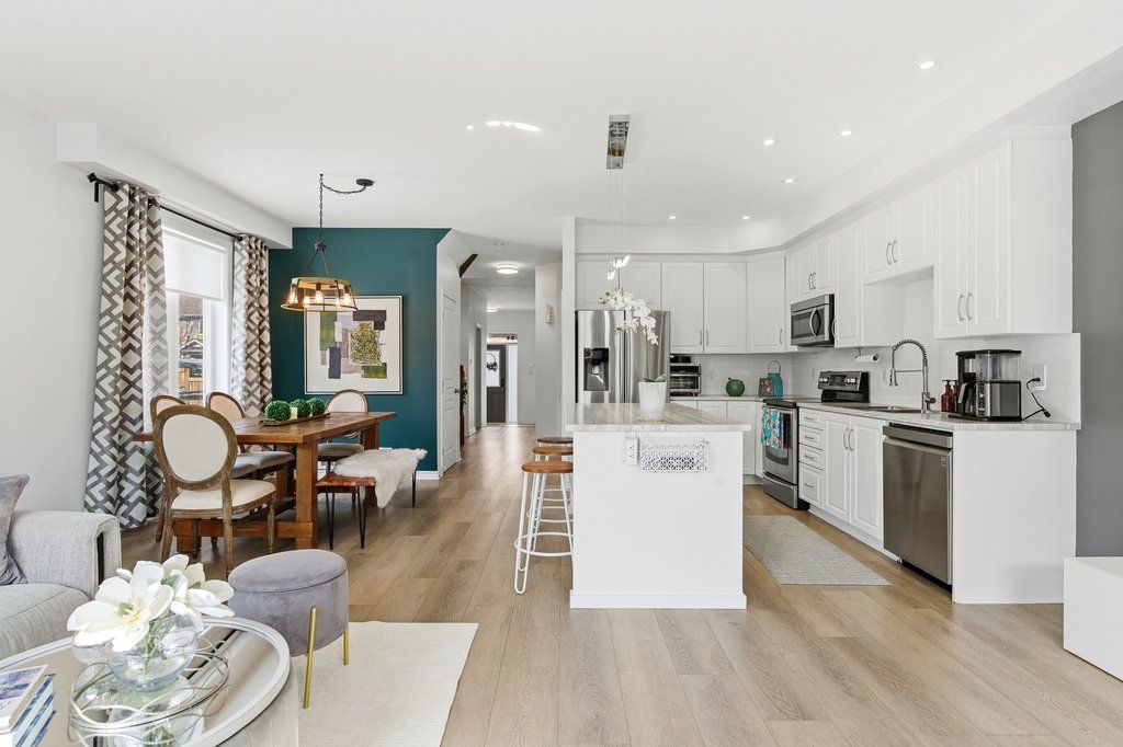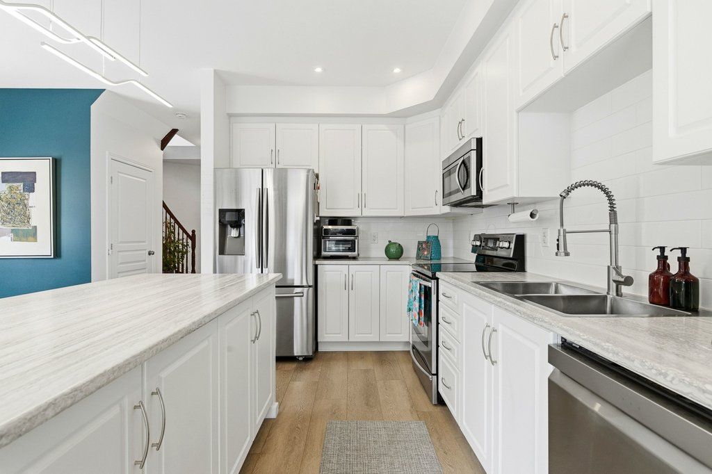 Welcome to this beautifully maintained end-unit townhouse, built in 2015 and offering one of the largest models in the community with approximately 1,984 sq ft above grade. The main floor features a thoughtfully designed layout with a convenient mudroom, perfect for busy households. The spacious kitchen is equipped with stainless steel appliances, ample cabinetry, and generous counter space, seamlessly connecting to the dining area-ideal for both everyday living and entertaining. The expansive living room is filled with natural light and offers direct patio door access to a landscaped backyard, creating the perfect indoor-outdoor flow. A 2-piece powder room completes this level. Hardwood stairs lead to the second floor, where you'll find a large primary retreat featuring a walk-in closet and a luxurious 4-piece ensuite with a soaker tub and separate shower. Two additional well-sized bedrooms, a full bathroom, and the convenience of second-floor laundry make this level both practical and family-friendly.The fully finished lower level adds valuable living space with a large recreation room, cozy gas fireplace, additional powder room, and plenty of storage-perfect for a home theatre, playroom, or home office. Situated in the desirable Barrhaven-Longfields community, this home is just minutes from schools, parks, shopping, restaurants, transit and the Minto Recreation Complex, offering exceptional lifestyle convenience. A rare opportunity to own a spacious end-unit in a sought-after neighbourhood-this home truly checks all the boxes.