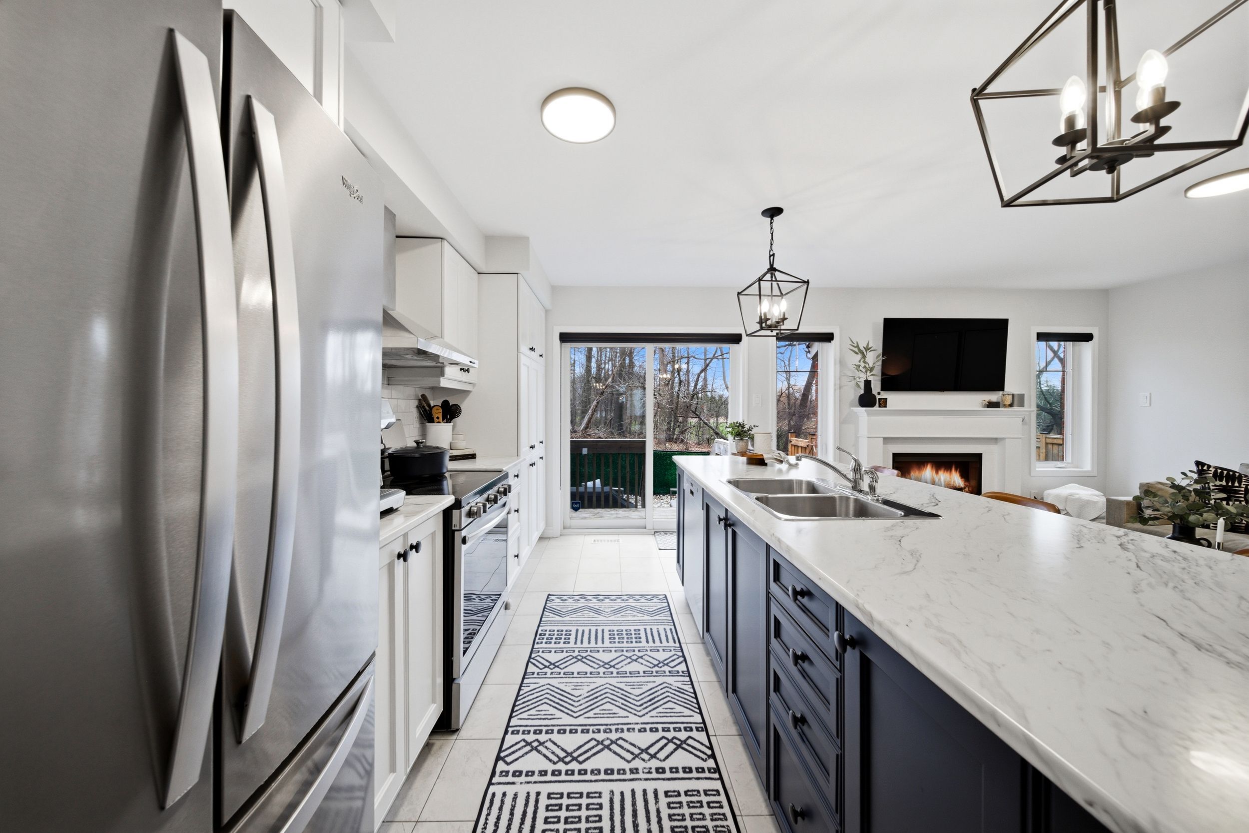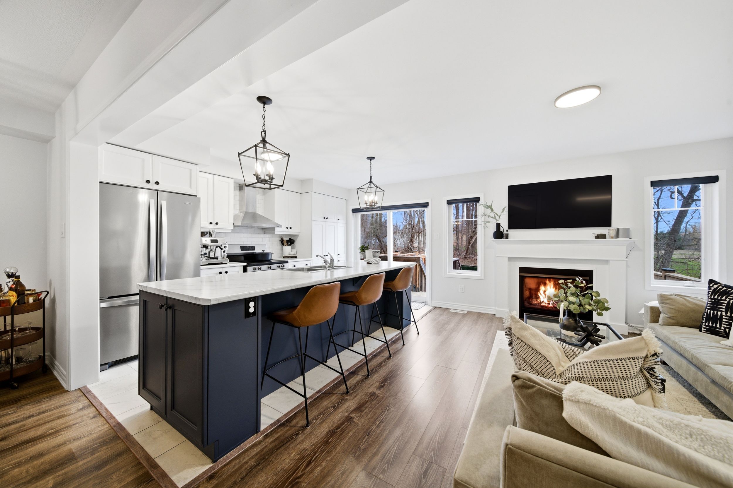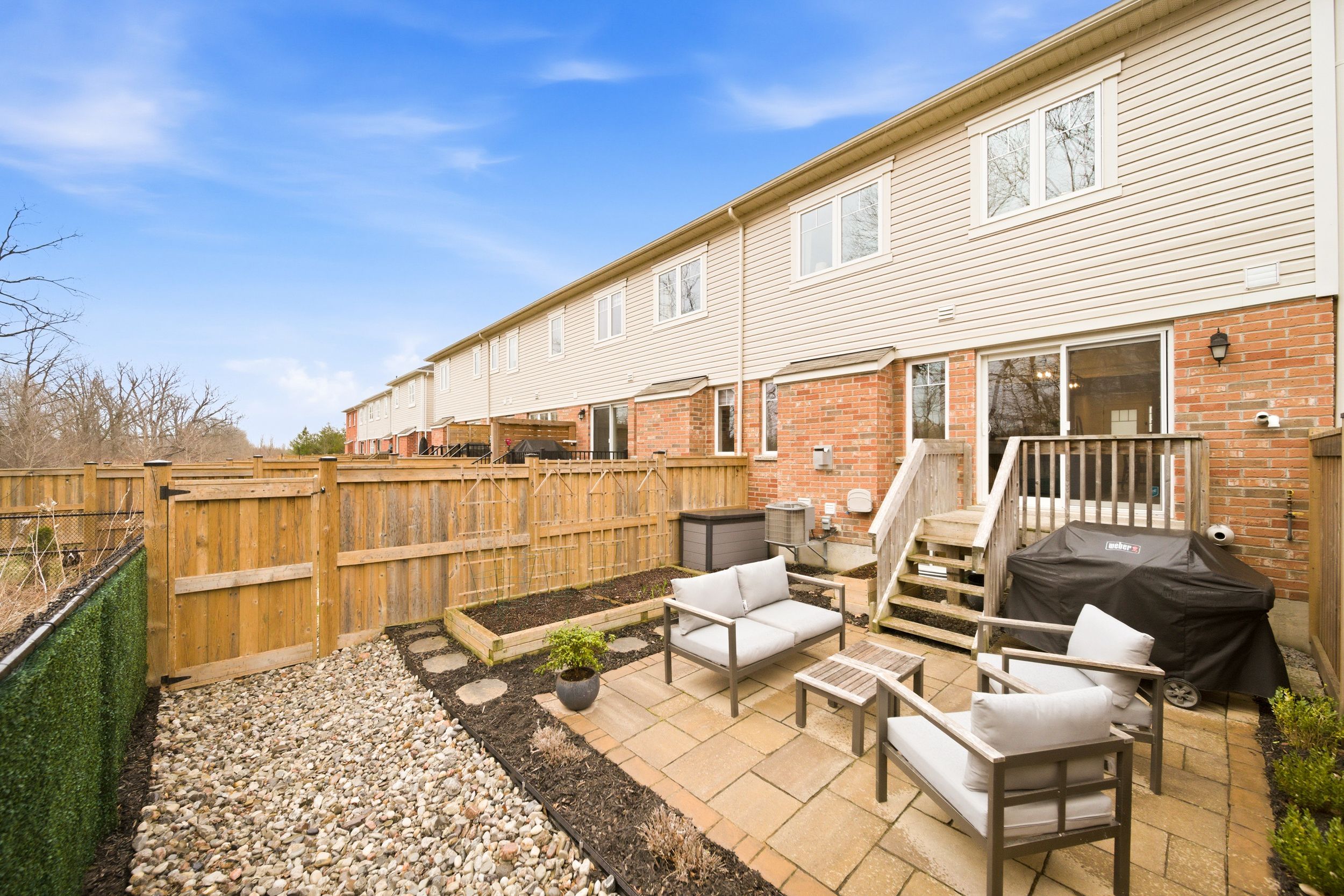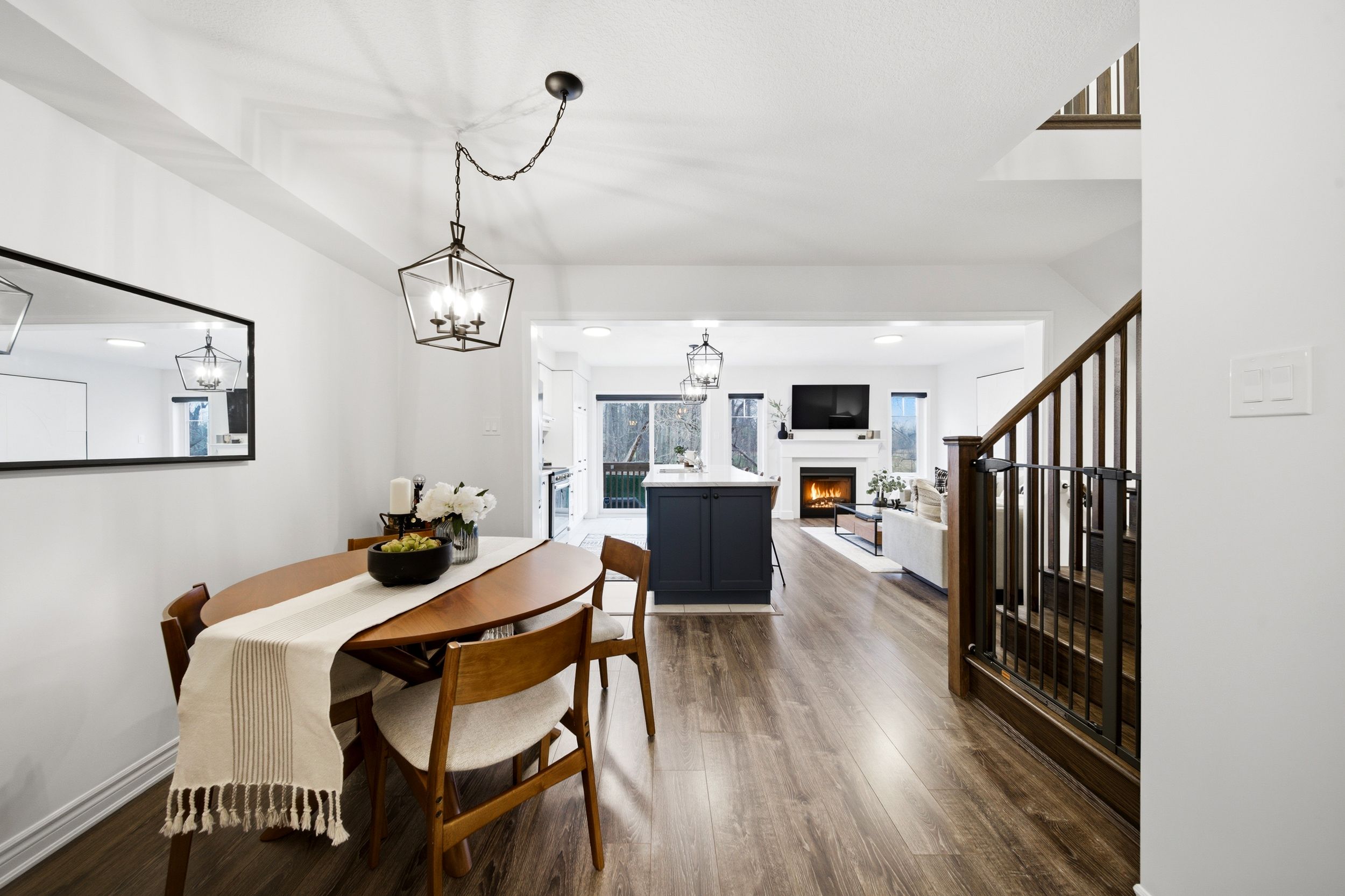 Welcome to 31-230 Avonsyde Boulevard, a beautifully appointed 3-bedroom FREEHOLD townhome nestled on a quiet cul-de-sac in desirable Waterdown. Backing onto a peaceful ravine with no rear neighbours, this home offers a rare combination of privacy, comfort, and convenience. A charming front porch sets the tone-perfect for enjoying your morning coffee-while the welcoming foyer leads into a bright, open-concept main floor filled with natural light. Featuring hardwood flooring and upgraded light fixtures, the space is both stylish and functional. The stunning kitchen boasts stainless steel appliances, white cabinetry, a large eat-in island, and a sliding door walkout to a private, fenced backyard with tranquil ravine views-ideal for entertaining or relaxing. The main level also offers a spacious family room with a cozy fireplace, a separate dining area, and a convenient 2-piece powder room. Upstairs, you'll find three generously sized bedrooms, including a serene primary retreat complete with a walk-in closet and ensuite featuring double sinks, a soaker tub, and a separate shower. Two additional bedrooms, with large windows and custom closet organizer, share a well-appointed full bathroom. The finished lower level adds even more living space with a rec room featuring a second fireplace, laminate flooring, pot lights, and an additional bathroom-perfect for family living or entertaining. Additional highlights include a single-car garage with inside entry, dishwasher and stove (2025), and a roof approximately 9 years old. Ideally located directly across from Cranberry Hill Park and just minutes to the charming Waterdown core with its boutique shops and restaurants. Commuters will appreciate easy access to the GO Station, major highways, shopping, the YMCA, and more. A truly exceptional home in a sought-after location-don't miss it!