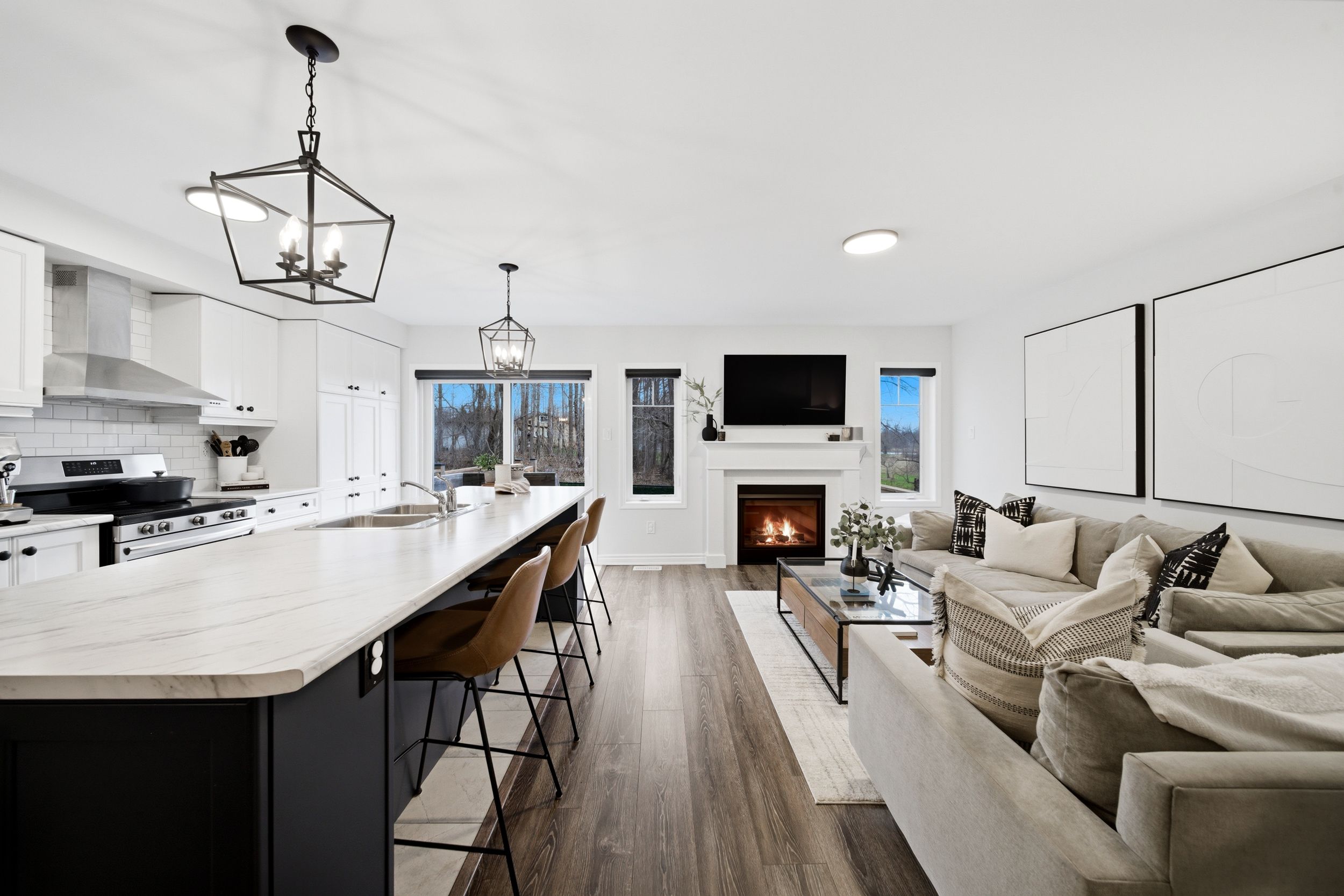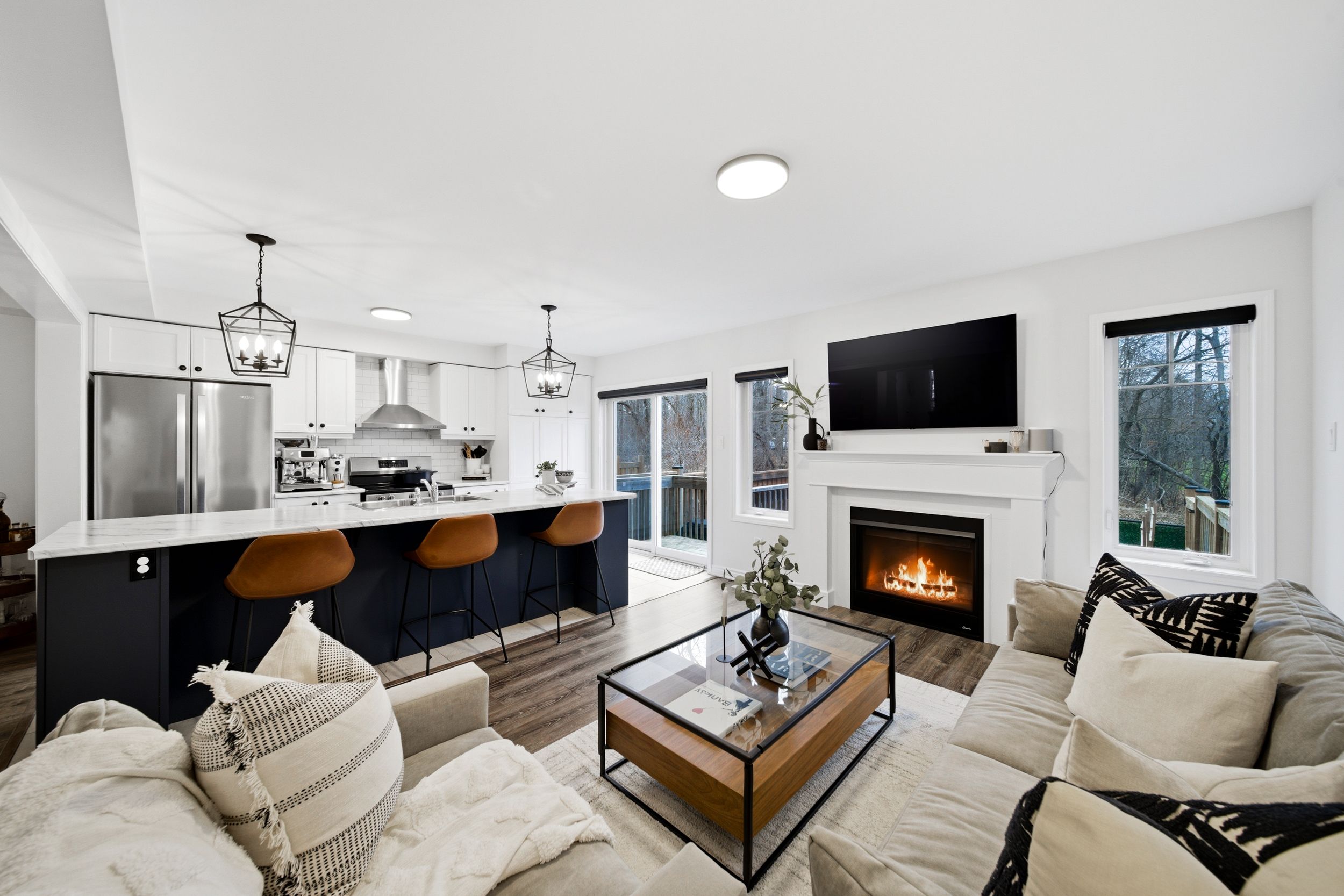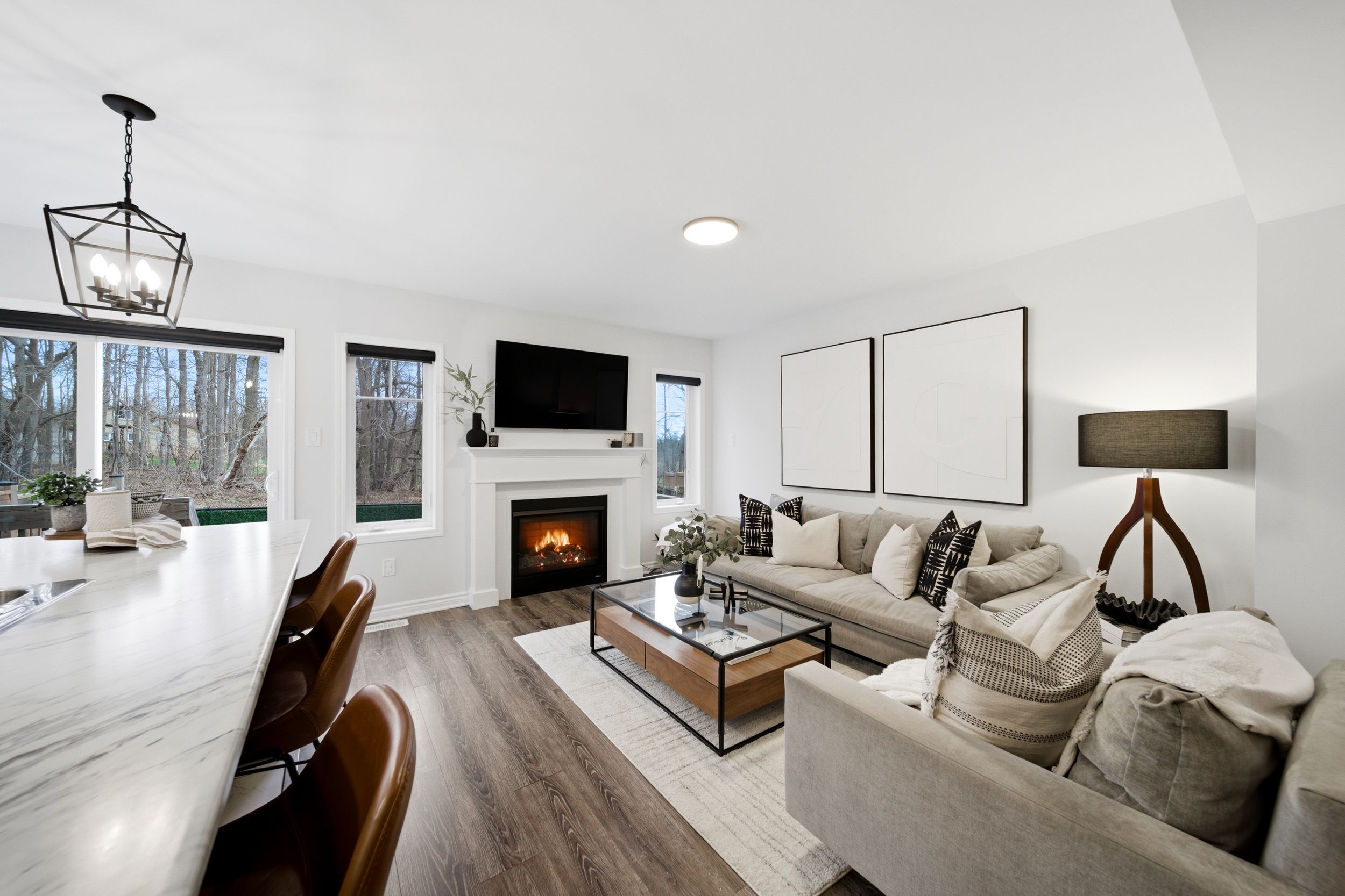 Welcome to 31-230 Avonsyde Boulevard, a beautifully appointed 3-bedroom FREEHOLD townhome nestled on a quiet cul-de-sac in desirable Waterdown. Backing onto a peaceful ravine with no rear neighbours, this home offers a rare combination of privacy, comfort, and convenience. A charming front porch sets the tone-perfect for enjoying your morning coffee-while the welcoming foyer leads into a bright, open-concept main floor filled with natural light. Featuring hardwood flooring and upgraded light fixtures, the space is both stylish and functional. The stunning kitchen boasts stainless steel appliances, white cabinetry, a large eat-in island, and a sliding door walkout to a private, fenced backyard with tranquil ravine views-ideal for entertaining or relaxing. The main level also offers a spacious family room with a cozy fireplace, a separate dining area, and a convenient 2-piece powder room. Upstairs, you'll find three generously sized bedrooms, including a serene primary retreat complete with a walk-in closet and ensuite featuring double sinks, a soaker tub, and a separate shower. Two additional bedrooms, with large windows and custom closet organizer, share a well-appointed full bathroom. The finished lower level adds even more living space with a rec room featuring a second fireplace, laminate flooring, pot lights, and an additional bathroom-perfect for family living or entertaining. Additional highlights include a single-car garage with inside entry, dishwasher and stove (2025), and a roof approximately 9 years old. Ideally located directly across from Cranberry Hill Park and just minutes to the charming Waterdown core with its boutique shops and restaurants. Commuters will appreciate easy access to the GO Station, major highways, shopping, the YMCA, and more. A truly exceptional home in a sought-after location-don't miss it!