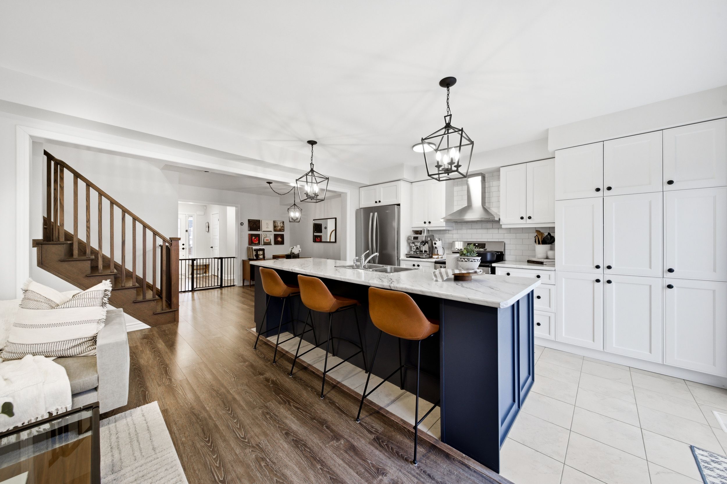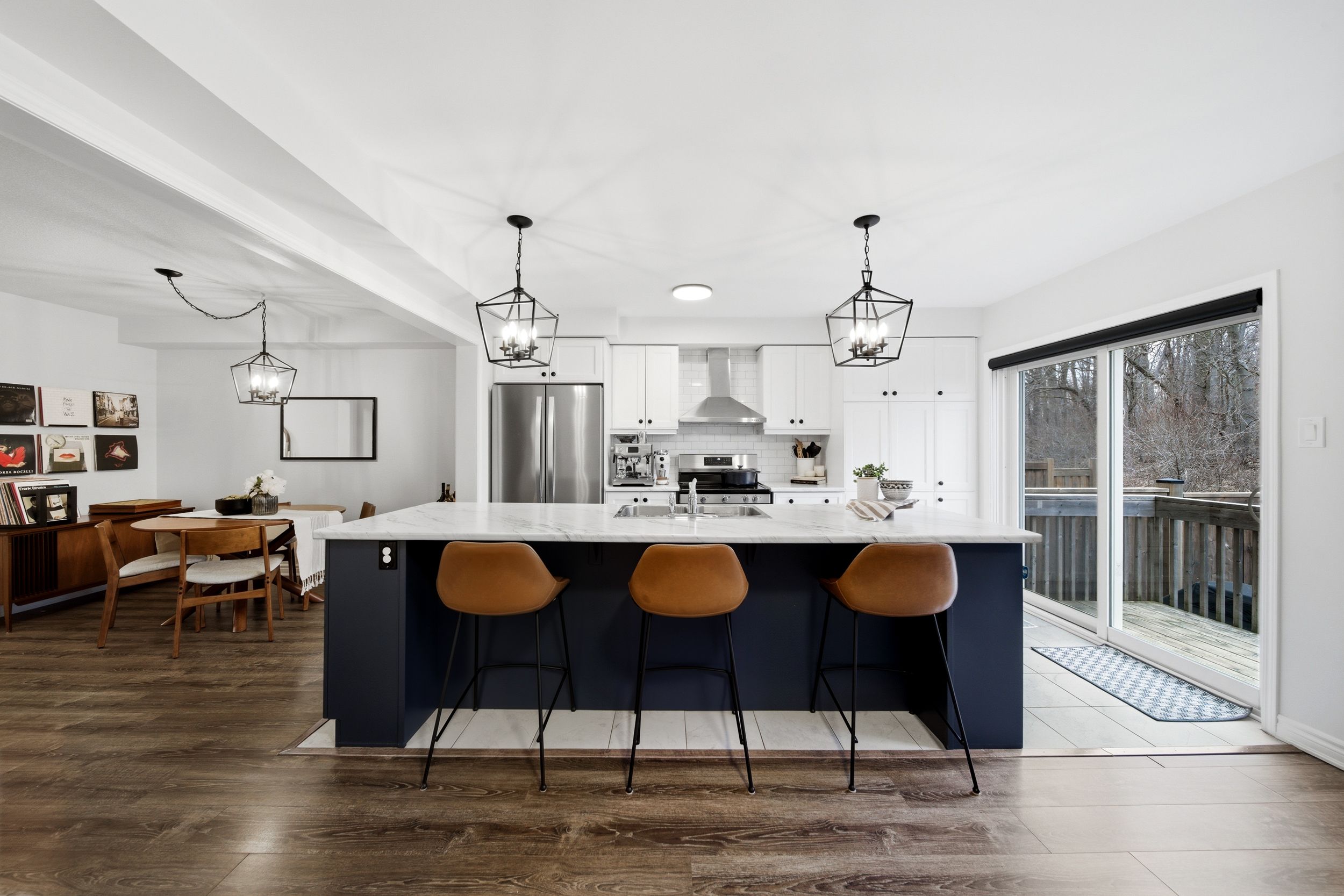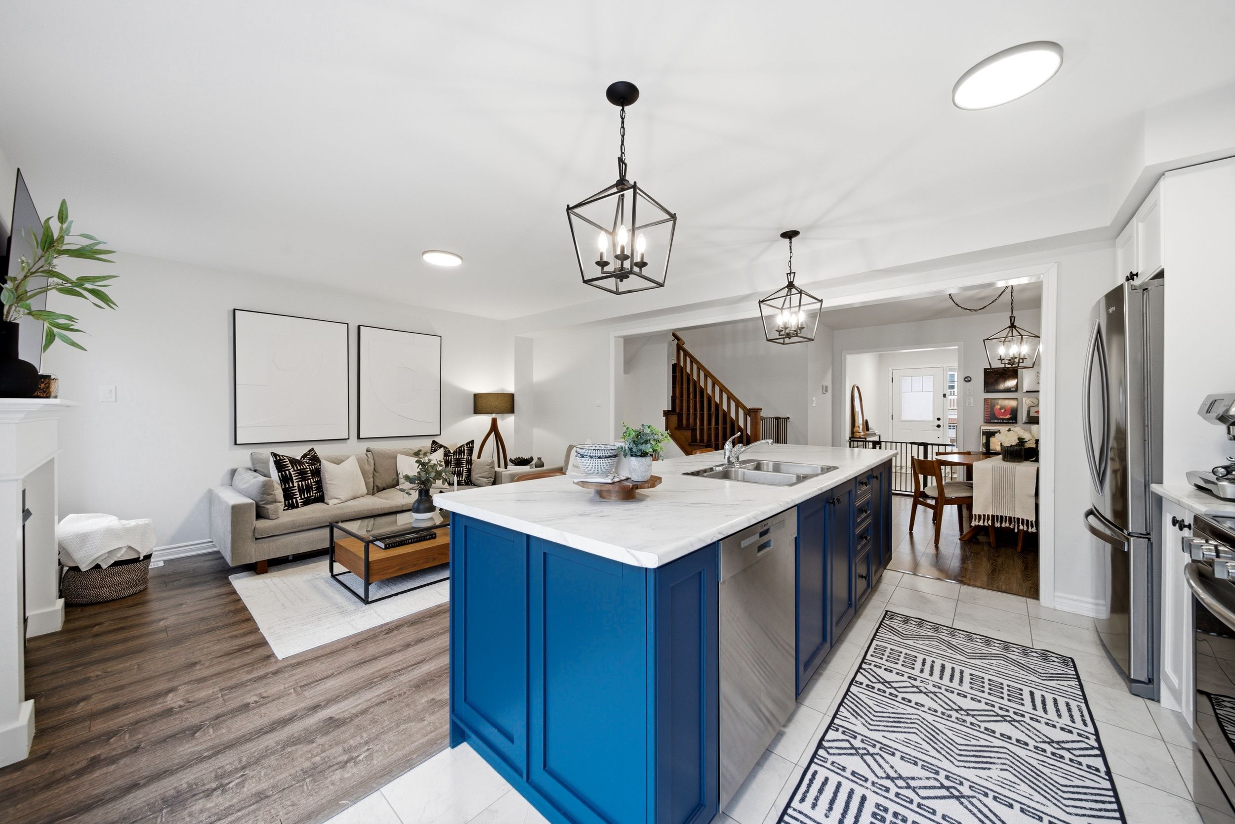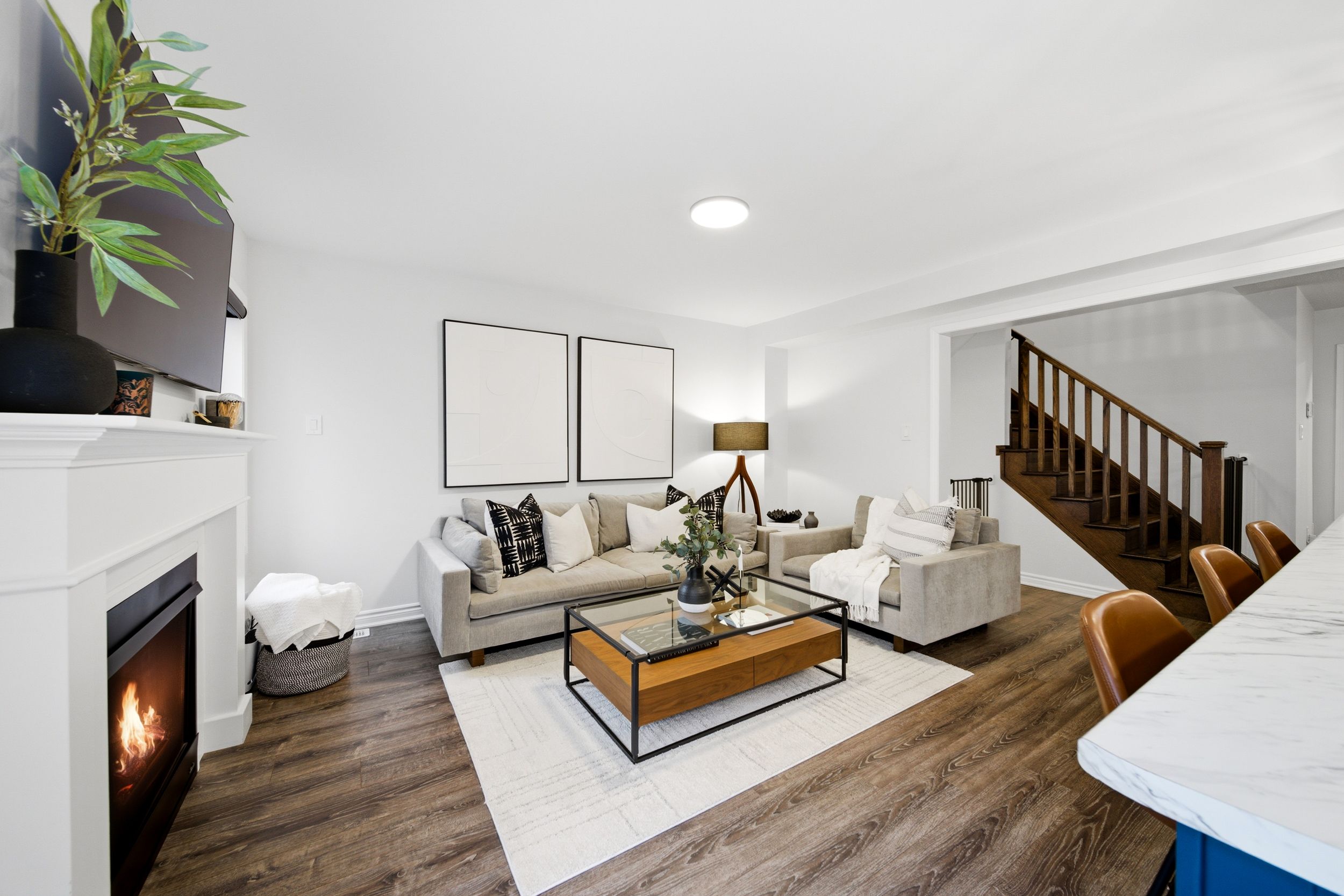 Welcome to 31-230 Avonsyde Boulevard, a beautifully appointed 3-bedroom FREEHOLD townhome nestled on a quiet cul-de-sac in desirable Waterdown. Backing onto a peaceful ravine with no rear neighbours, this home offers a rare combination of privacy, comfort, and convenience. A charming front porch sets the tone-perfect for enjoying your morning coffee-while the welcoming foyer leads into a bright, open-concept main floor filled with natural light. Featuring hardwood flooring and upgraded light fixtures, the space is both stylish and functional. The stunning kitchen boasts stainless steel appliances, white cabinetry, a large eat-in island, and a sliding door walkout to a private, fenced backyard with tranquil ravine views-ideal for entertaining or relaxing. The main level also offers a spacious family room with a cozy fireplace, a separate dining area, and a convenient 2-piece powder room. Upstairs, you'll find three generously sized bedrooms, including a serene primary retreat complete with a walk-in closet and ensuite featuring double sinks, a soaker tub, and a separate shower. Two additional bedrooms, with large windows and custom closet organizer, share a well-appointed full bathroom. The finished lower level adds even more living space with a rec room featuring a second fireplace, laminate flooring, pot lights, and an additional bathroom-perfect for family living or entertaining. Additional highlights include a single-car garage with inside entry, dishwasher and stove (2025), and a roof approximately 9 years old. Ideally located directly across from Cranberry Hill Park and just minutes to the charming Waterdown core with its boutique shops and restaurants. Commuters will appreciate easy access to the GO Station, major highways, shopping, the YMCA, and more. A truly exceptional home in a sought-after location-don't miss it!