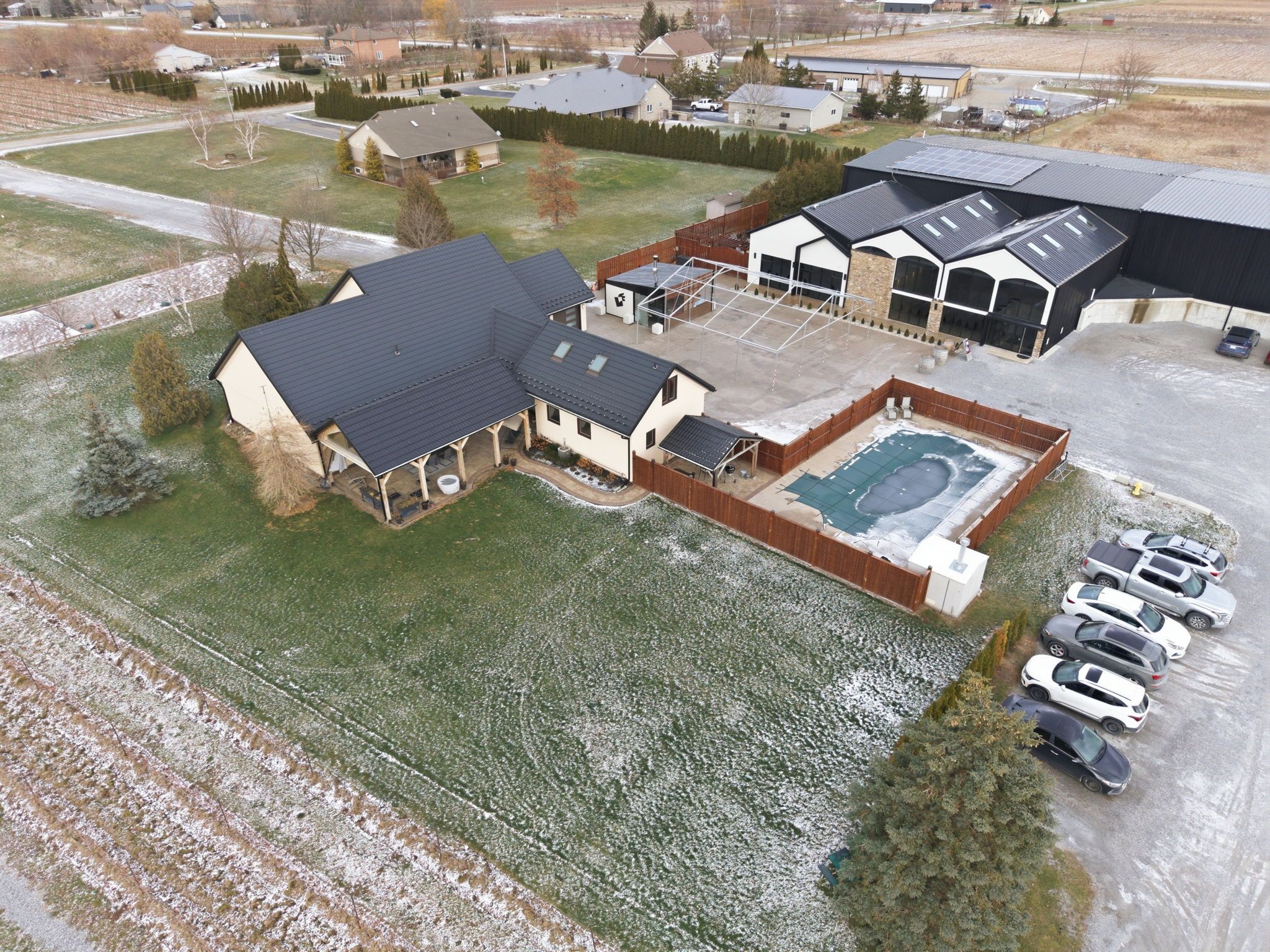 Presenting a rare opportunity to acquire one of Canada's most respected and internationally recognized wineries in the heart of Niagara-on-the-Lake at 823 Line 6 Road. Founded in 2012, Big Head Wines is a purpose-built, multi-award-winning operation producing approximately 24,000 cases annually, sold exclusively direct-to-consumer, demonstrating exceptional brand strength, retail power, and a loyal, growing customer base. Global accolades include Ontario Red Wine of the Year (2024), Best Chenin Blanc in the World (2024), Platinum Medal at the Decanter World Wine Awards, and multiple Lieutenant Governor's Awards for Excellence. This turn-key offering includes significant bottled and bulk wine inventory. The state-of-the-art facility offers approximately 12,475 sq ft of interior space plus 12,881 sq ft exterior, designed for efficient production, hospitality, administration, and retail sales, including a 734 sq ft tasting bar, 1,259 sq ft hospitality/dining area, additional commercial space, multiple production and storage rooms, two offices, staff areas, and five washrooms. Approved expansion plans add two levels totaling 16,747 sq ft, including an upper-level restaurant/wine bar with kitchen and washrooms, plus a lower-level barrel cellar, tasting room, loading area, and elevator access, bringing total building area to 32,586 sq ft. Ideally positioned in Canada's premier cool-climate wine region with strong tourism traffic, 1.5 hours to Toronto, 15 minutes to Niagara Falls, and close proximity to Buffalo and major Southern Ontario markets. The offering also includes a substantial on-site residence with approximately 2,636 sq ft on the main floor plus 1,915 sq ft finished lower level, featuring 4 bedrooms, 4 bathrooms, principal rooms, den, loft, attached garage, wine cellar, recreation areas, and a private in-ground pool-an exceptional live-work estate combining legacy, lifestyle, and proven performance.