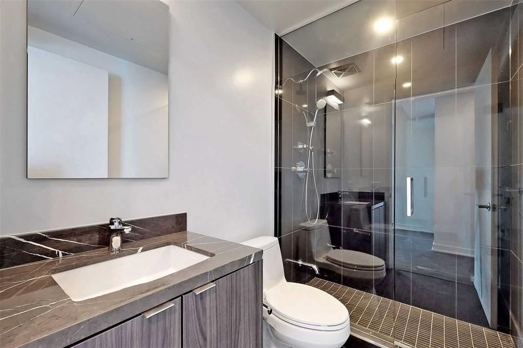 Second bedroom and exclusive bathroom. Sharing kitchen and living area with another male. Furniture in living room are shared. Mattress, desk and night stand can stay or be removed. All utilities are included in the rent. 6 Year old Luxury King Blue Condo, Located In The Heart Of The Entertainment District. Steps To Shops, Theatres, Rogers Center, Cn Tower, Scotiabank Arena, Entertainment And Great Restaurants! Facing South East With Lake Views.